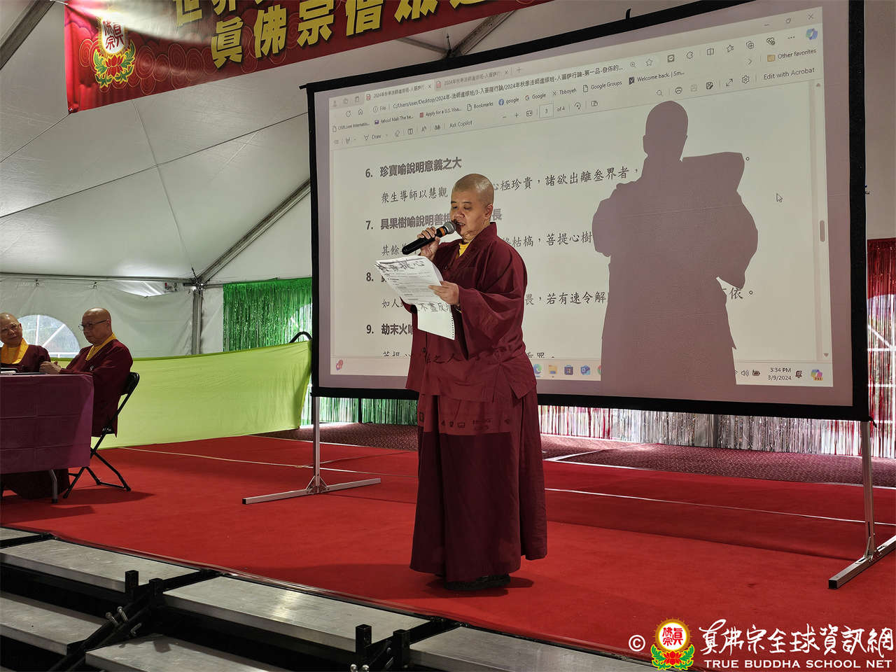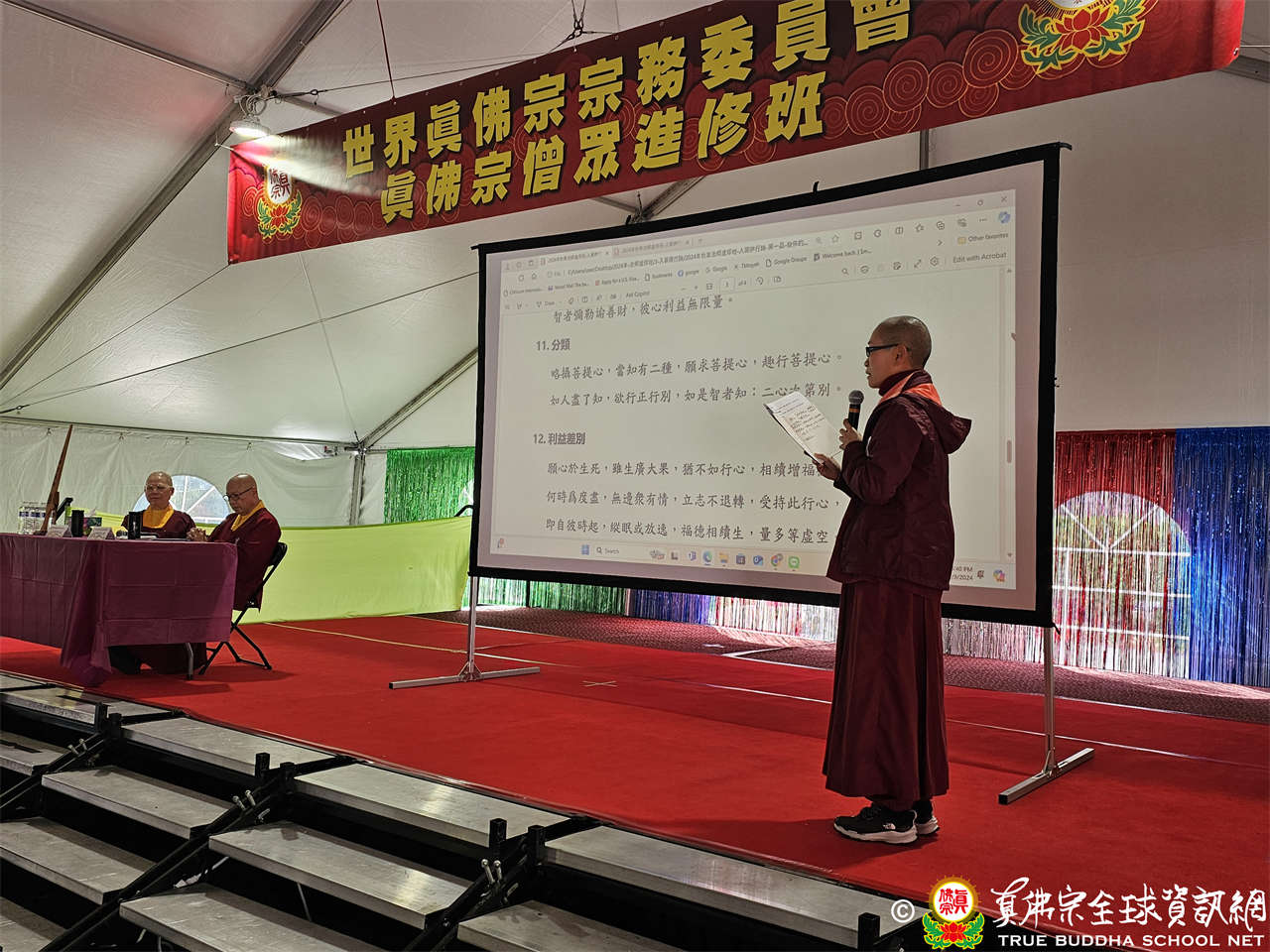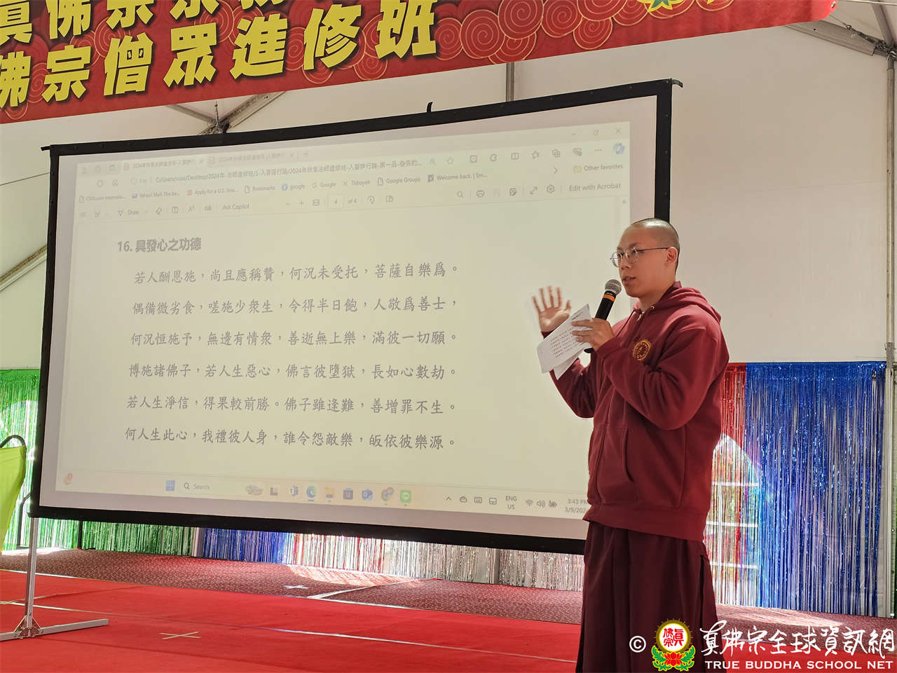 2024秋季法師進修班,隨著課表進行,來到了「入菩薩行論」這門課程,邀請傳法部二位長老蓮滿上師、蓮傳上師授課。「入菩薩行論」首次出現在法師進修班課程,由二位長老概略講述經文內容,之後再透過分組討論後,各組代表上台發表。