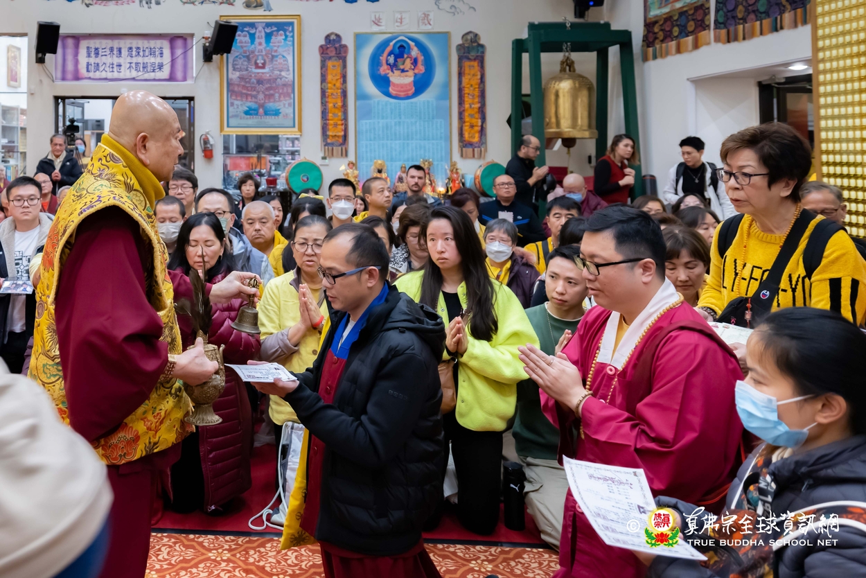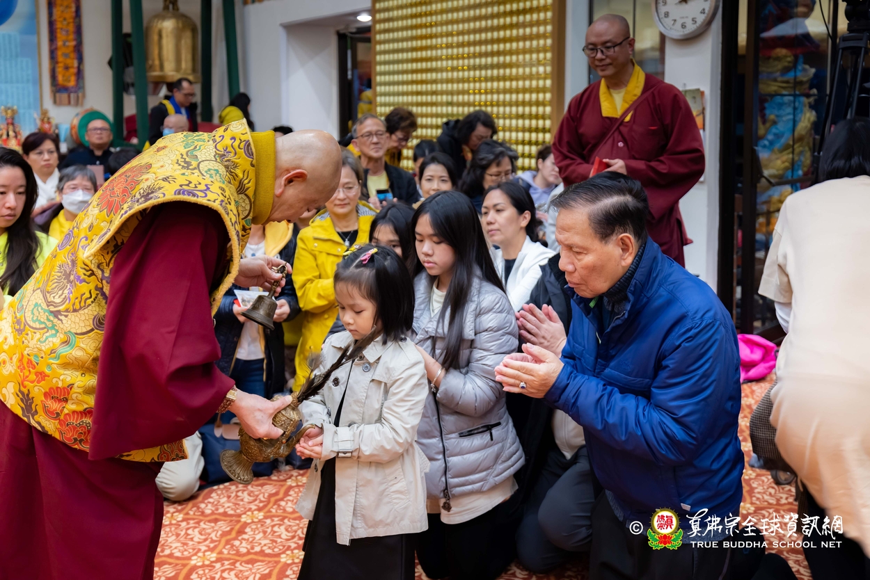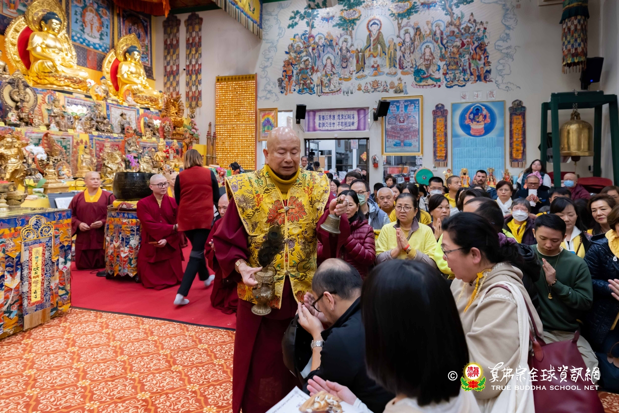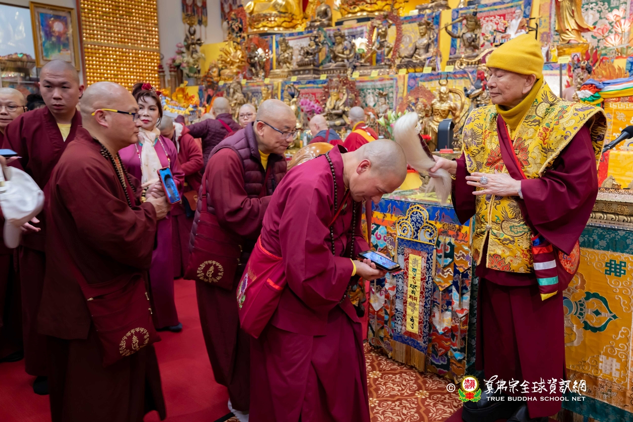 最後,聖尊慈悲的為新皈依的弟子們進行皈依灌頂,並加持大悲咒水,開光佛像,持拂塵加持與會大眾。