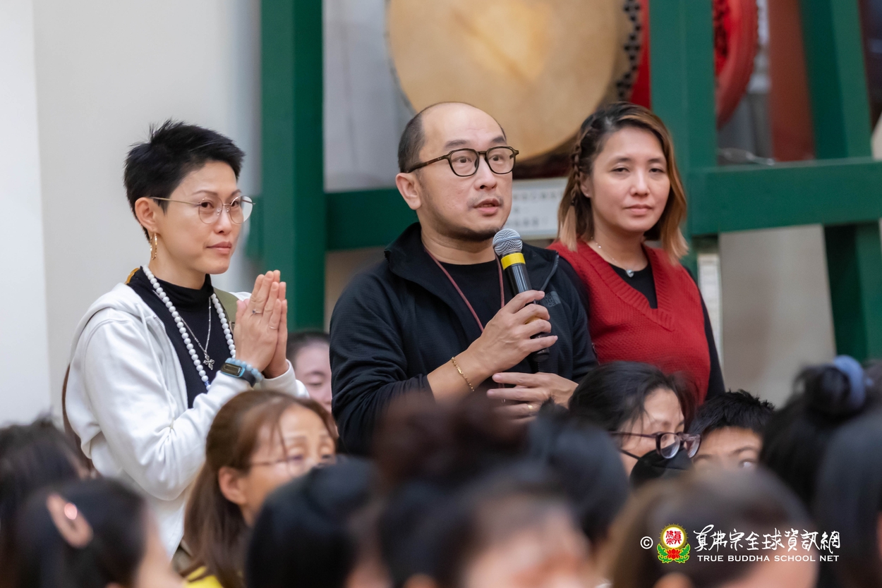 在開示的尾聲,聖尊因悲憫戰火蹂躪下的苦難眾生而哽咽流淚。