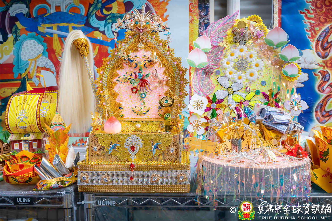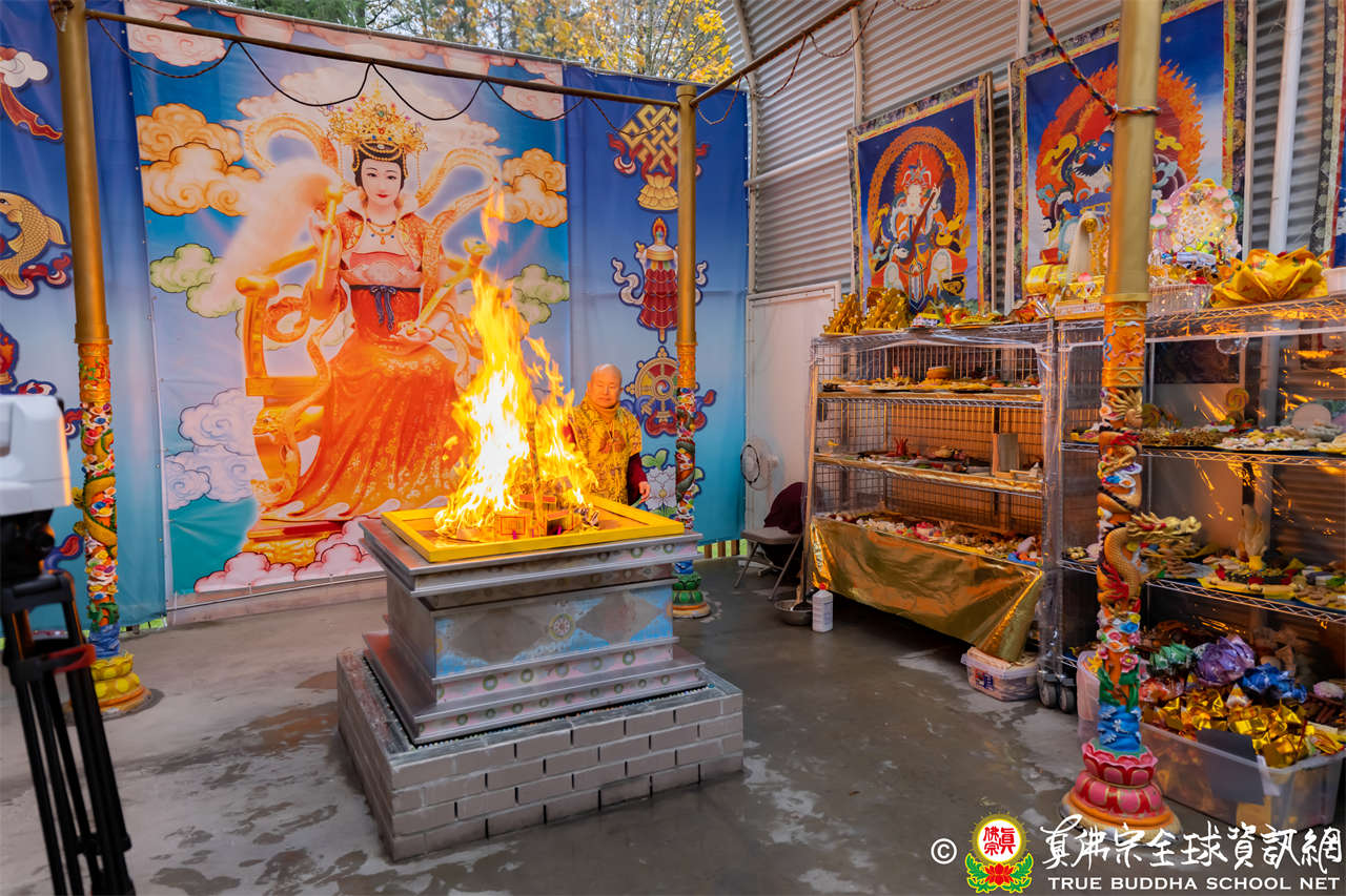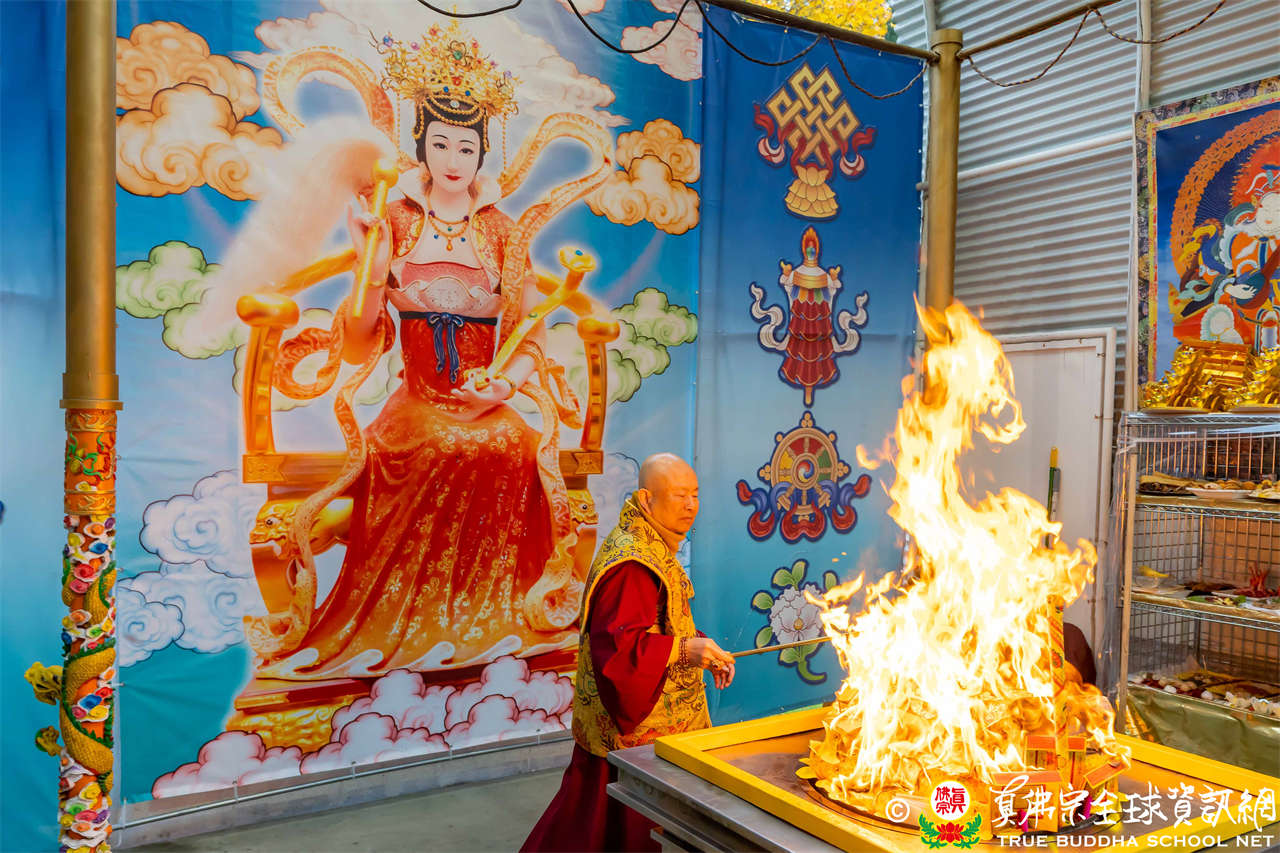 今日的護摩主尊是「瑤池金母」,世界上瑤池金母形象大都是中年不然就是老年,唯一只有真佛宗具有天女形象的瑤池金母,這是非常特殊的,少女形象的瑤池金母比較有力量。修持「瑤池金母馬上有錢法」相應,財富就會如同下雨般灑下,什麼財都有,錢要找你的時候,擋也擋不住,但重要的是得到了這些財,要佈施給眾生,迴向社會,造福他人。