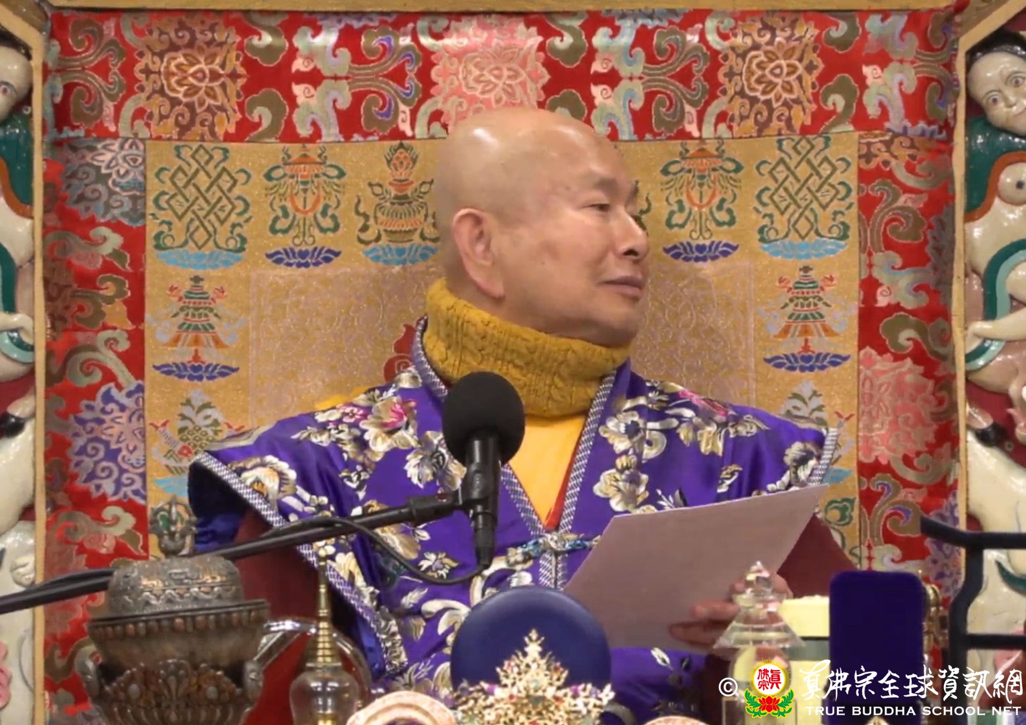 聖尊繼續解釋經意:若有佛菩薩看到清淨的佛土,不會感到歡喜。若看到不淨的佛土,也不感覺到憂愁。這就叫「淨穢一如」。如此一來沒有什麼障礙。這是未曾有的。其實所有的佛菩薩跟功德都是平等的。就算顯現的像不同,但是功德一樣,只是因為渡化眾生的原因而出現的佛土不同。什麼根器的就到什麼淨土。
