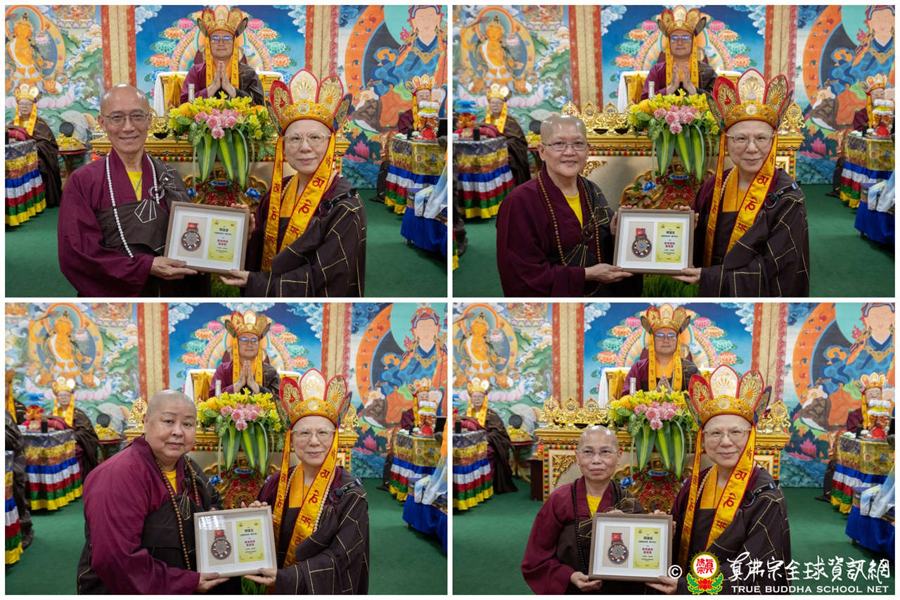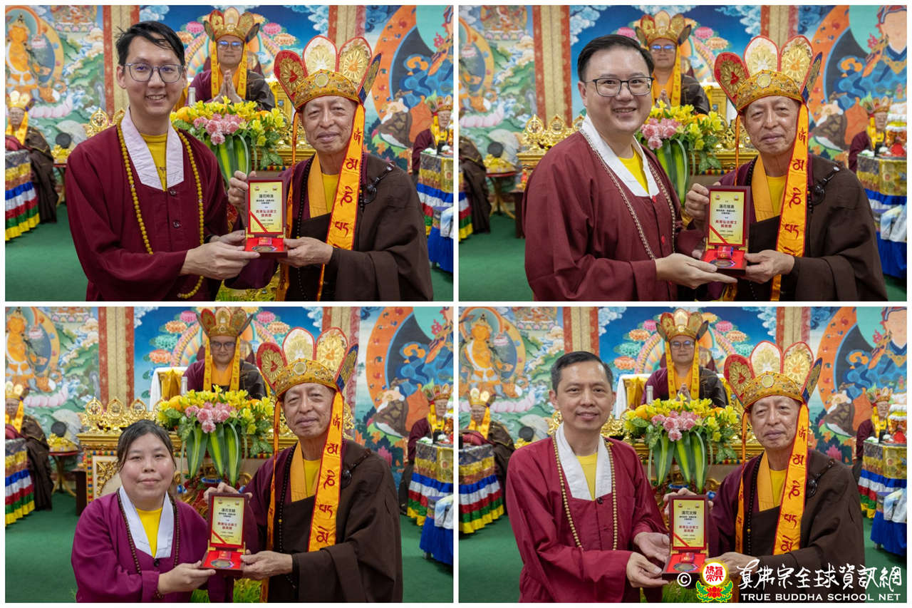 護摩法會開始前,宗委會首次舉辦了隆重且溫馨的「榮耀奉獻、照亮真佛」頒獎典禮,頒發獎章表揚在弘法路上默默付出,乃至於對當地社會具有卓越貢獻的真佛僧伽及真佛居士弘法人員。是次頒獎典禮,共頒發了15項獎章予親臨活動現場參與兩場法會的真佛僧伽及居士。未克與會的獲獎者,將於近日內收到由宗委會所郵寄的獎章。值得一提的是,馬密總延續去年的做法,秉持著“活動不忘布施”的精神,捐贈總值馬幣7萬令吉的物資,如白米、米粉、各類型餅乾、面條及咖啡等予政府及教育單位,幫助當地的弱勢群體及清寒學子。