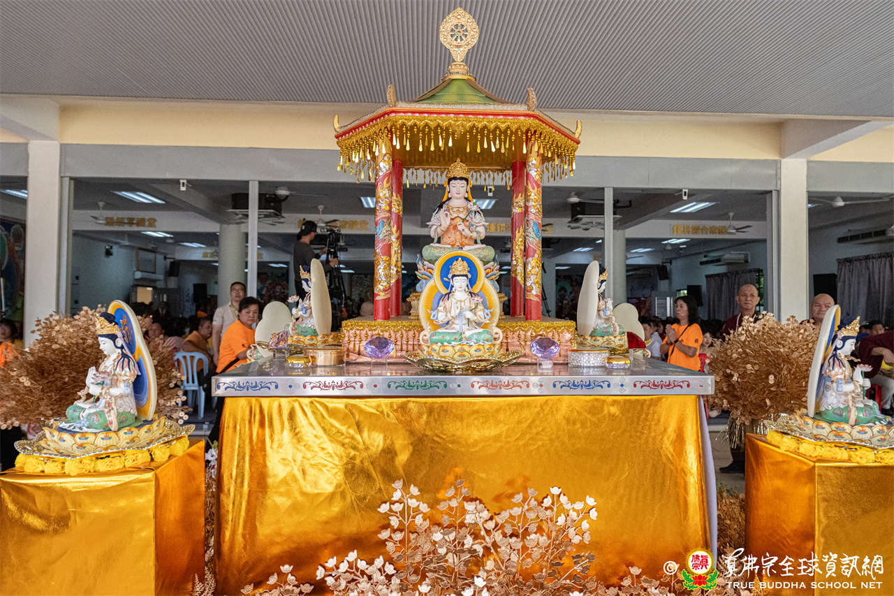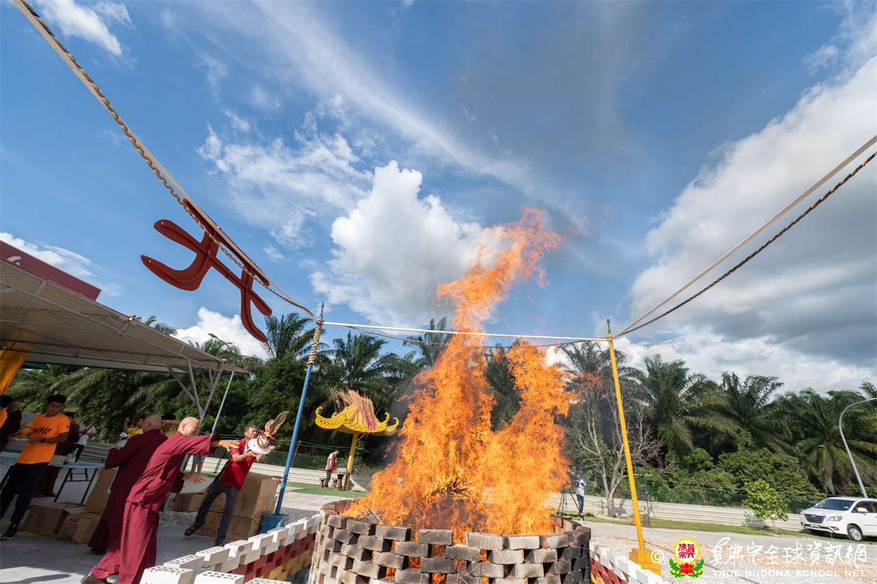 同日下午3點舉辦的「聖觀音護摩法會」,法會旨在祈願大馬國富民強、豐衣足食、祈願與會大眾福慧增長、資糧具足。主辦單位花足心思佈置莊嚴的曼陀羅壇城,讓人望而生喜。是次法會在主壇上師釋蓮東上師佛法開示,並以根本傳承上師慈悲恩賜的灌頂信物——如朕親臨令牌暨舍利子,為與會大眾做「第一富豪法」傳法灌頂而畫上圓滿的句點。