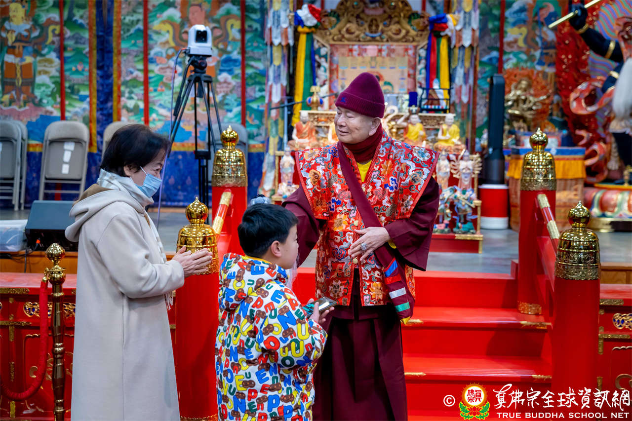 法王提到,修行的真正目標在於消除執著與煩惱,漸漸就會達成「三明」:宿命通、天眼通與漏盡通,進而接近佛的境界。而「童子」象徵天真無邪、無煩惱,是菩薩的化身。他特別分享了與自己小孫女的互動,提到小孫女每天晚上睡前都會向菩薩拜拜,摸著菩薩的頭說「Good night」,天真可愛的舉動讓法王感嘆童真的純淨。