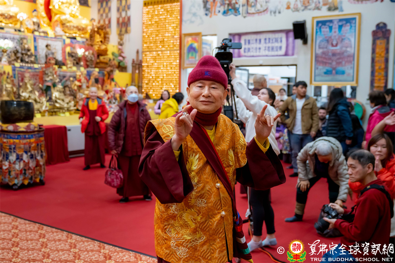 2024年12月21日夜晚寒風凛冽,寺前為即將到來的聖誕佳節佈置了美麗熒煌的彩燈裝飾,一片歡欣氣氛。遠道而來的弟子們,滿懷雀躍之心齊聚於祖廟,為嚴寒冬季更添熱情溫暖。隨著殿內蓮花童子的咒音響起,大眾虔誠合掌跪迎聖尊蓮生活佛盧勝彥蒞臨主持準提佛母本尊法的同修活動。