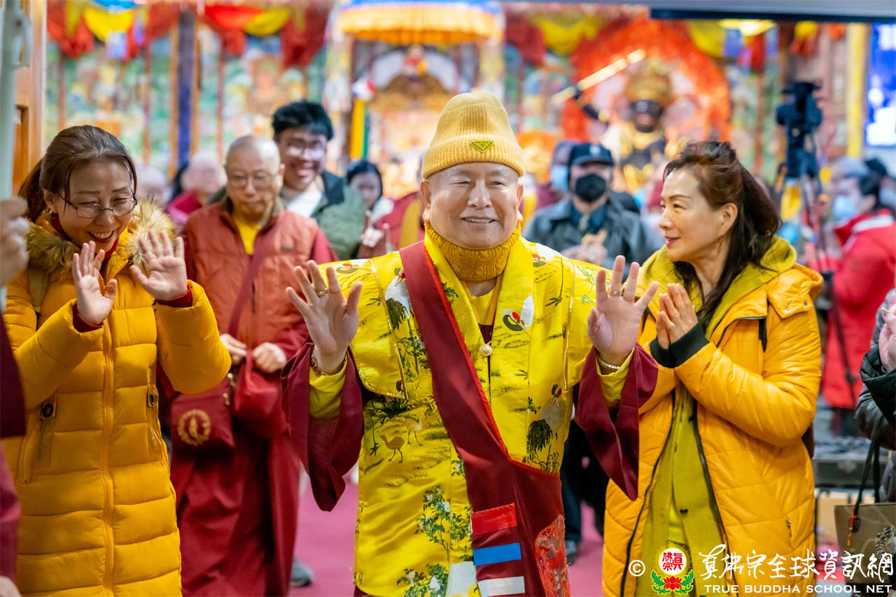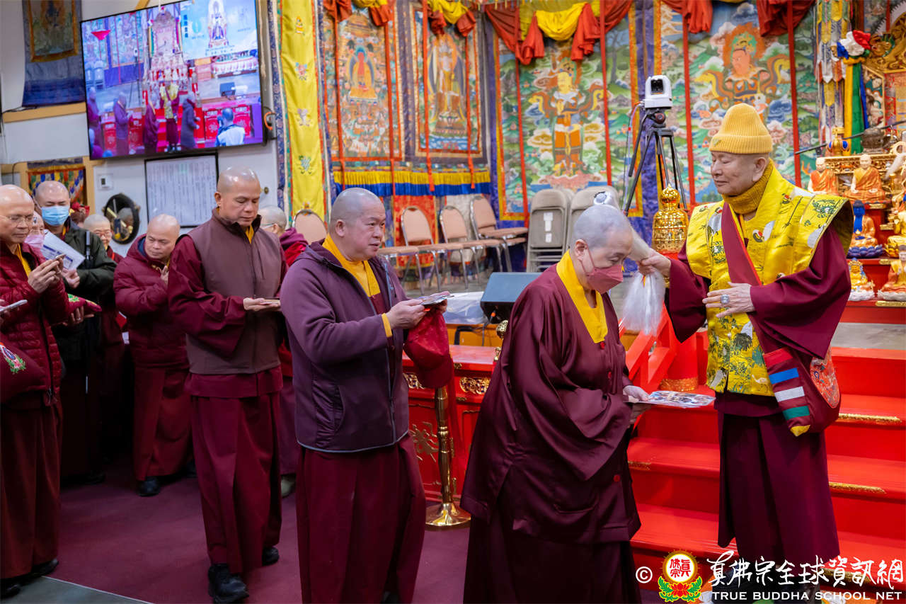 法王開示結束,大衆報以熱烈掌聲感恩。接著法王與zoom上弟子問候,並為與會大衆賜予瑤池金母法總灌頂,法會至此圓滿結束。