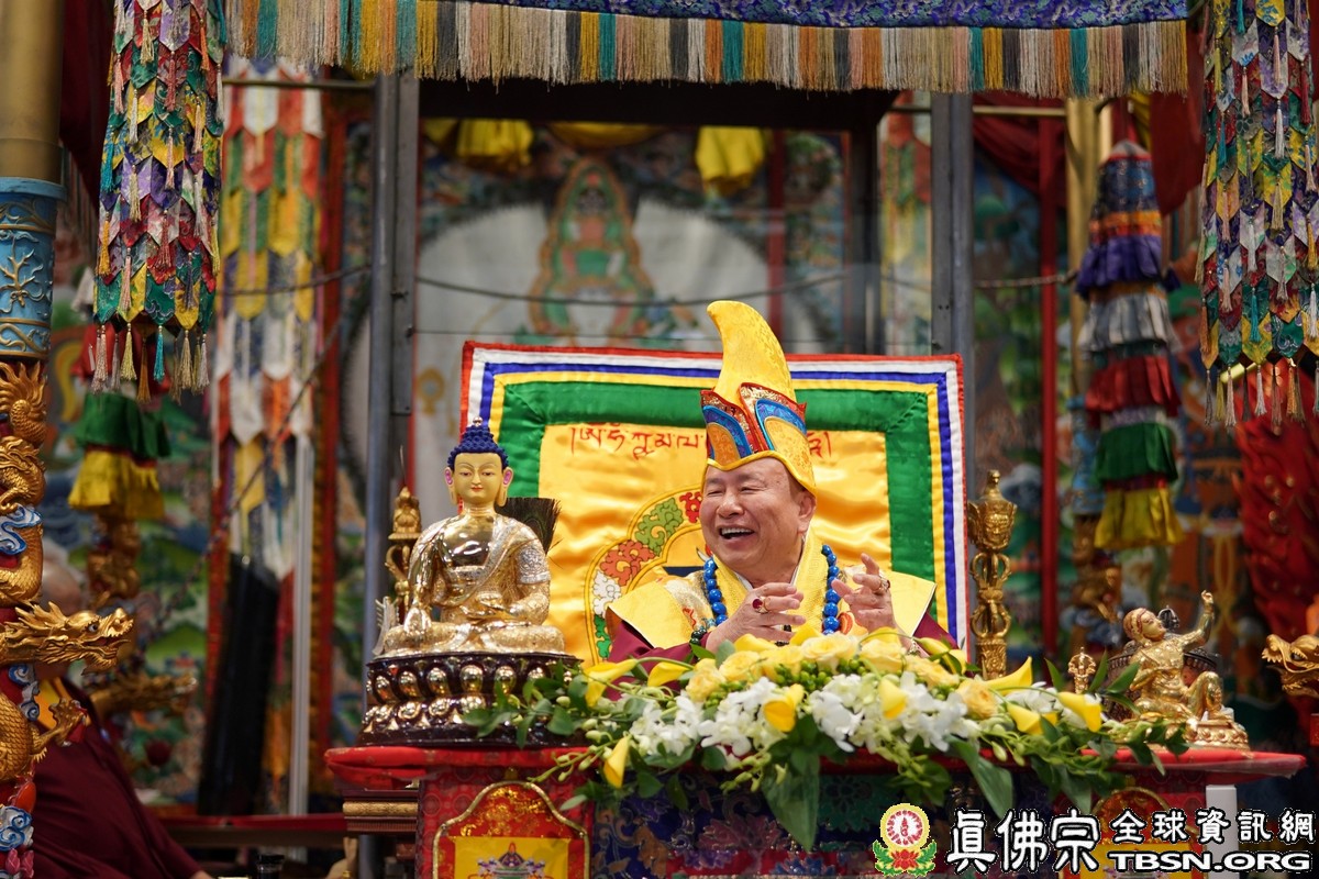 莊嚴殊勝的火供過後,師尊開示,昨天浴佛,今日做「釋迦牟尼佛」護摩火供,很好,很圓滿。當年,釋迦牟尼佛於菩提樹下證悟後,欲入涅槃,是大梵天王及帝釋天勸請佛陀慈悲住世,大轉法輪。釋迦牟尼佛才在娑婆世界三轉法輪 :苦輪、 集輪、 滅輪。一轉法輪教導眾生「苦當知」,知道人間有生、老、病、死苦、愛別離苦、怨憎會苦、求不得苦,活在這世界上的都是煩惱及痛苦,快樂只是暫時的。在第二轉法輪時,再教導眾生把苦及苦因全部集合起來斷掉,就是「集應斷」,就是要斷苦。 第三轉法輪時,教導眾生「滅應證」,證到所有的苦通通消滅。最後,「道應修」,要修「道」,修行成功了,才能證明「滅」,斷除所有的苦,才能離苦得樂,產生極樂。