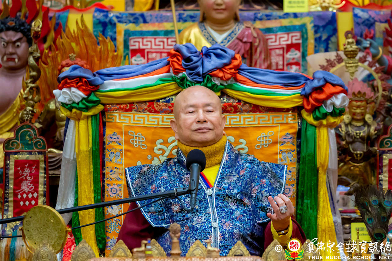 同修完後,播放真佛般若藏所製作的介紹聖尊第303本著作《凡塵的小叮嚀》影片。聖尊看後開示,剛才影片裡提到了淨信,我們這次大法會,就是用淨信來向藥王度母祈求,大家跟著我一起祈禱,包括看網路的,世界各地的弟子都一起來祈禱,一定要請藥王度母施下祂的甘露,相信祂會幫助我們,賜予我們甘露,解除眾生的病苦。