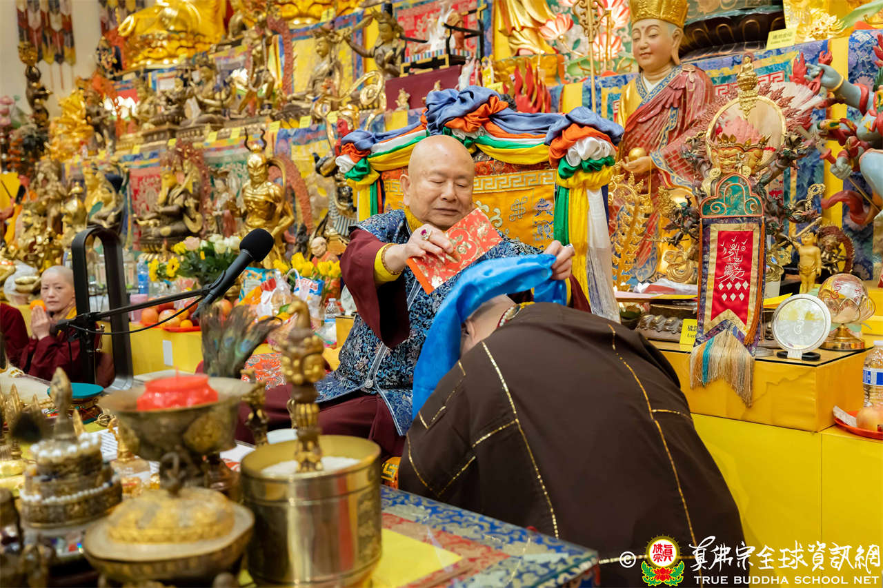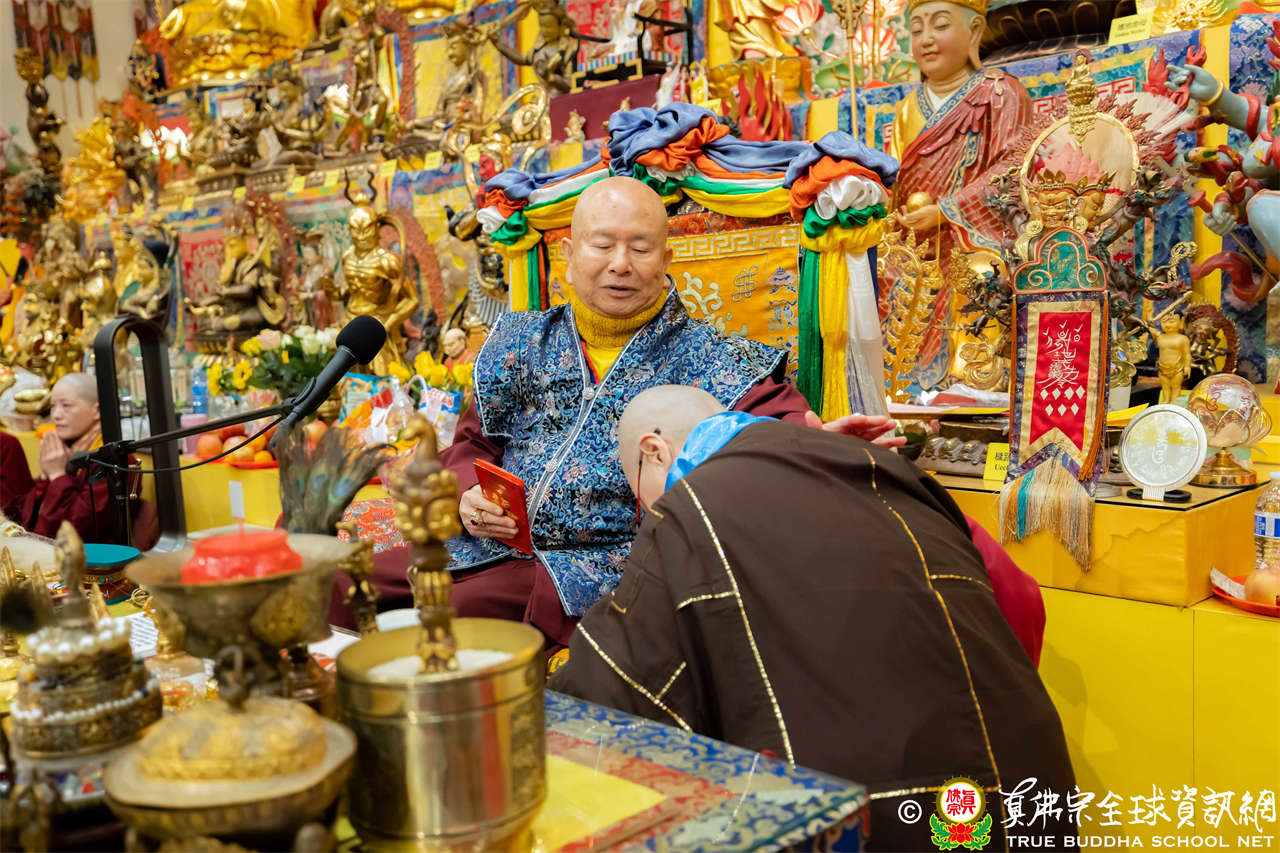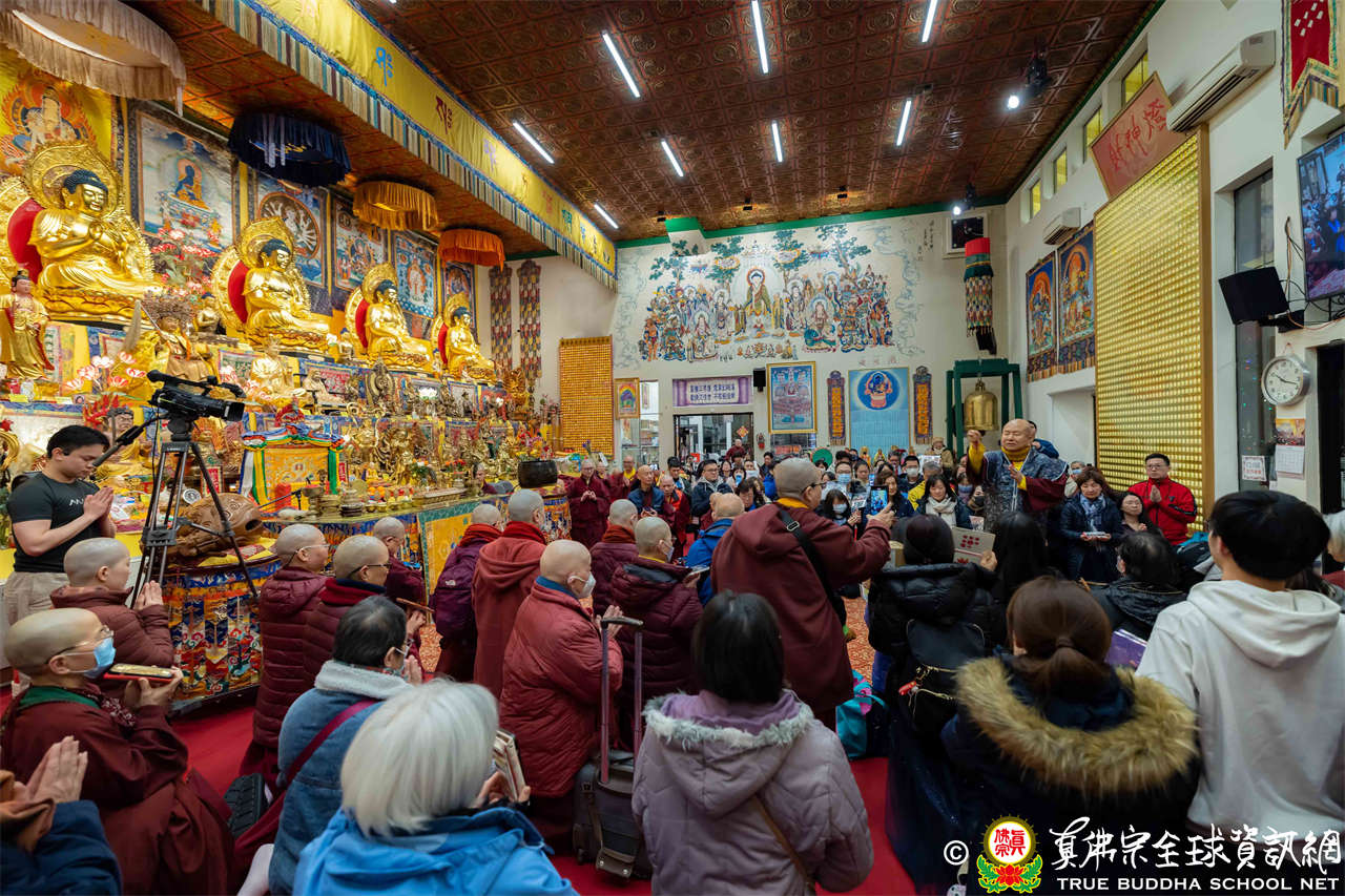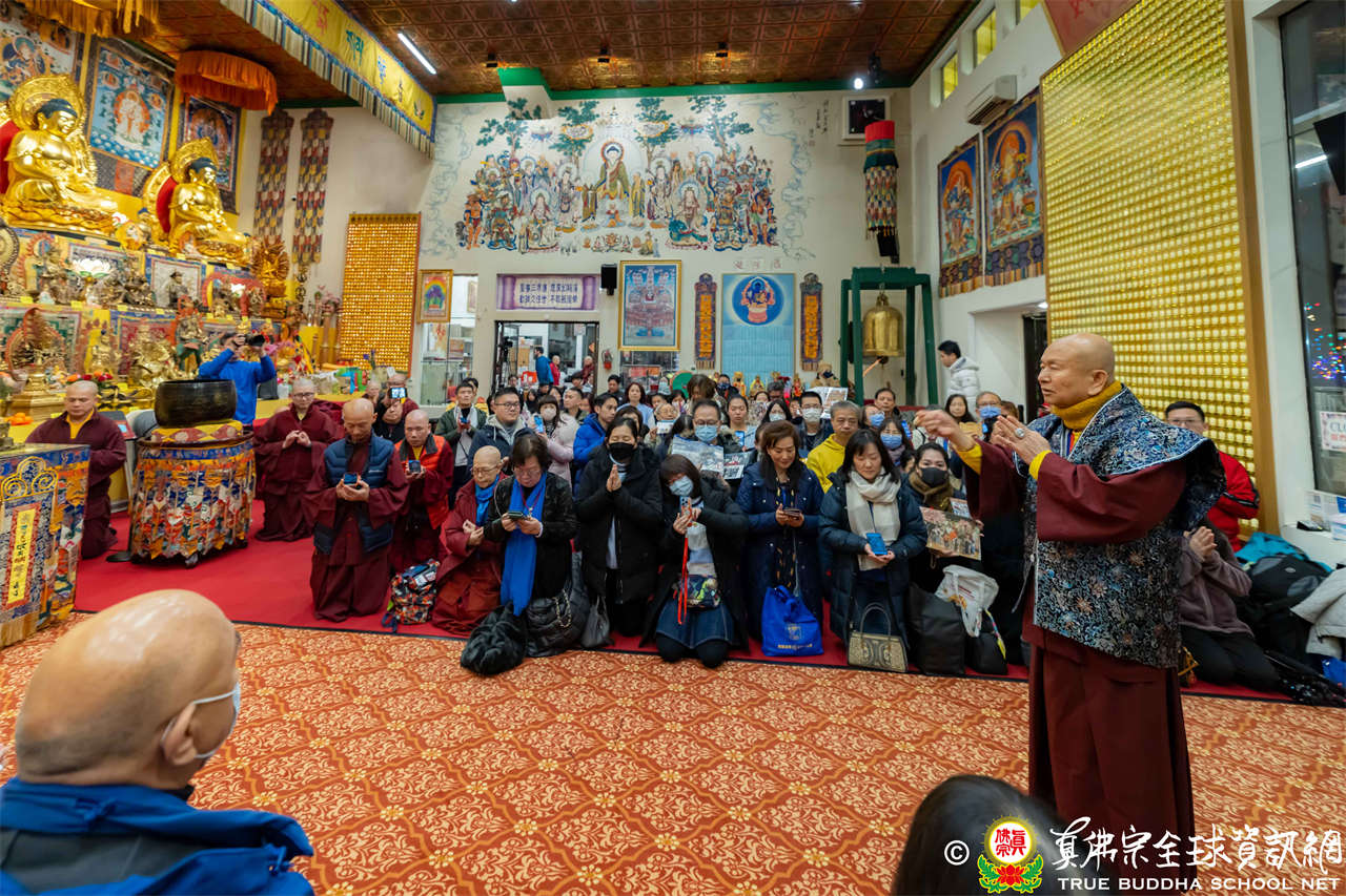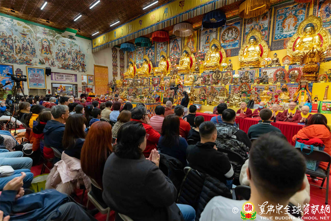 2025年1月18日,西雅圖雷藏寺大雄寶殿裡,蓮生活佛盧勝彥帶領來自世界各地的四眾弟子,同修藥師琉璃光王佛本尊法。聖尊祈請藥師琉璃光王佛加持大衆身體健康、疾病消除、息災、增益、降伏、敬愛皆得圓滿、修法成就。