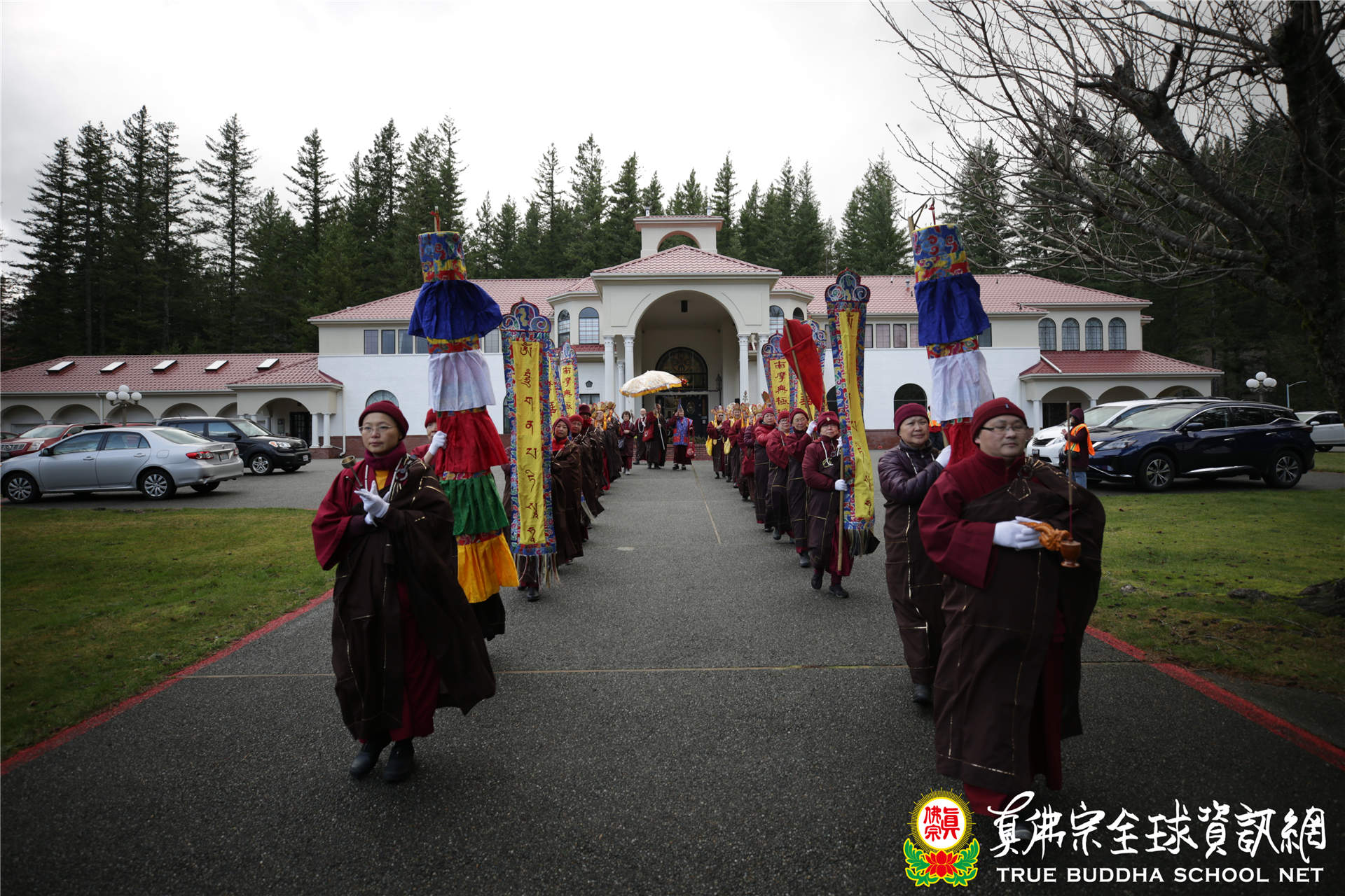 2020年01月12日下午,美國西雅圖彩虹雷藏寺恭請根本上師蓮生活佛盧勝彥主壇虛空藏菩薩護摩大法會。蓮生法王將於2020年2月1日(星期六)下午2點,在彩虹雷藏寺主持春季傳法護摩大法會,並首傳「依喜措嘉佛母本尊法」暨灌頂。是日,彩虹雷藏寺為此殊勝法會舉行隆重的請法儀式,丹增加措上師敬獻蓮花童子金身、蓮印上師敬獻哈達及供養、蓮滿上師敬獻依喜措嘉佛母金身、蓮僧上師敬獻依喜措嘉佛母腳印、蓮晴上師敬獻法王寶冠及龍袍、蓮萬上師敬獻金剛鈴杵、蓮喜上師敬獻純銀灌頂瓶、蓮傳上師敬獻人皮手鼓、蓮花璧珍上師敬獻珍貴唸珠、蓮友上師敬獻法輪、蓮久法師敬獻法螺、蓮員法師敬獻八吉祥及水晶蓮花、蓮喜上師代表向師母敬獻鮮花,請法儀式隆重莊嚴。當請法儀式一開始時,虛空降下很大的冰雹,之後,整個現場都感受到很大的加持力及莫名的感動湧上心頭,現場的人都有這樣感受,天現瑞相,非常殊勝。