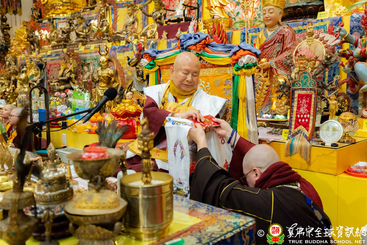 珍貴的開示結束後,師尊慈悲加持大眾「一掃煩惱輕、二掃霉運除、三掃業障去」,人人法喜滿滿,歡欣踴躍。