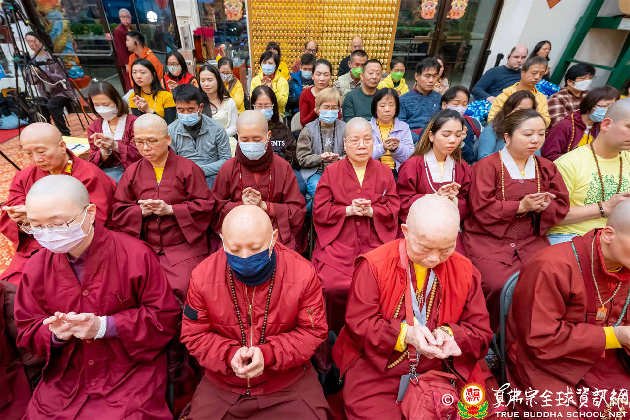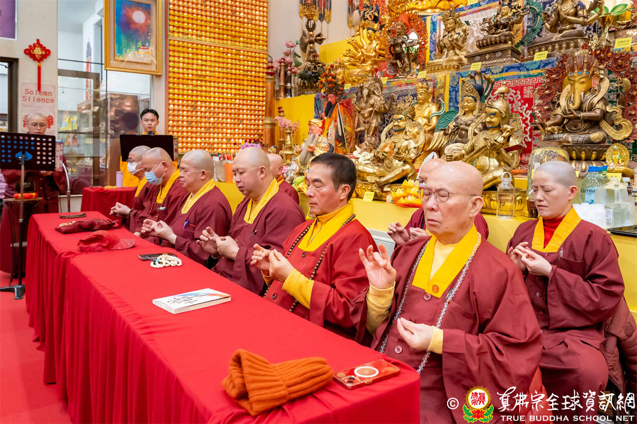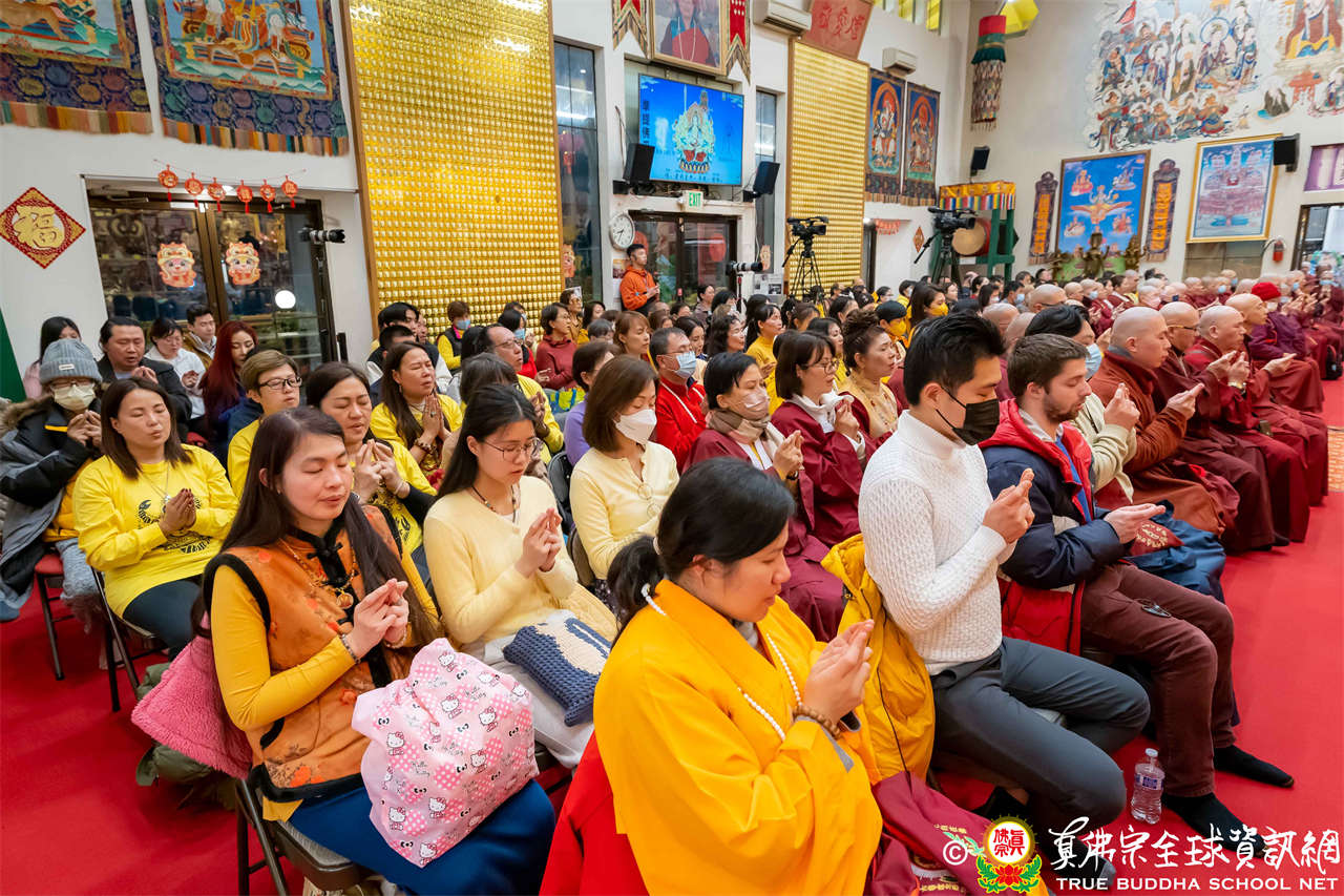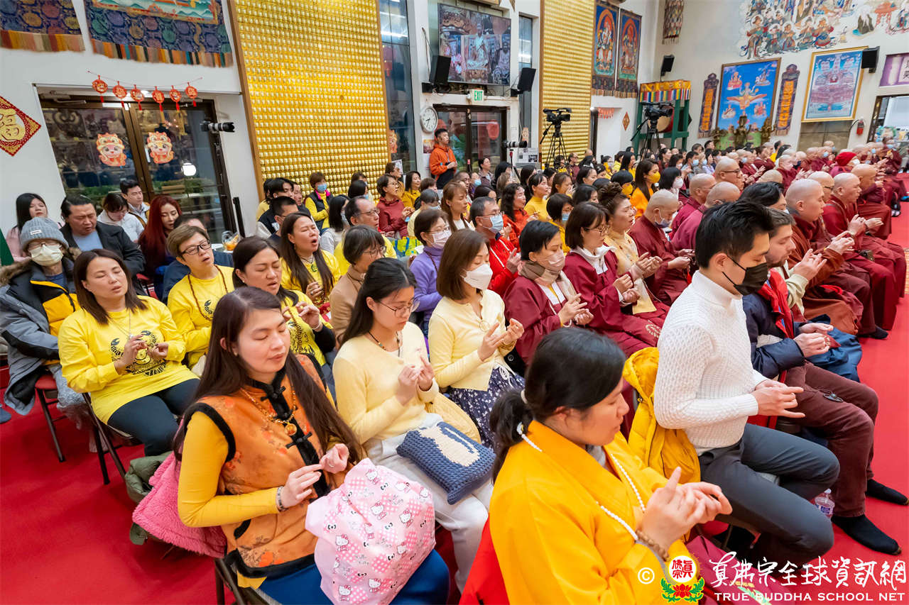 初春微雨中,西雅圖雷藏寺大雄寶殿裡,聖尊蓮生活佛盧勝彥帶领來自世界各地的四衆弟子,同修準提佛母本尊法。聖尊祈請準提佛母加持大衆身體健康、萬事如意、修行成就圓滿。