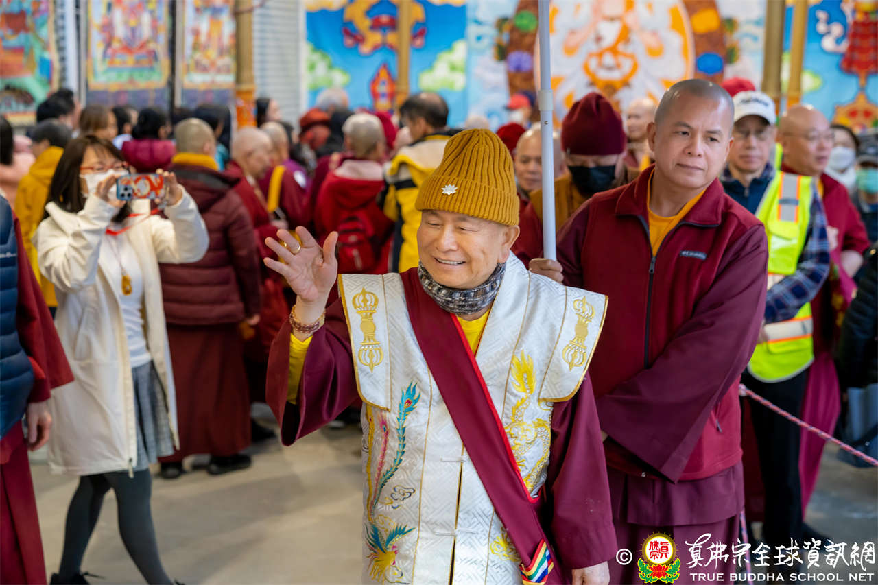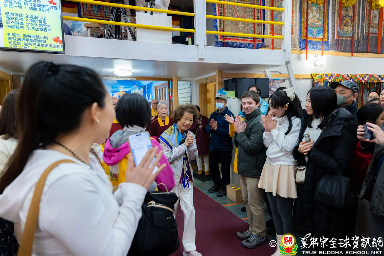 2025年3月9日,西雅圖彩虹雷藏寺恭請聖尊蓮生法王主壇蓮花童子護摩法會。當天適逢農曆二月初十,亦是法王出家39週年的紀念日。護摩儀式結束後,現場播放由宗委會製作的出家39年紀念影片,隨後,法王更即興唱起印尼文生日歌,為這特別的日子增添歡樂氛圍。