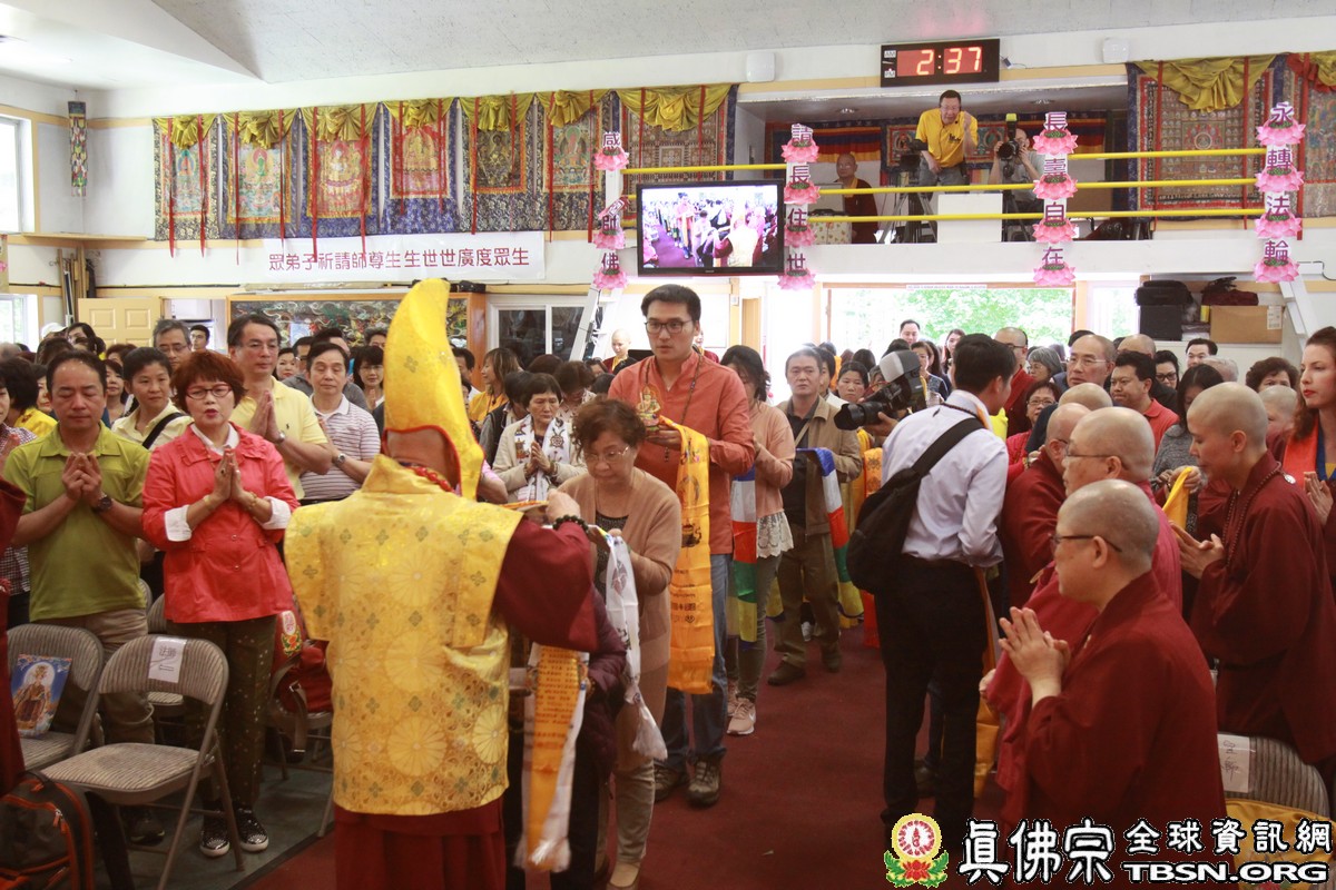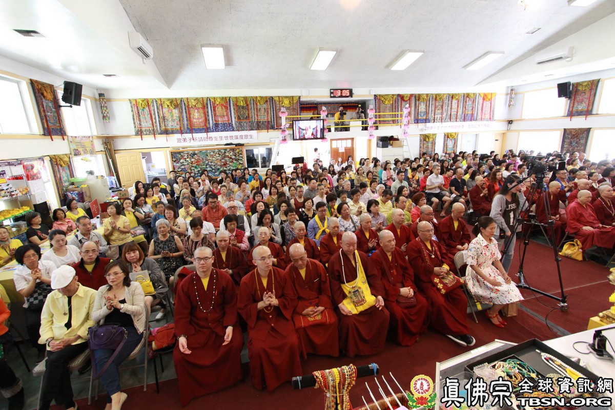 是日,護摩寶殿一大早就座無虛席,廖東周大使伉儷也出席參加,中午12點,四眾弟子熱情溫馨地恭迎法王聖尊進入大飯店共進午餐,此次的午餐加洲四大媽特地在用餐時供養了很多的笑話,逗得師尊及大家樂開懷,笑聲連連。