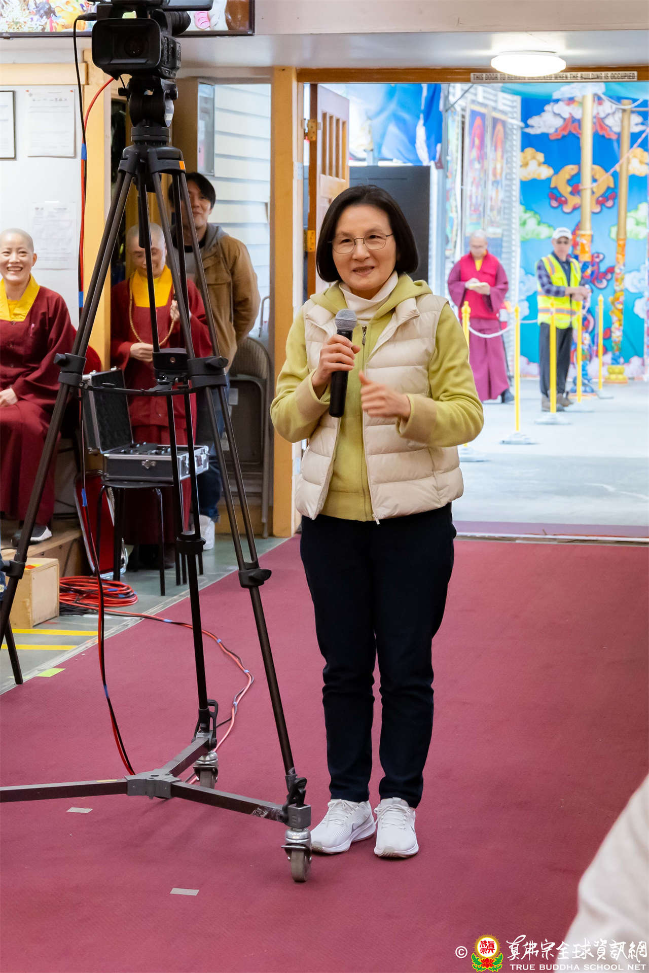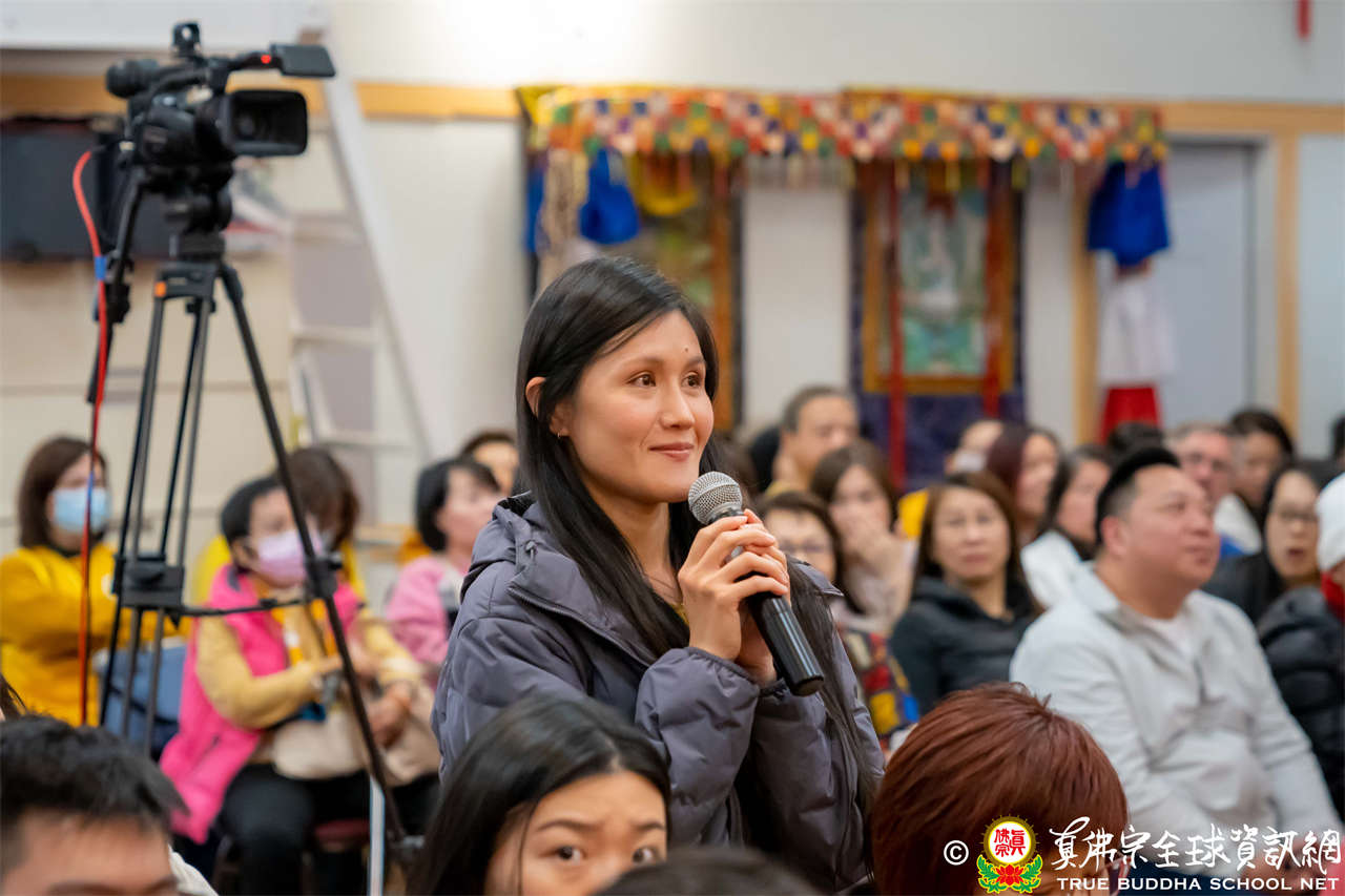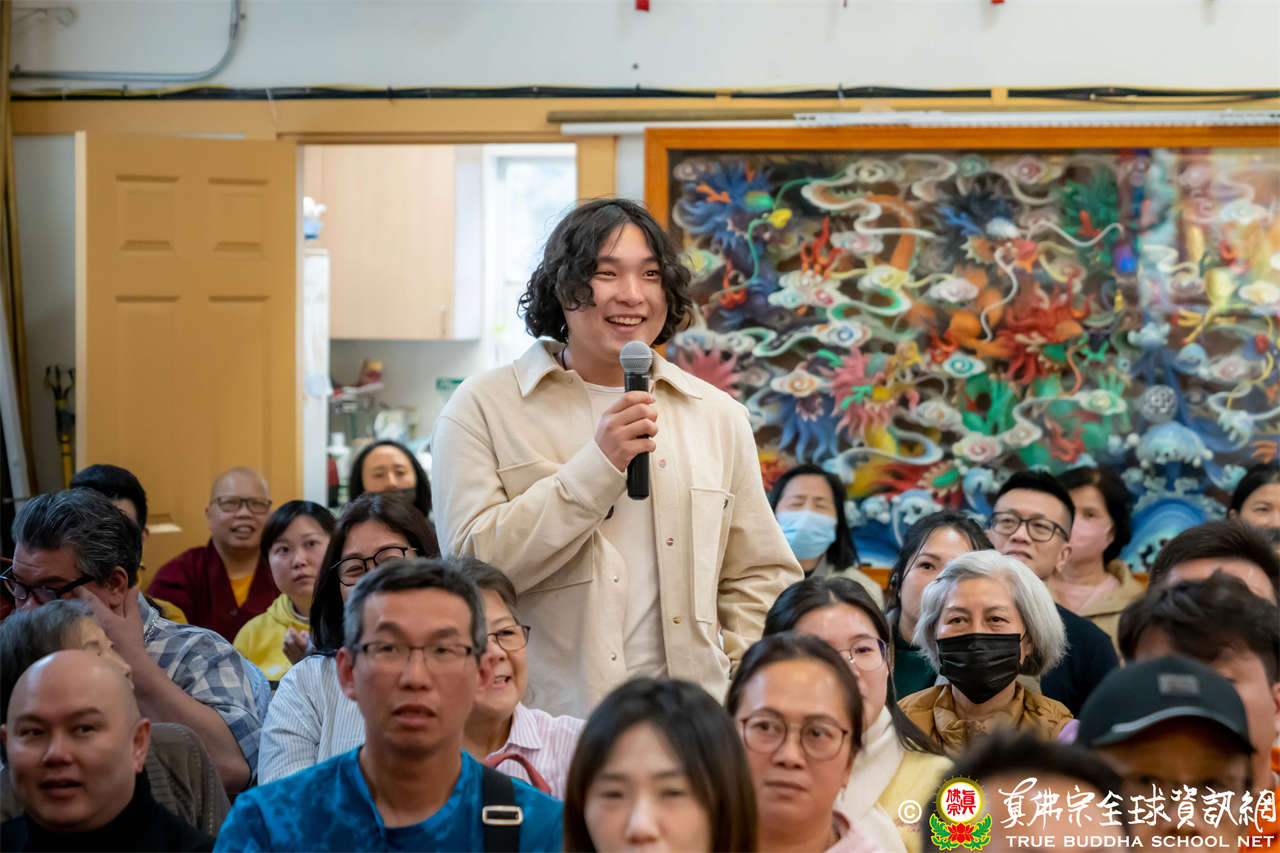 法王講解楞嚴經至此,接著又邀請現場數位見證法王法身者作分享。其中有來自巴拿馬、印尼、臺灣的同門現場分享見證,其中一位得法王指出,是法王前世在日本的侍者,令人嘖嘖稱奇!