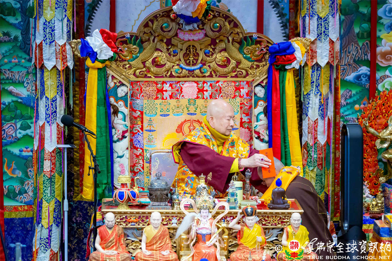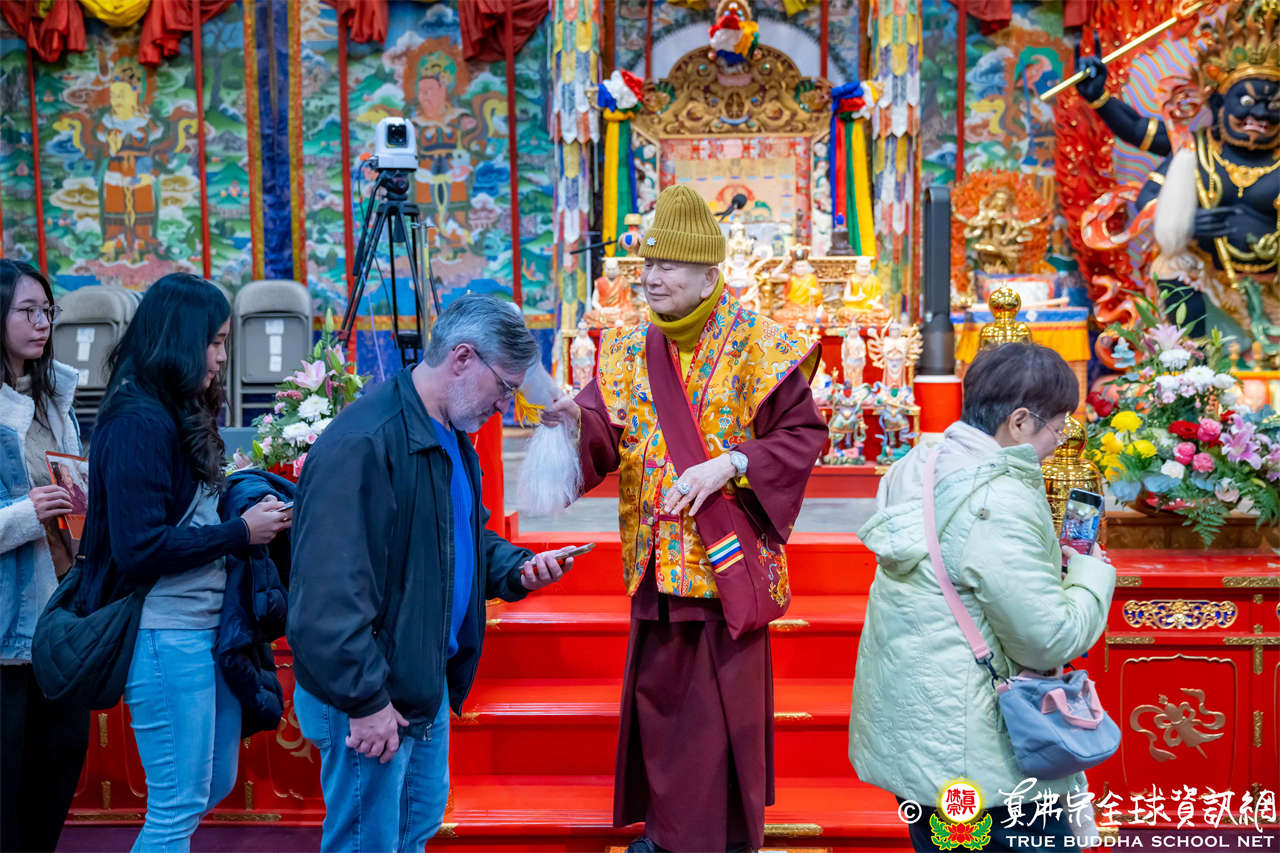 法王開示畢,衆人報以熱烈掌聲感謝。接著法王下座與線上上弟子互相問候,並為與會大衆賜授地藏菩薩法灌頂。法會至此圓滿結束。