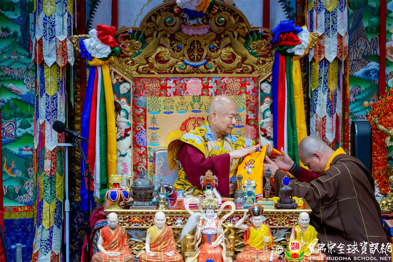 結束精彩的法語開示後,法王慈悲賜授現場與會大眾「萬佛手無極眼瑤池金母」灌頂,法會圓滿落幕。