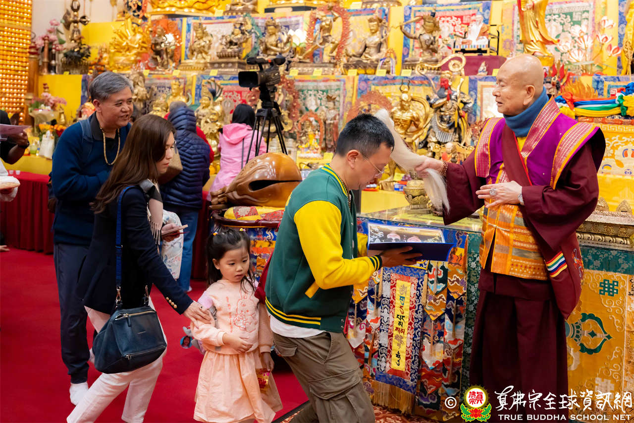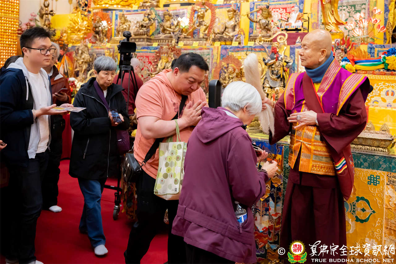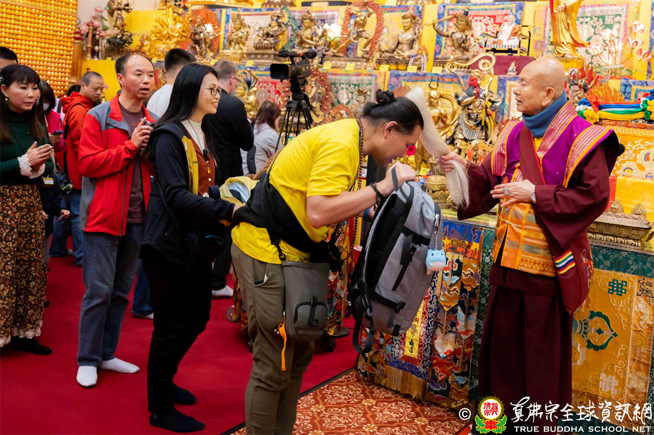 在講述楞嚴經後,聖尊為求皈依的信眾賜授皈依灌頂,加持大悲咒水及開光佛像,並以拂塵加持與會大眾。聖尊教導佛法真義,四眾弟子心開意解,法喜充滿,蓮華生大士的加持與顯現亦令與會眾等歡欣鼓舞,只要敬師重法、實修不懈,蓮師常在,佛光永照。