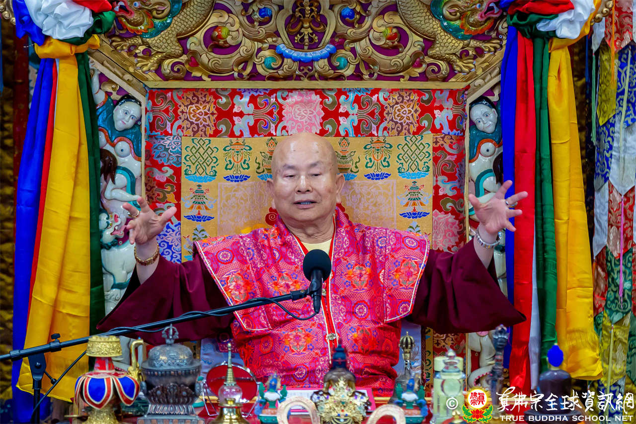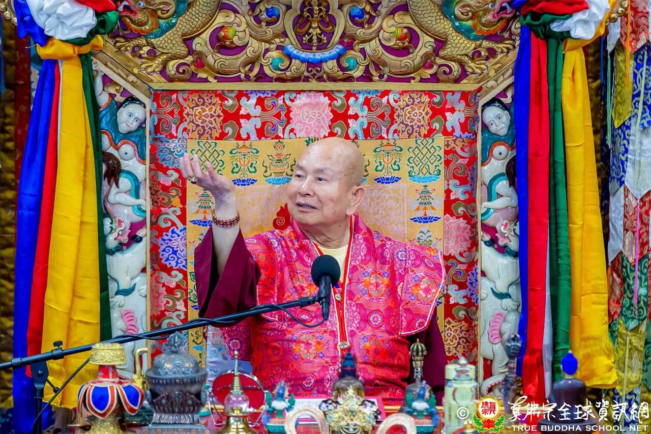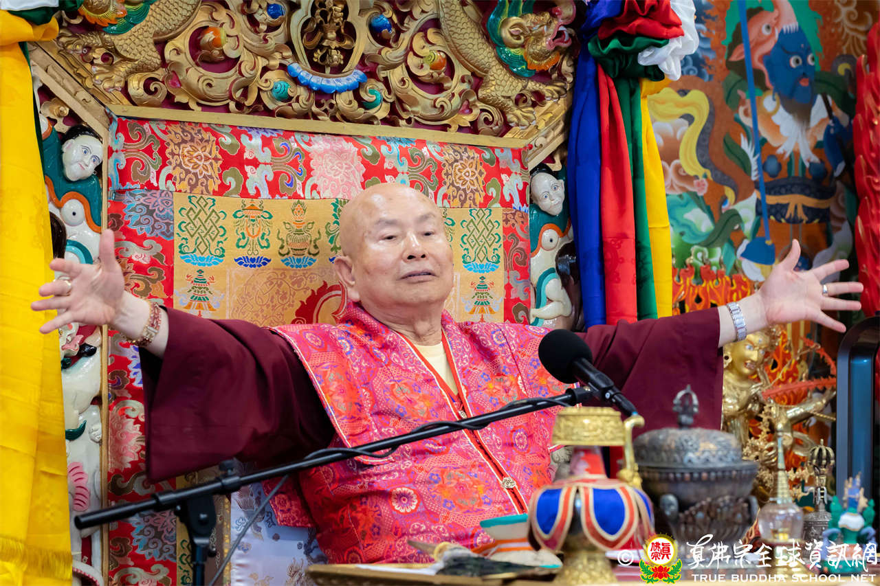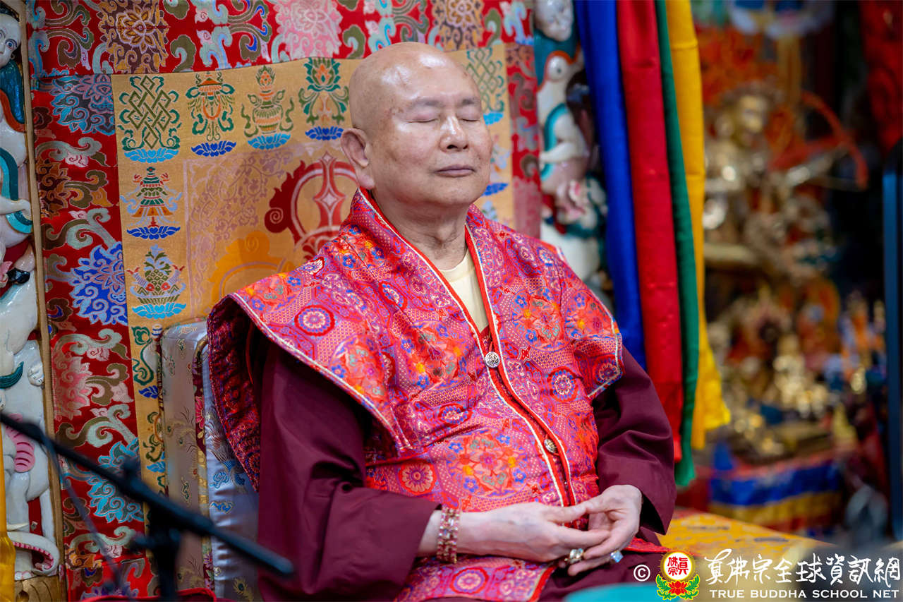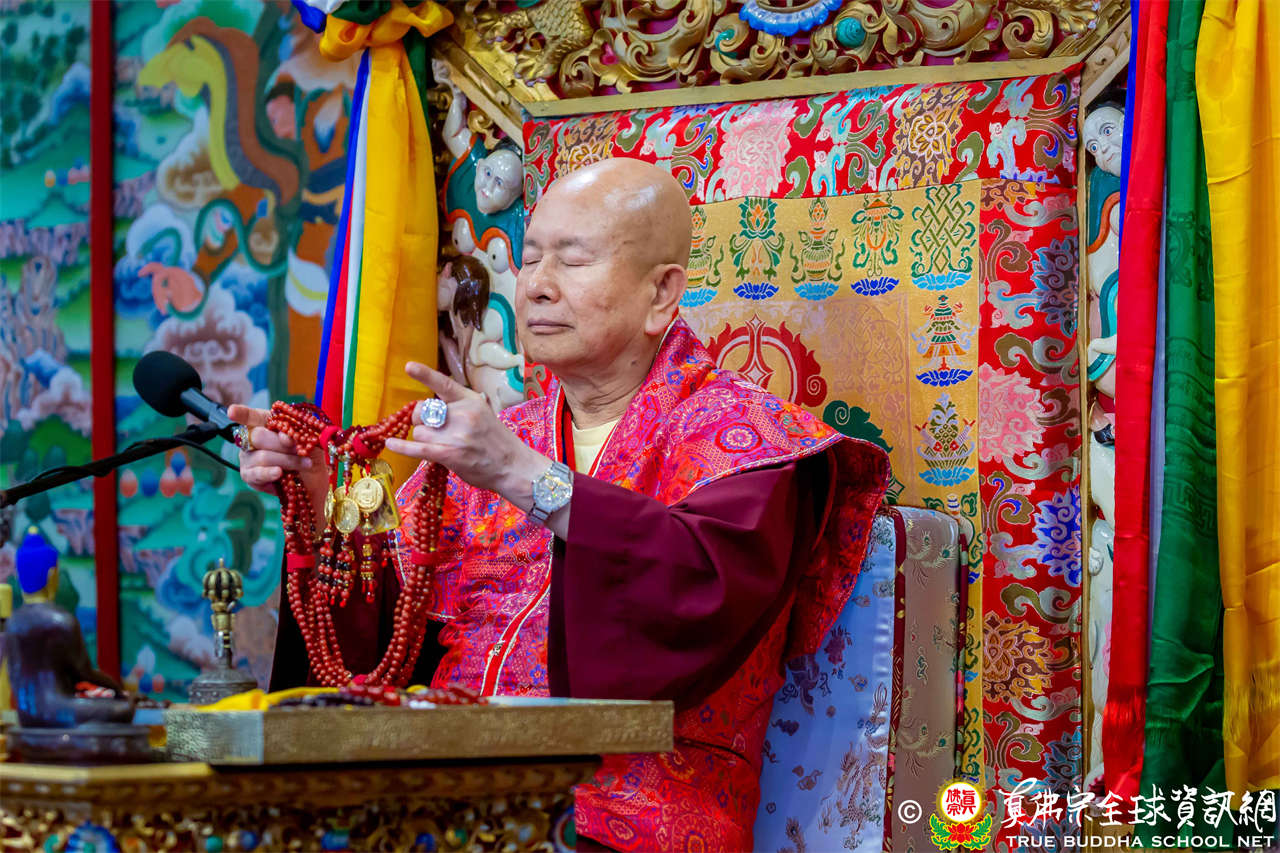 談及修持法門,法王引《無量壽經》指出,誦持長壽佛心咒能增福延壽,消除業障、遠離橫死與夭折,幫助修行者成就無死成就,往生極樂淨土。修持長壽佛可以消除疾病,福壽綿延,善緣增長,惡緣消除,令「世間法」的事業能夠長壽。