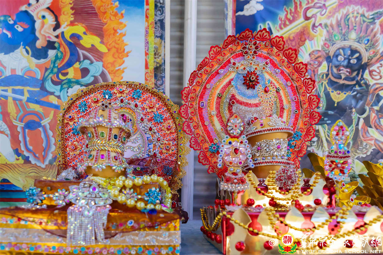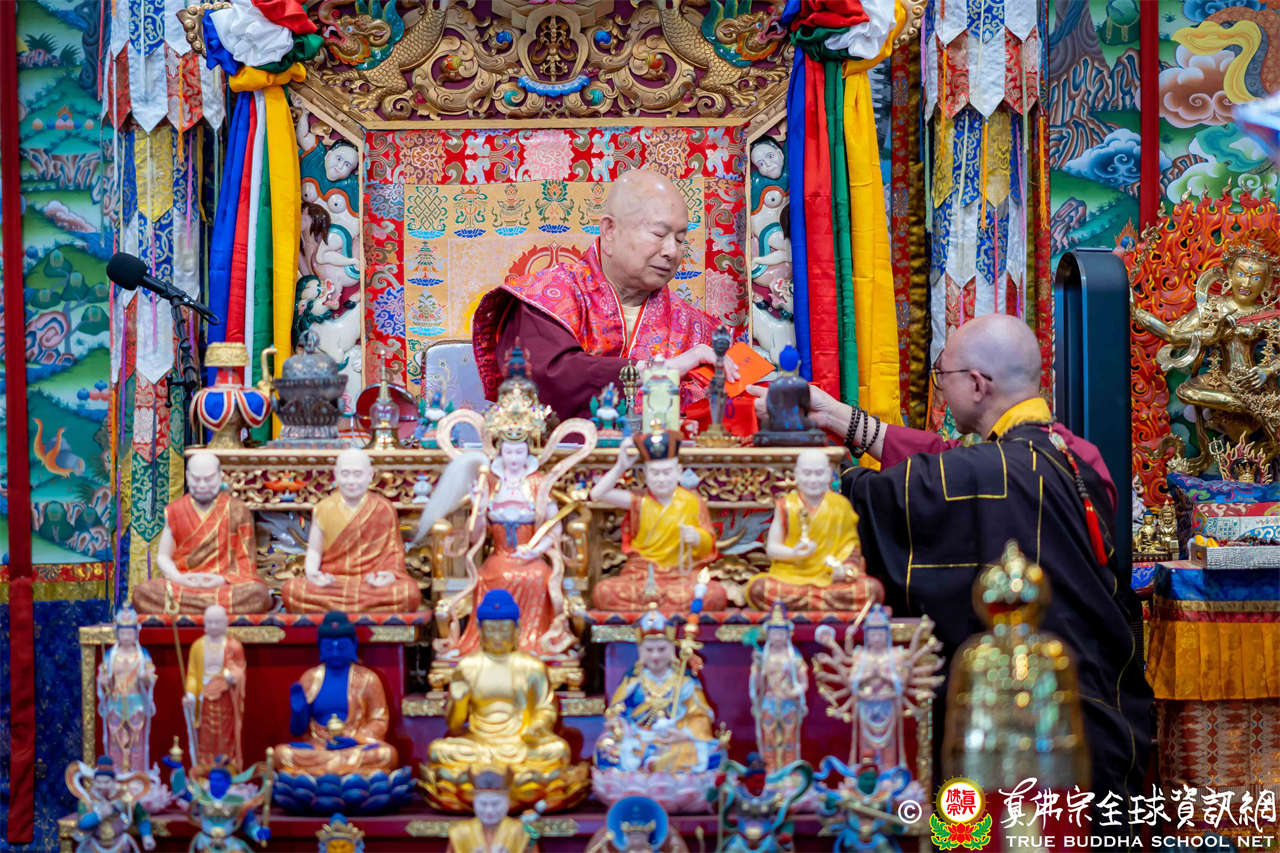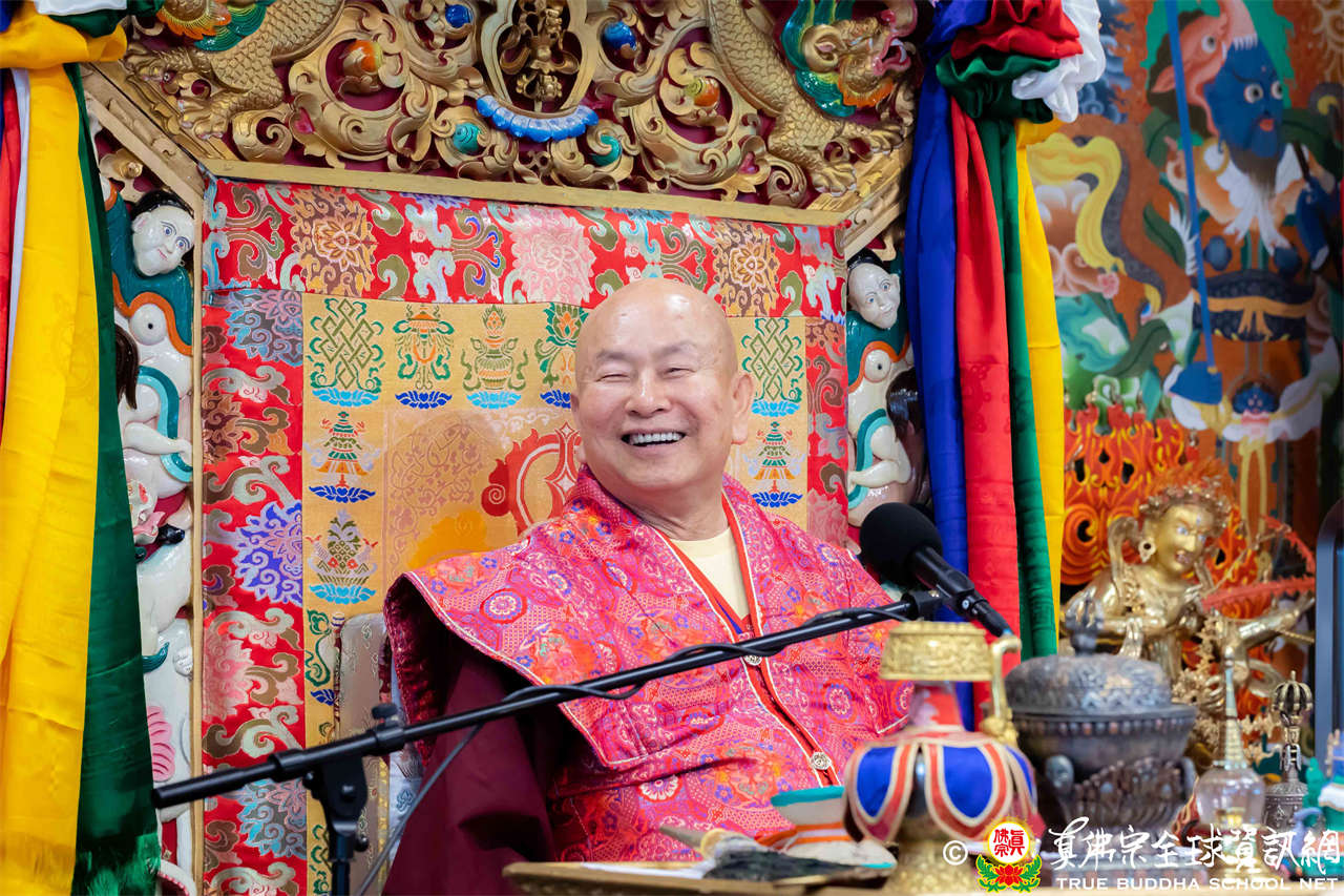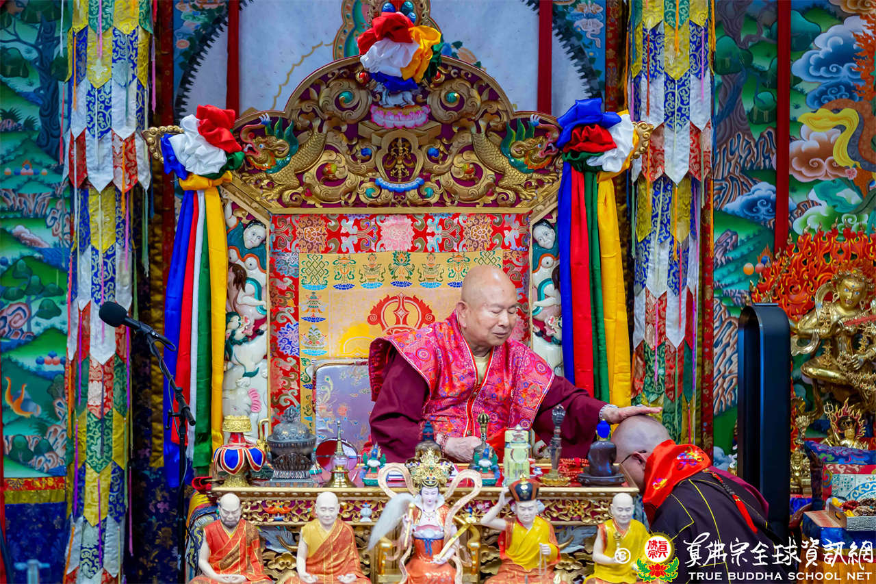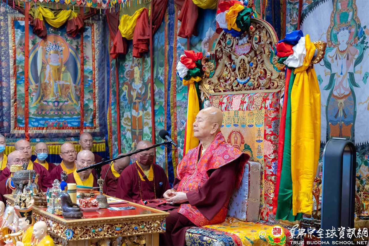 談及修持法門,法王引《無量壽經》指出,誦持長壽佛心咒能增福延壽,消除業障、遠離橫死與夭折,幫助修行者成就無死成就,往生極樂淨土。修持長壽佛可以消除疾病,福壽綿延,善緣增長,惡緣消除,令「世間法」的事業能夠長壽。