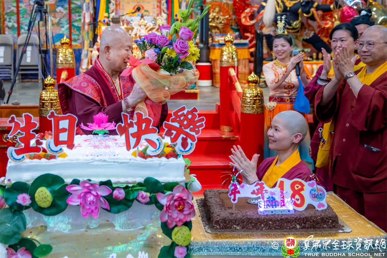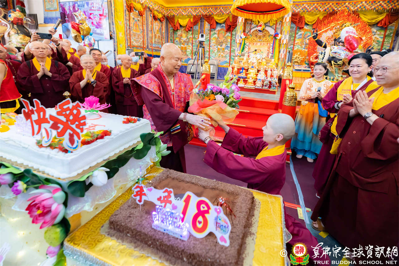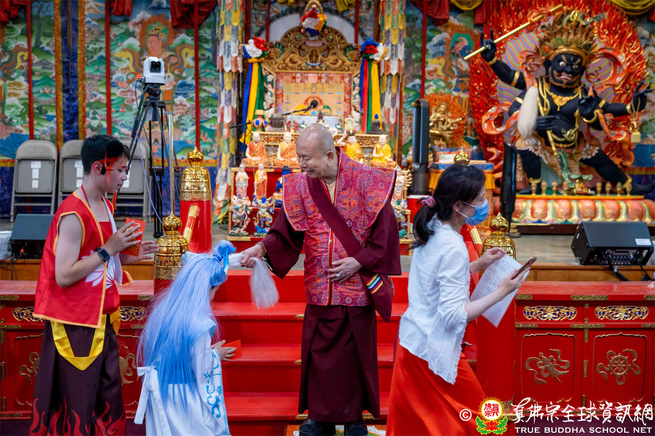 西雅圖彩虹雷藏寺於2025年6月8日舉辦長壽佛護摩大法會,恭請聖尊蓮生法王親臨主壇,現場及Zoom上同門虔心與會,同霑法喜。護摩儀軌圓滿後,法王預告下個星期天6月15日是「蓮花童子」的護摩法會,笑言不用介紹蓮花童子了。