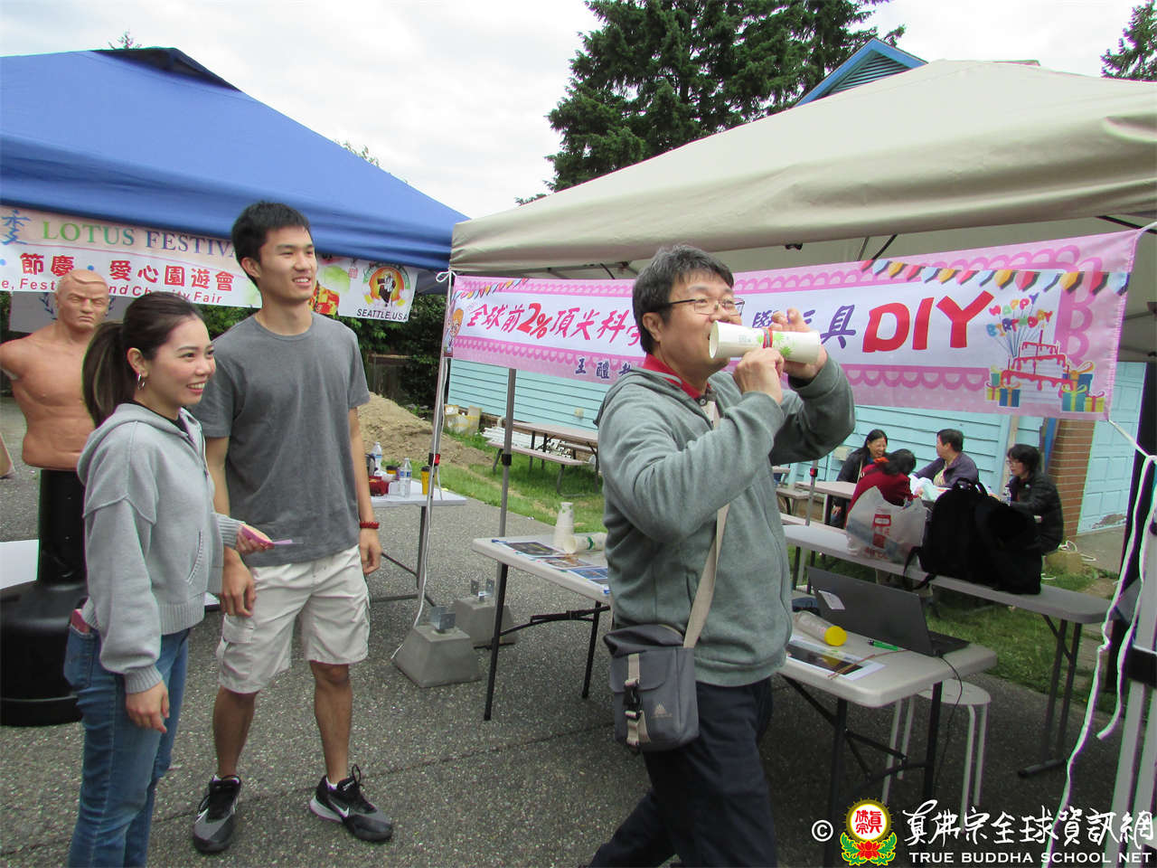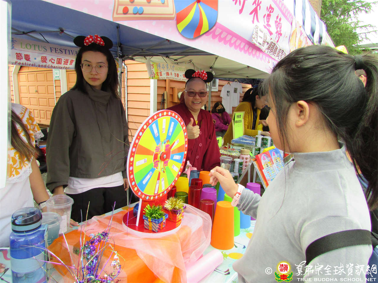 今日歡慶聖尊蓮生活佛佛誕,同時從今起一連2天舉辦愛心公益園遊會,各攤位的收入全數捐做慈善布施,幫助貧苦眾生。
