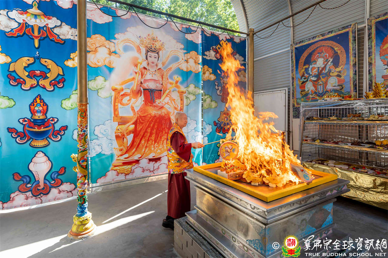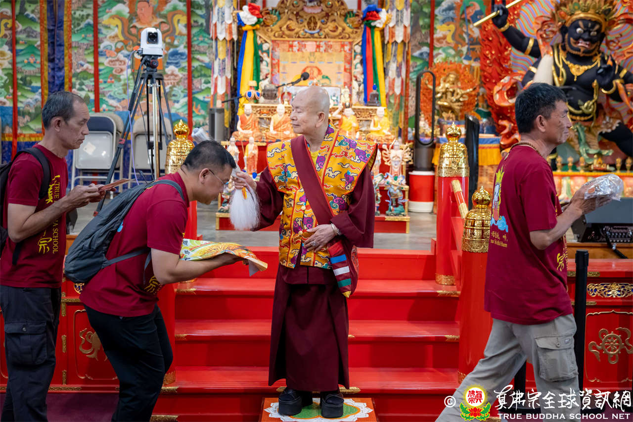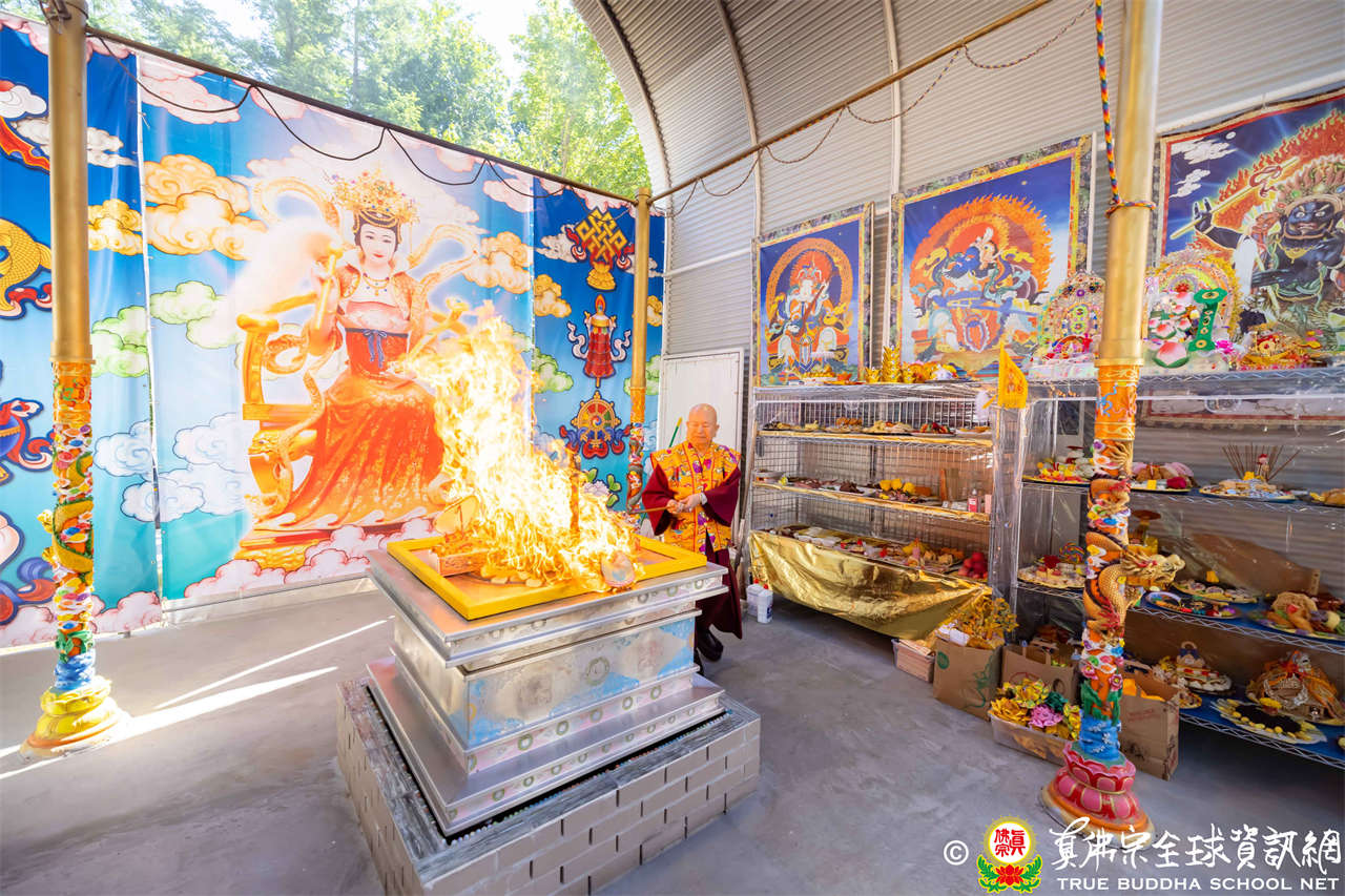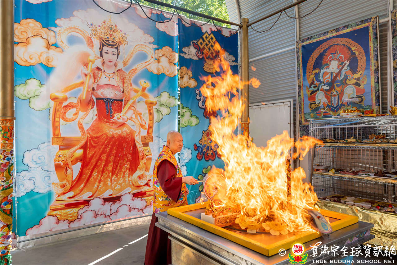 2025年6月29日,西雅圖彩虹雷藏寺恭迎蓮生法王主壇瑤池金母護摩法會。護摩圓滿後,法會預告下週將舉辦勾財天女的護摩法會。