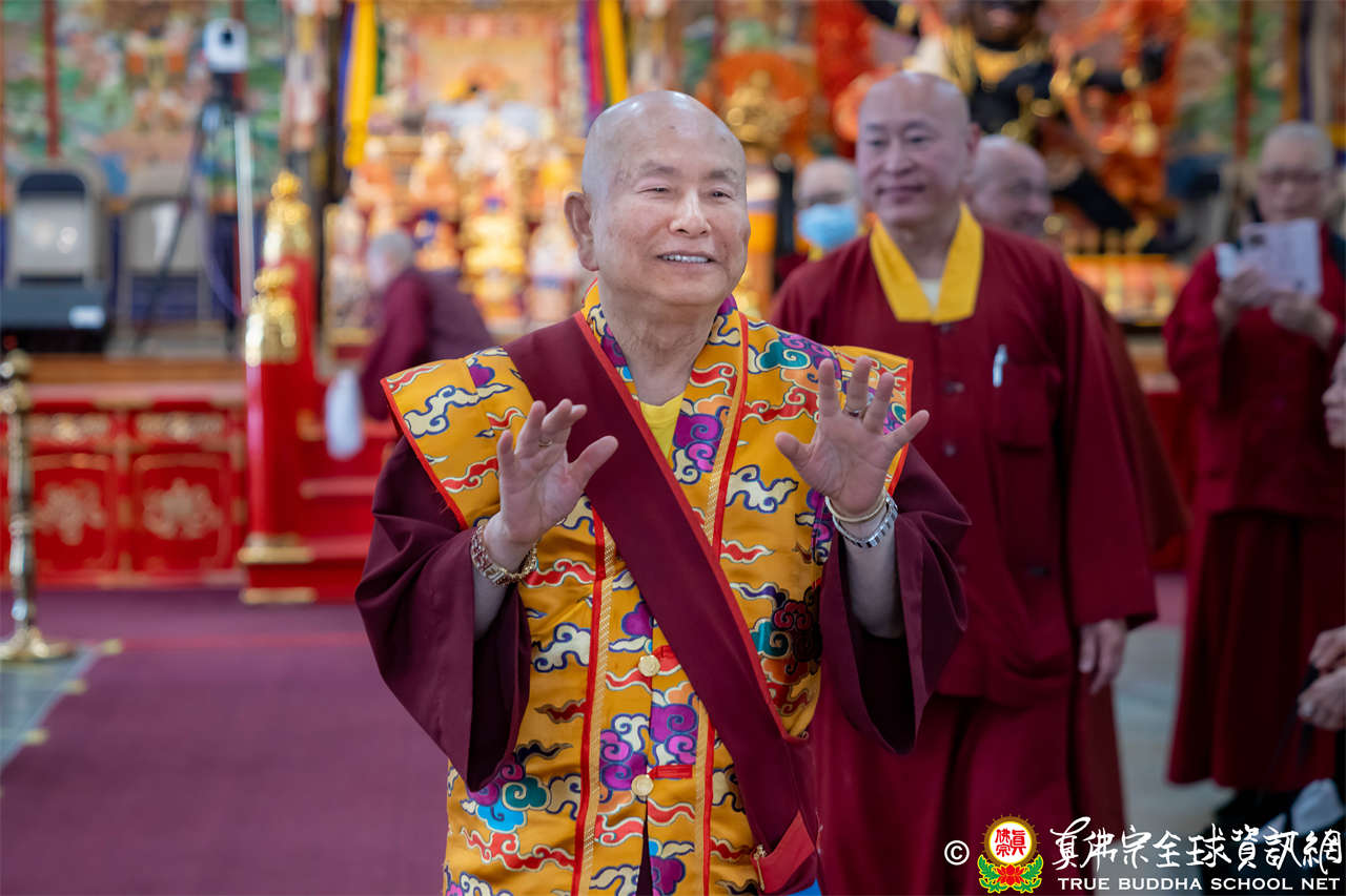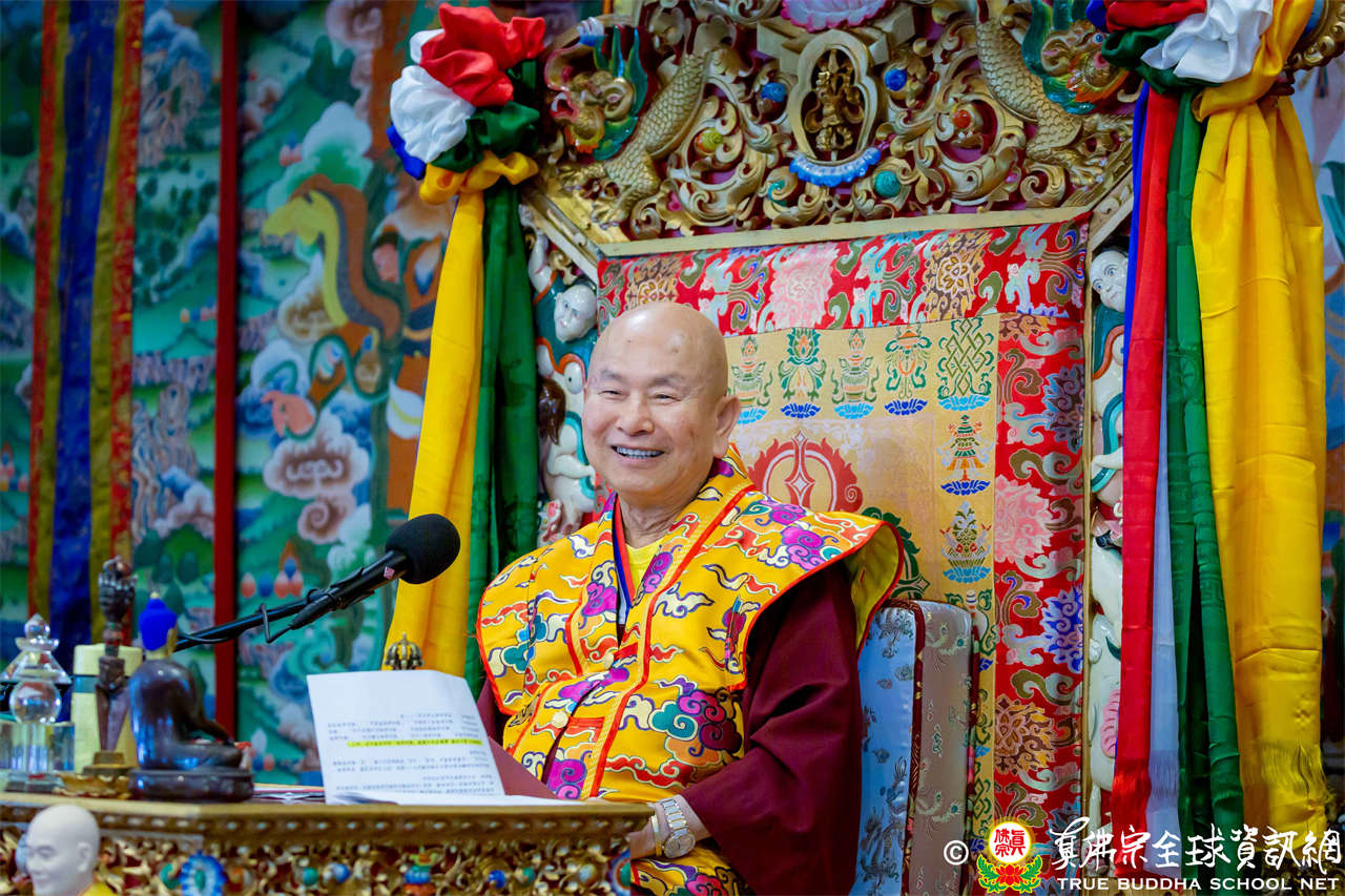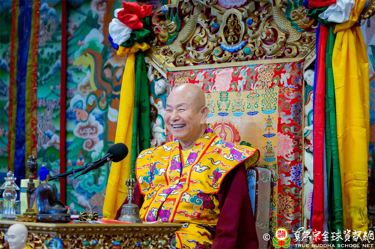 「現在八十多歲了,上法座睡覺,下法座也是睡覺。昨晚回家臉都沒洗,一閉眼天就亮了,許多事情都來不及做。」法王也分享自己皮膚濕疹(eczema)的療癒經過,感謝新加坡秀金師姐的協助,笑稱可能是瑤池金母或虛雲老和尚「派來的」:以前蜂窩性組織炎,是虛雲老和尚加持。這次濕疹沒看到他來,是不是改派這位師姐來?