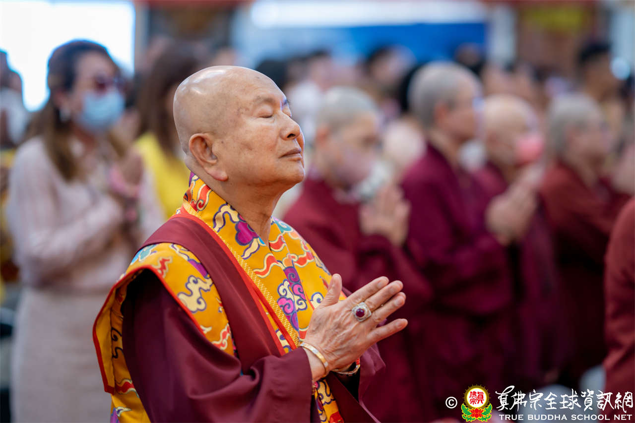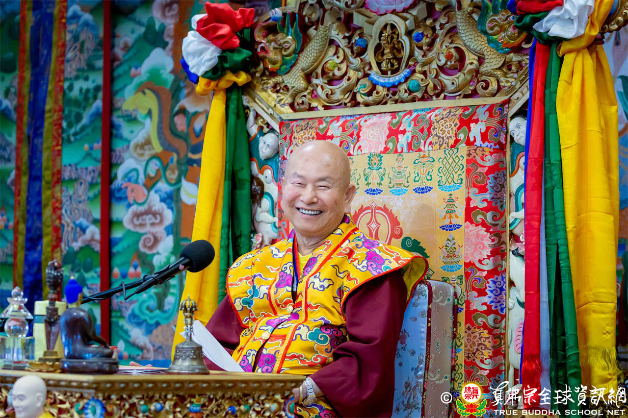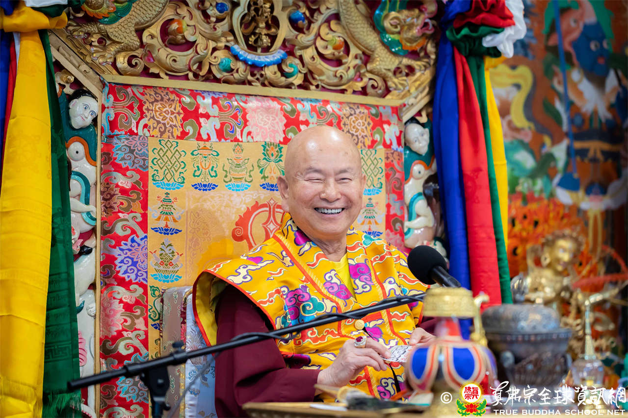 「現在八十多歲了,上法座睡覺,下法座也是睡覺。昨晚回家臉都沒洗,一閉眼天就亮了,許多事情都來不及做。」法王也分享自己皮膚濕疹(eczema)的療癒經過,感謝新加坡秀金師姐的協助,笑稱可能是瑤池金母或虛雲老和尚「派來的」:以前蜂窩性組織炎,是虛雲老和尚加持。這次濕疹沒看到他來,是不是改派這位師姐來?