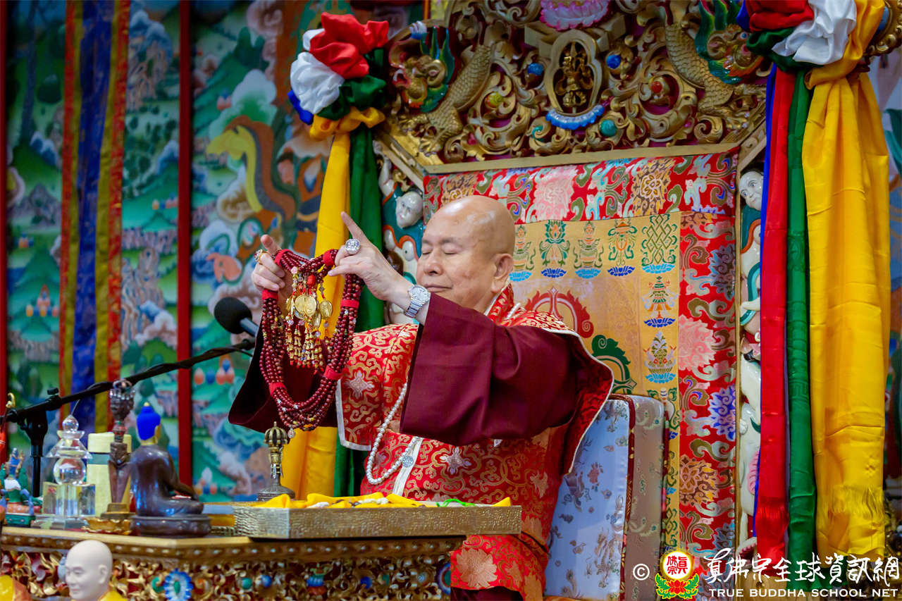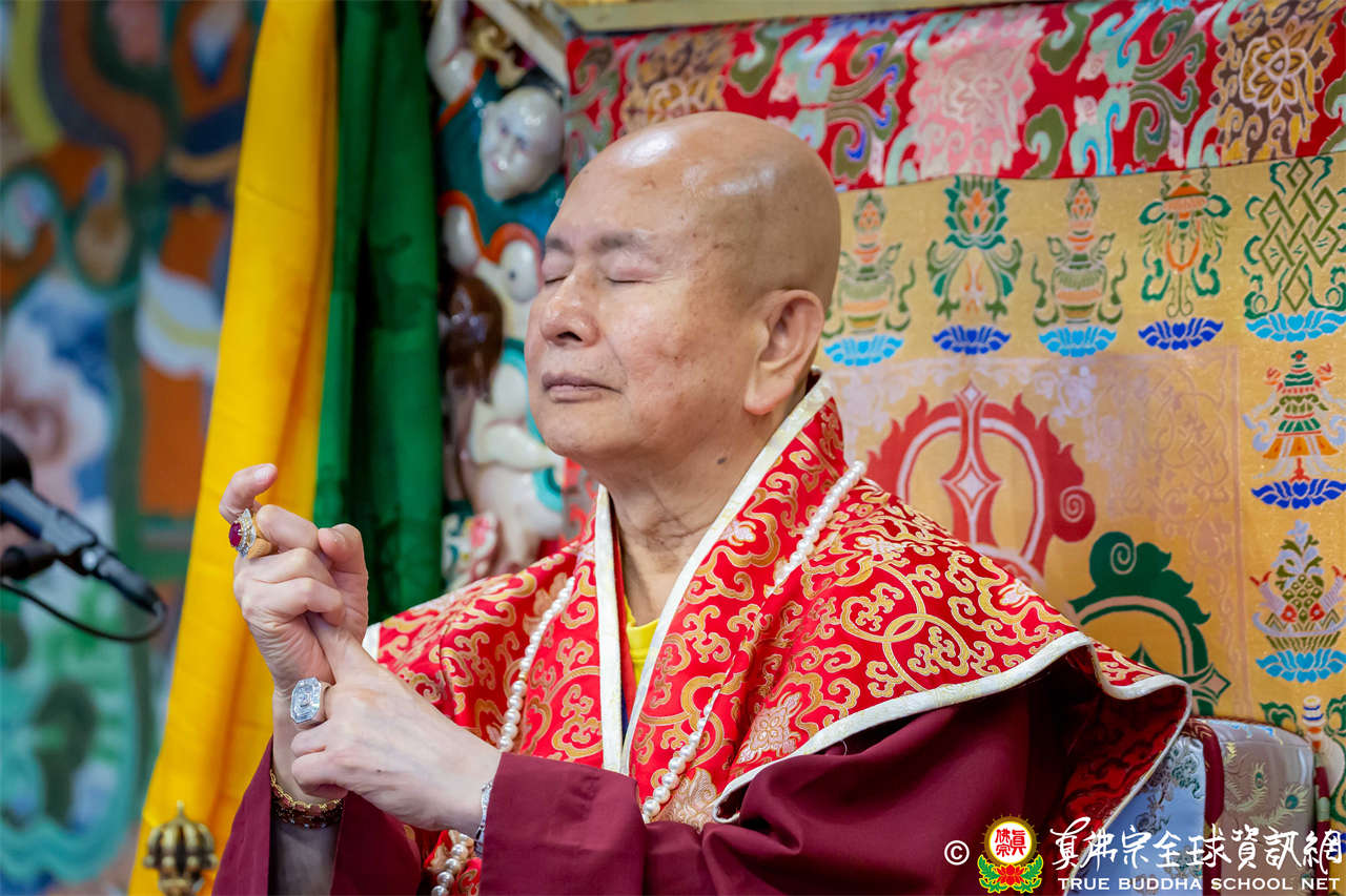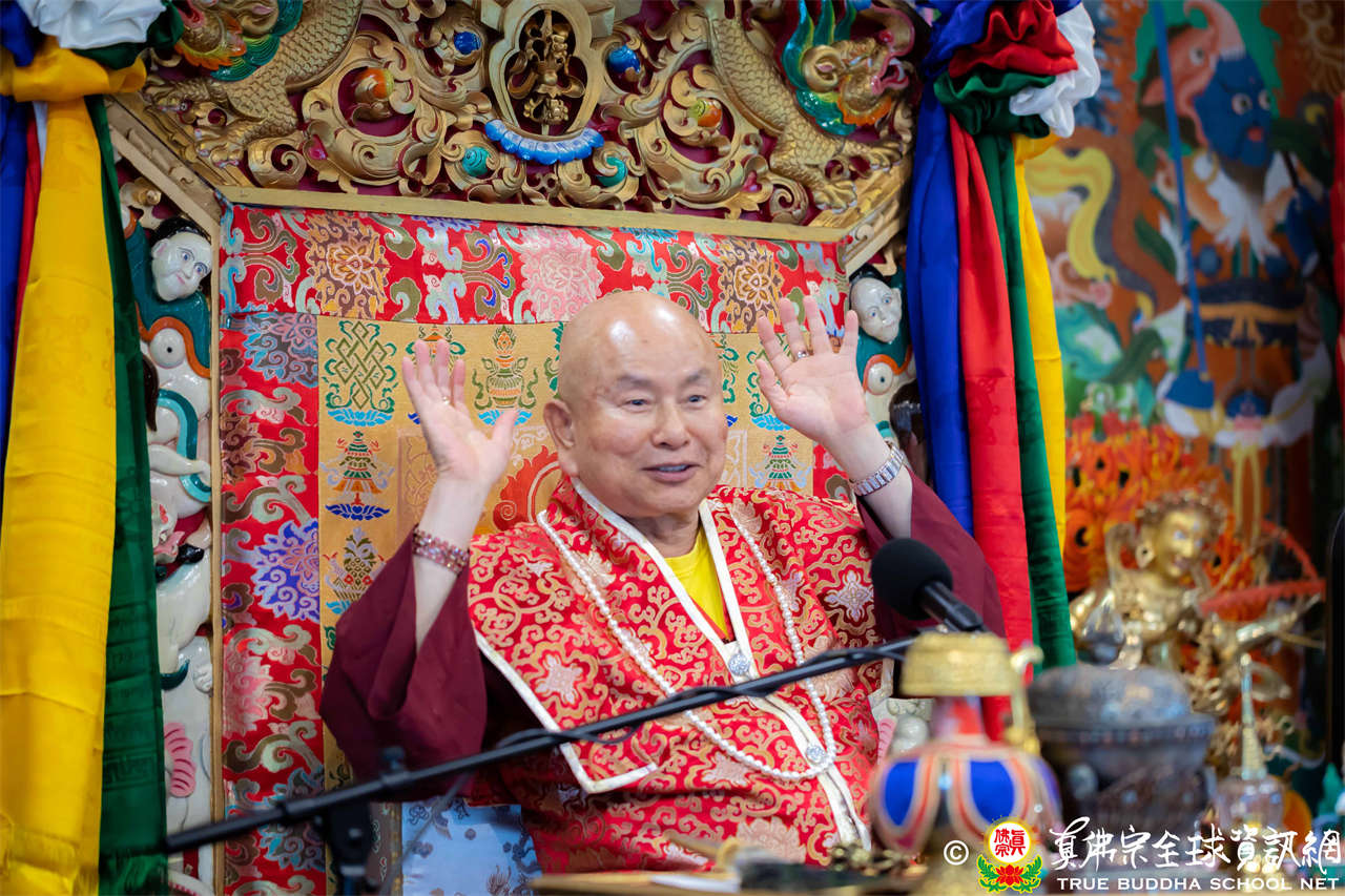 接著,法王繼續講解《大佛頂首楞嚴經》〈卷第二〉:「阿難白佛言:世尊,必妙覺性,非因非緣。世尊雲何常與比丘。宣說見性具四種緣。所謂因空因明,因心因眼,是義雲何。佛言:阿難。我說世間諸因緣相,非第一義。阿難。吾復問汝。諸世間人,說我能見。雲何名見。雲何不見。阿難言:世人因於日月燈光,見種種相,名之為見。若復無此三種光明,則不能見。」