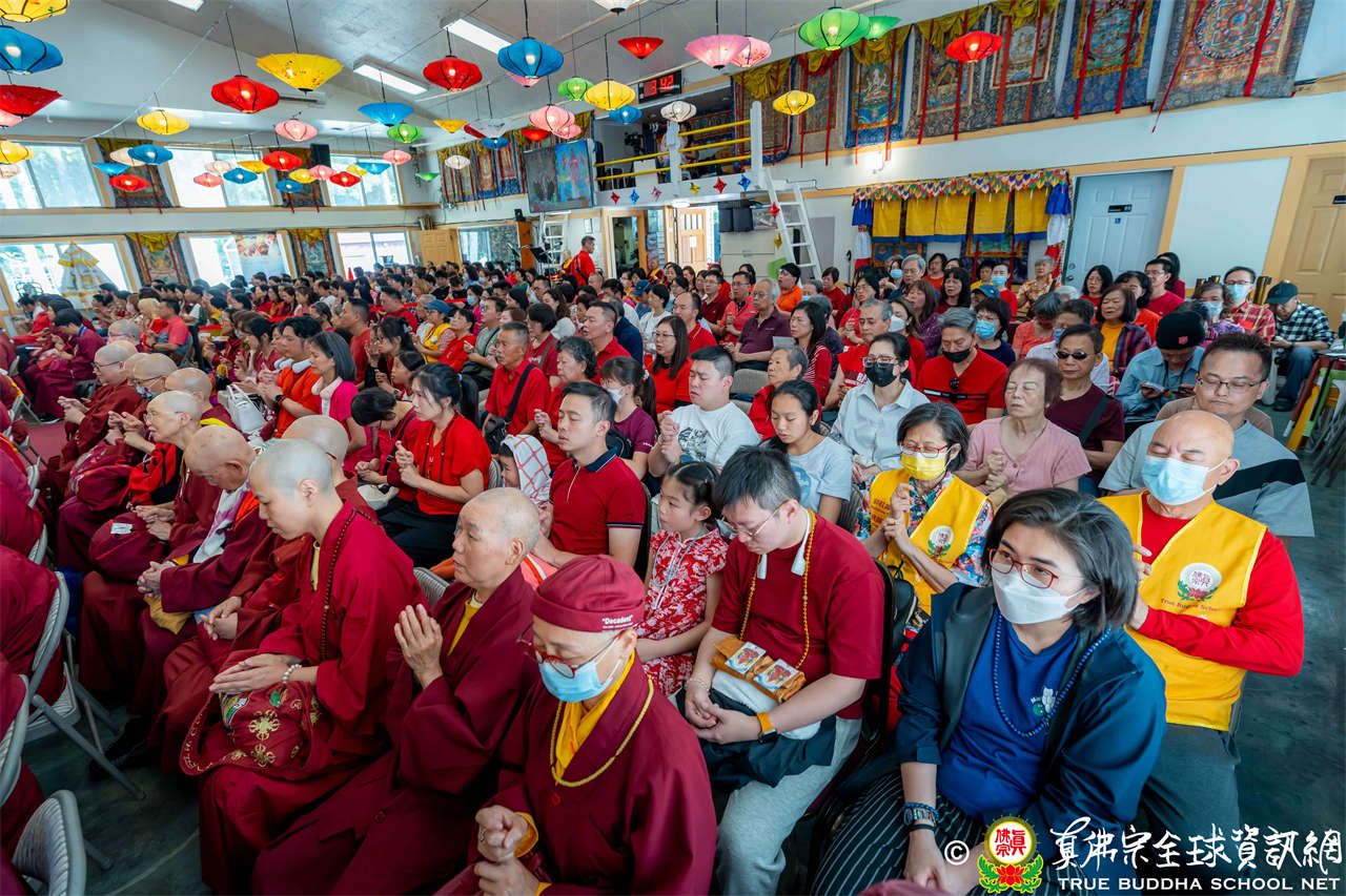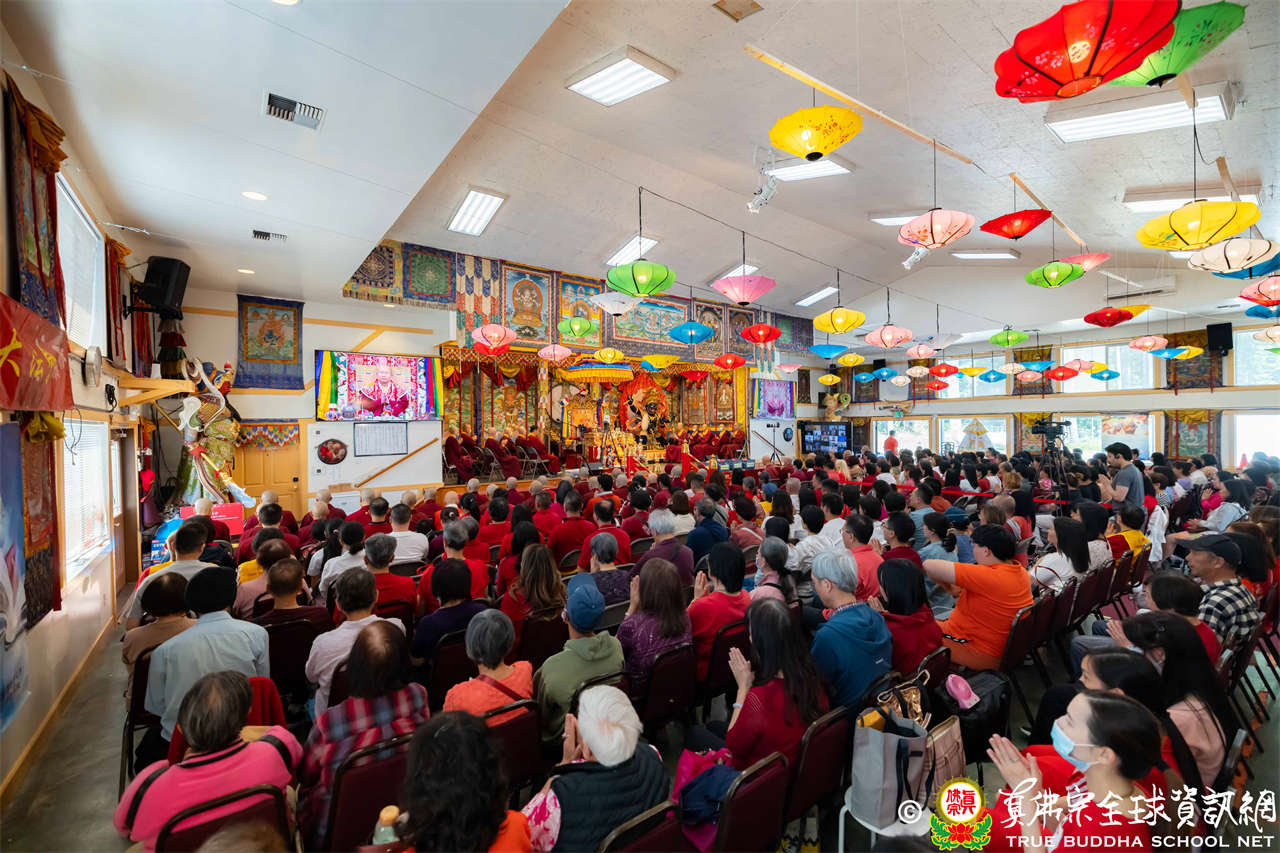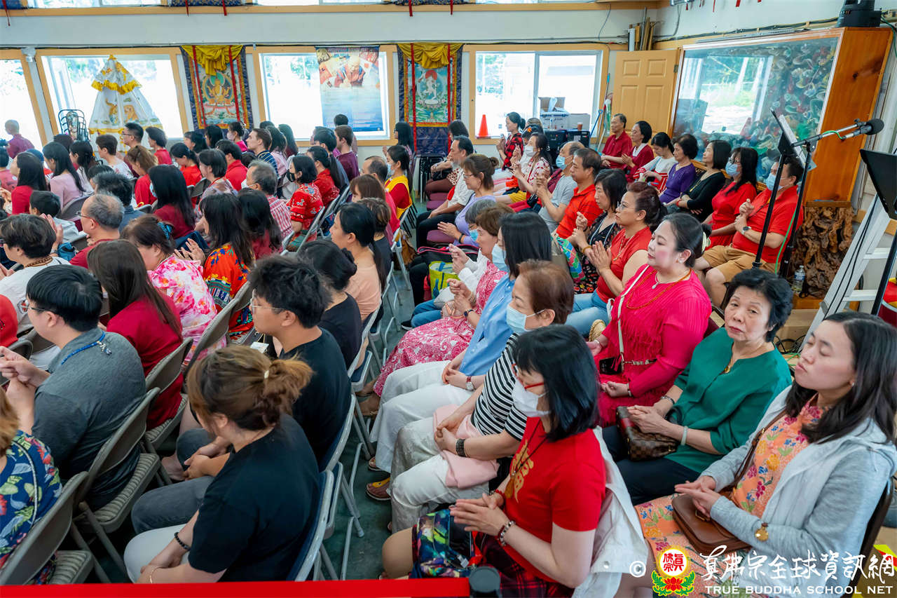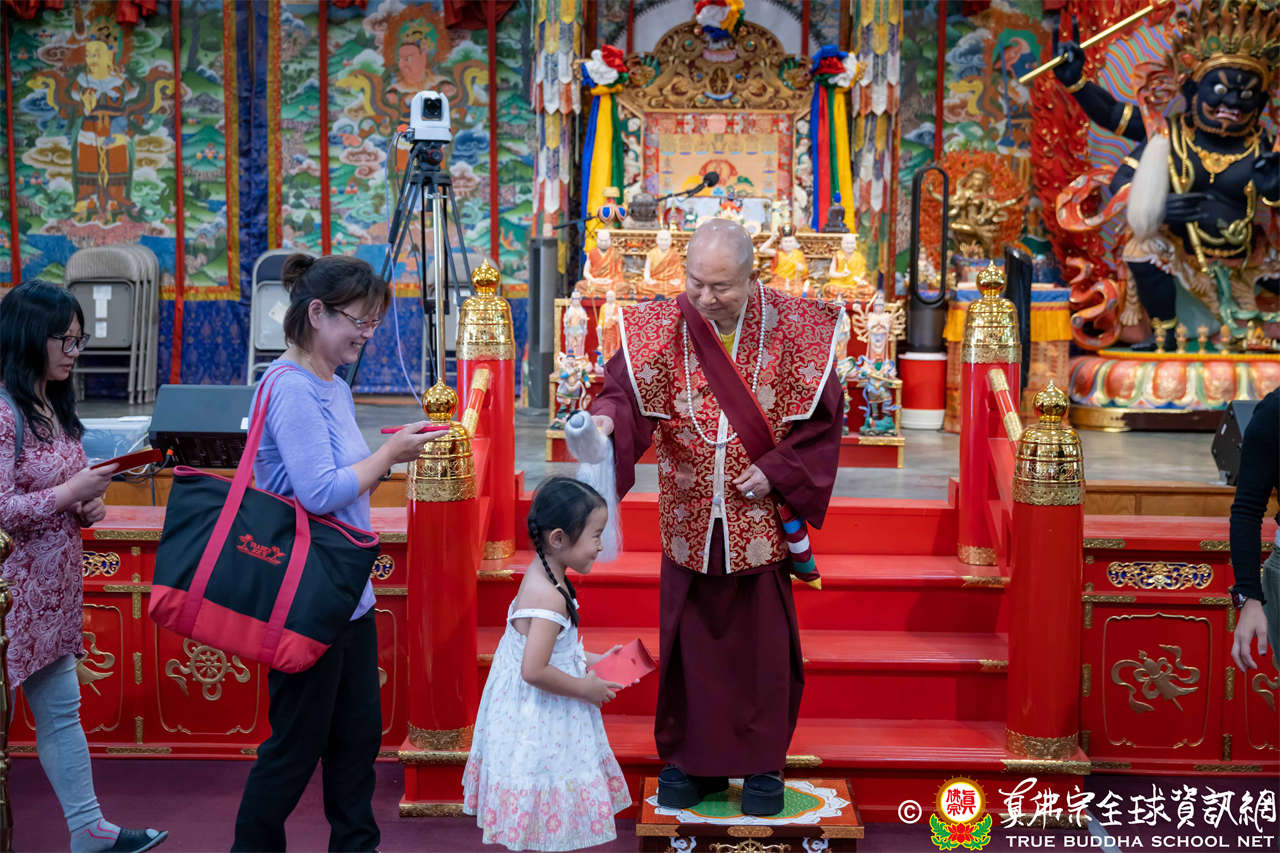 法王開示畢,衆人報以熱烈掌聲感謝。接著法王下座與綫上弟子互相問候,並為與會大衆賜授勾財天女法灌頂。法會至此圓滿結束。
