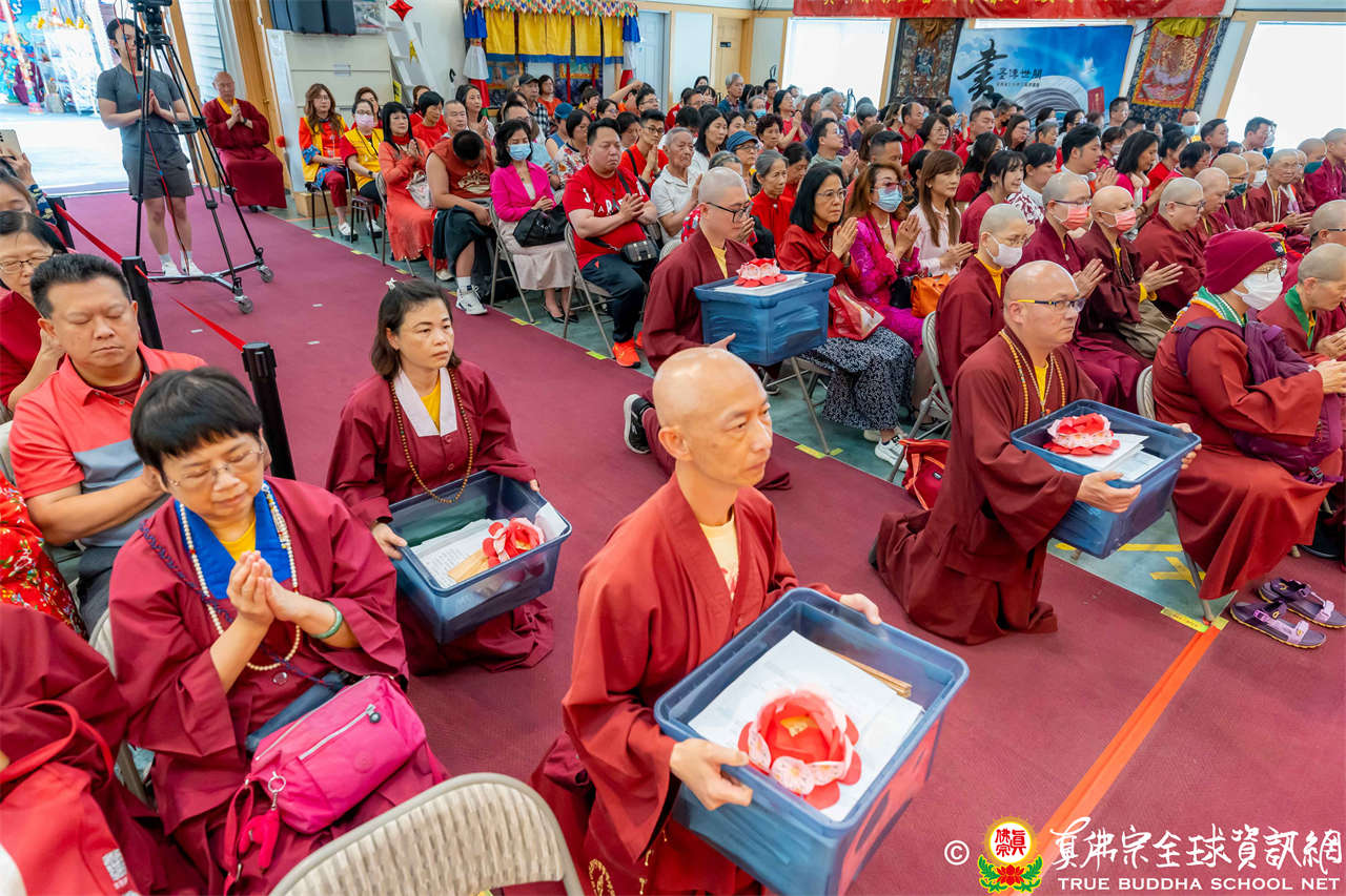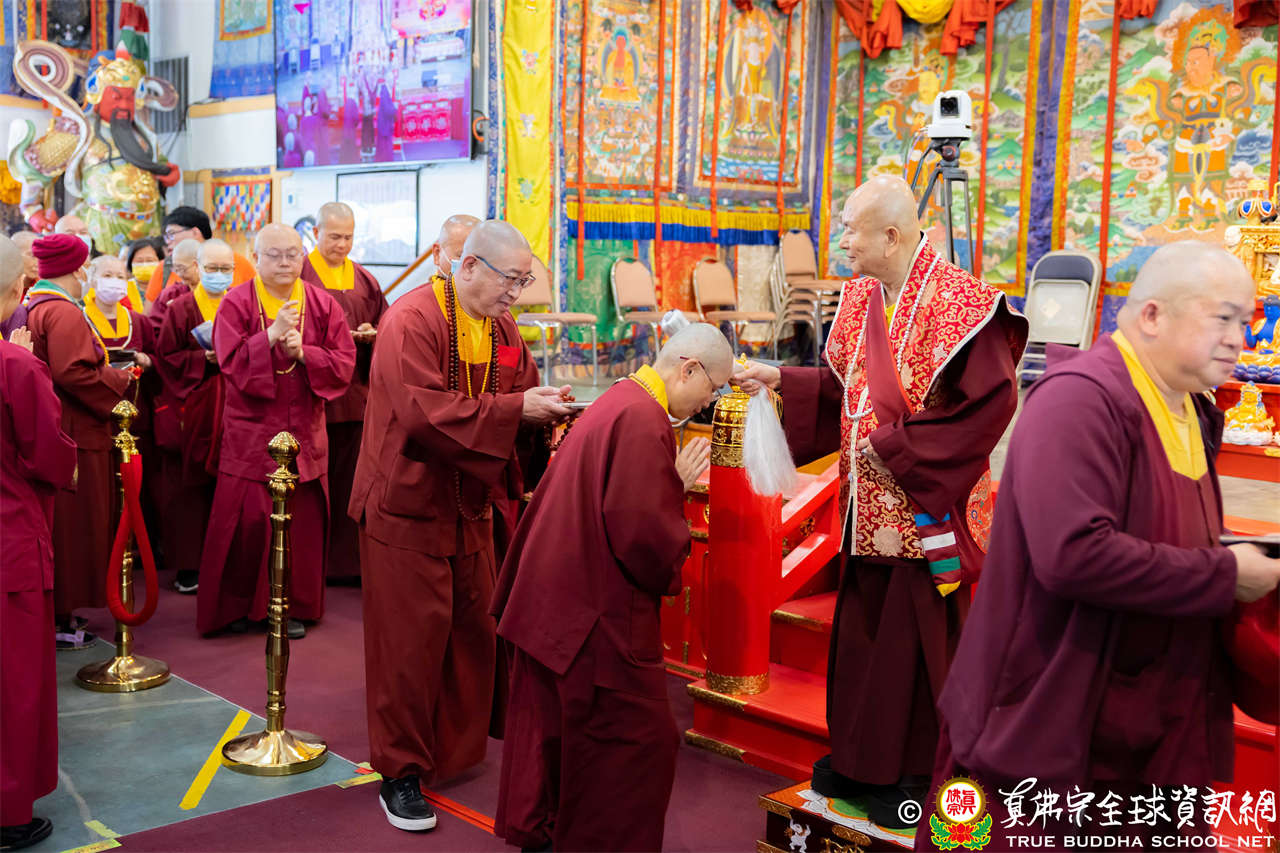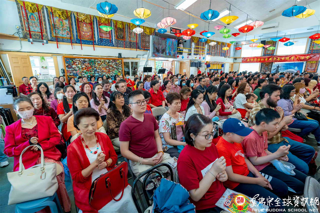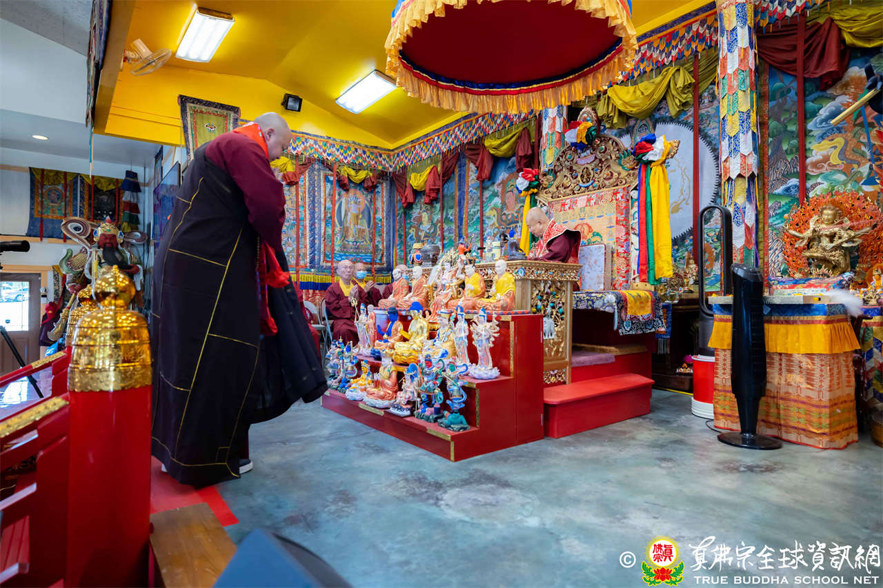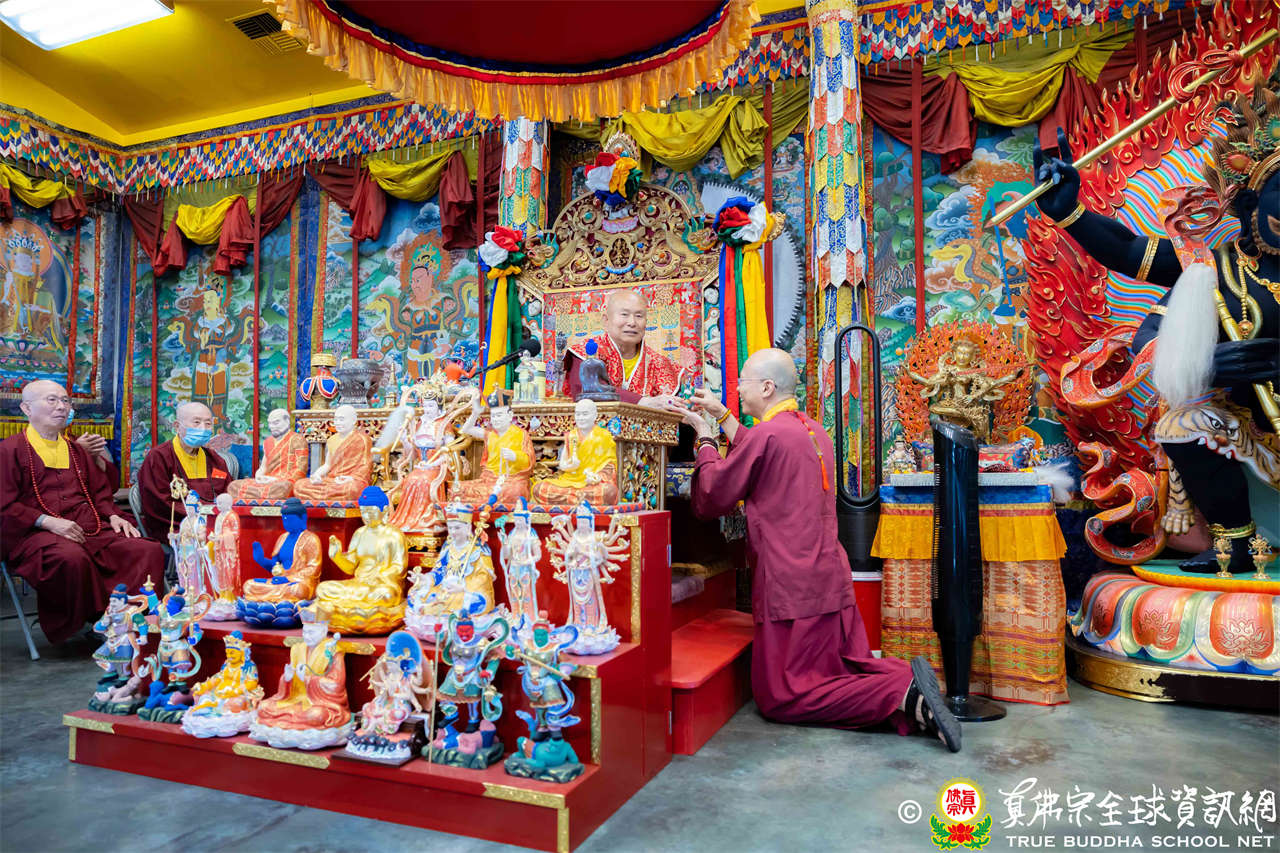 法王開示畢,衆人報以熱烈掌聲感謝。接著法王下座與綫上弟子互相問候,並為與會大衆賜授勾財天女法灌頂。法會至此圓滿結束。