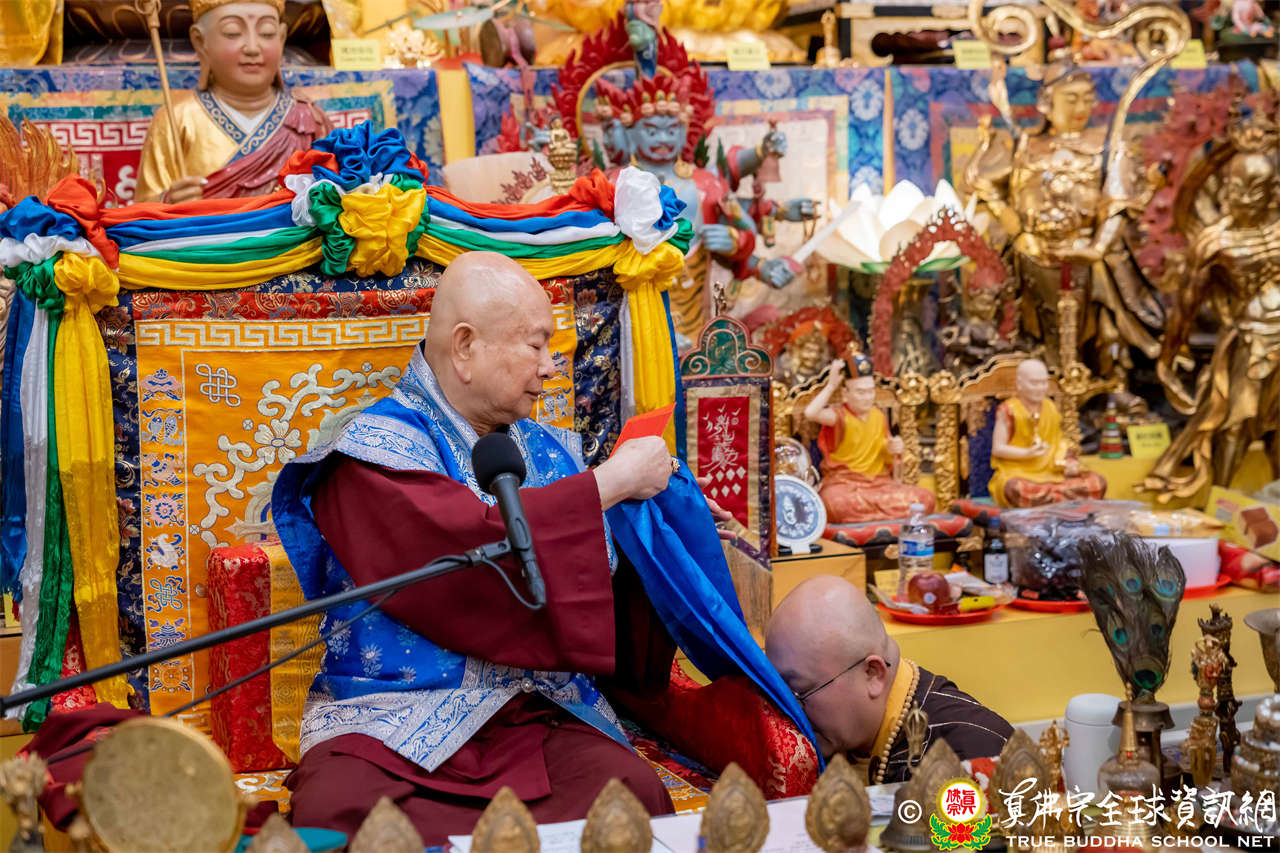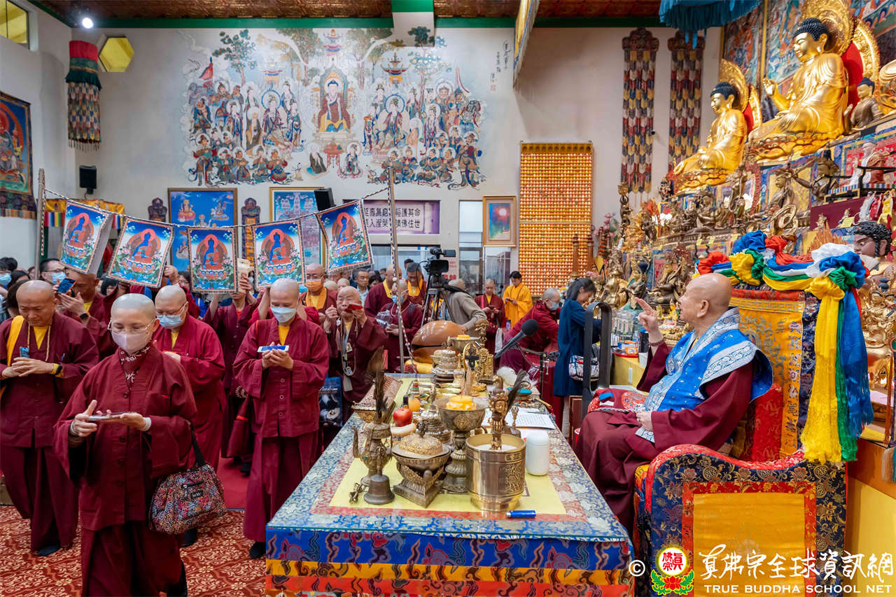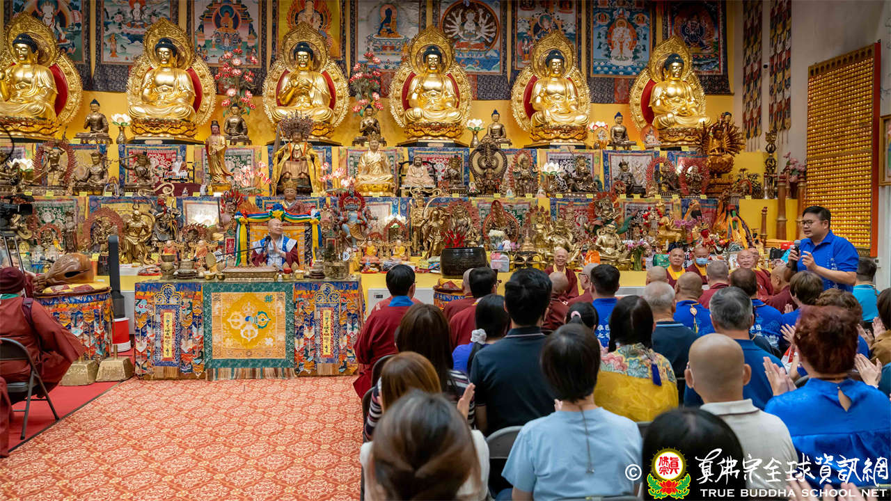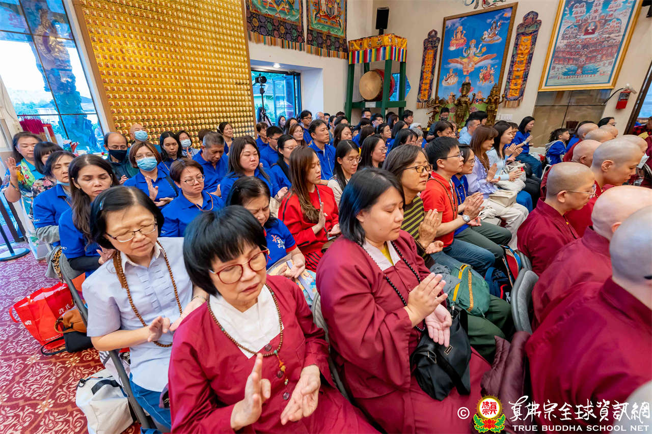聖尊精闢充滿法味的講經開示結束後,慈悲加持大悲咒水,及為佛像開光。聖尊亦加持主尊灌頂幡,為求皈依者賜授皈依灌頂並為與會大眾加持。