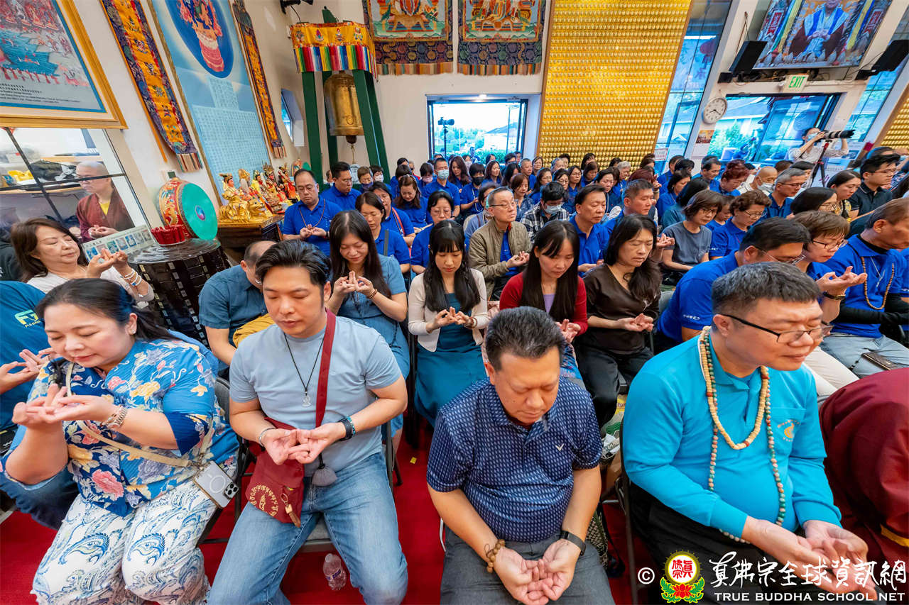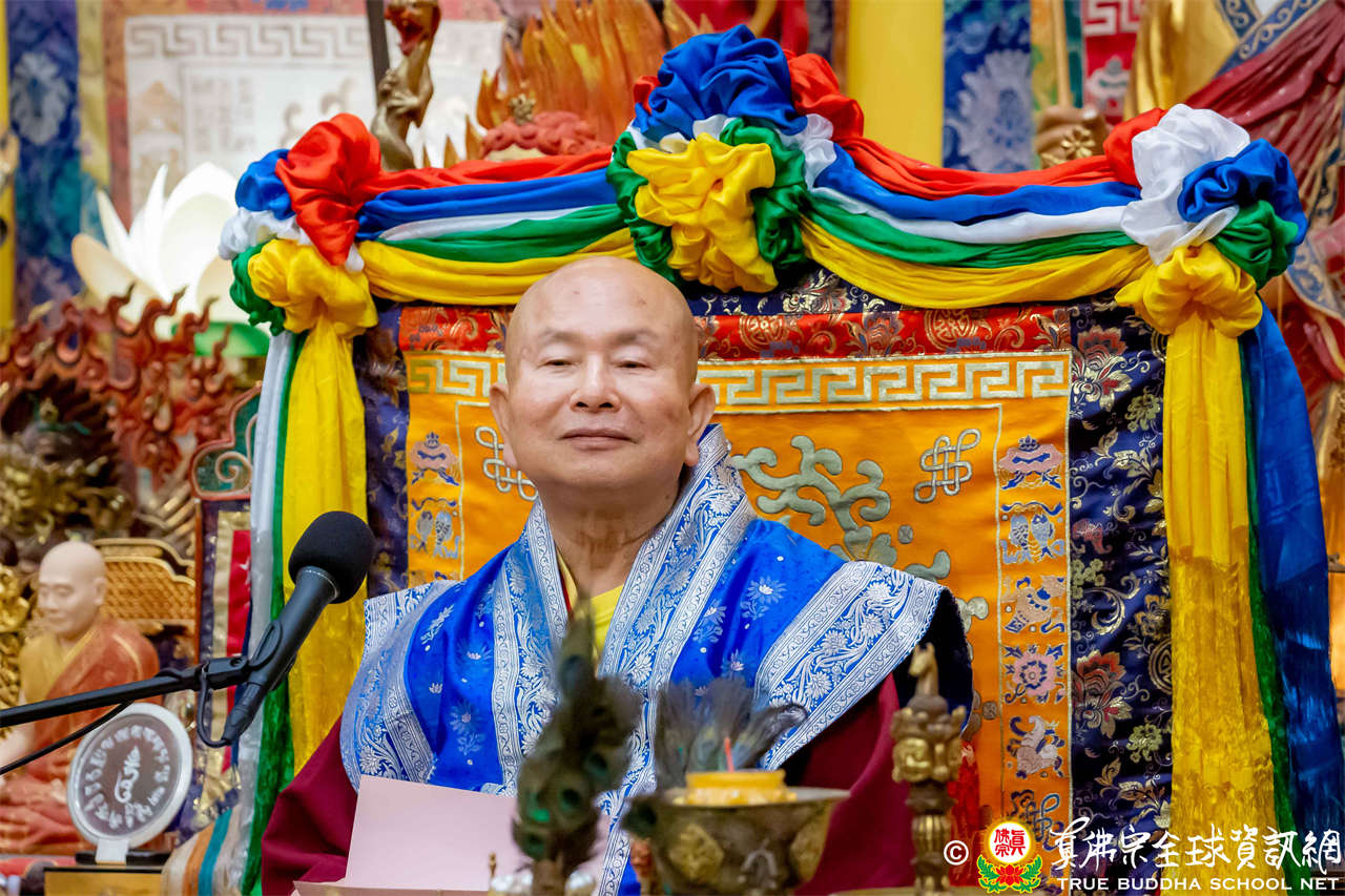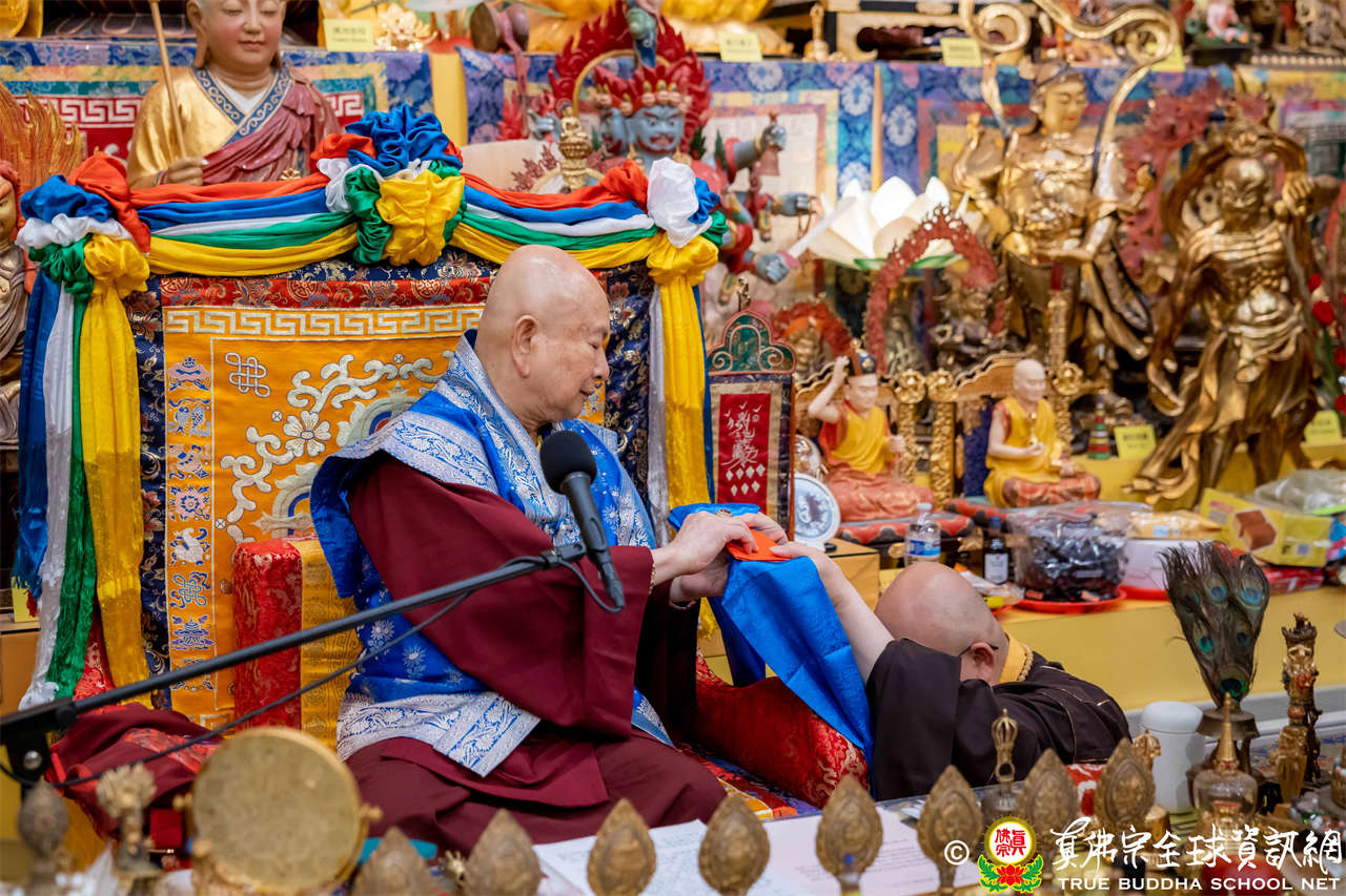 聖尊精闢充滿法味的講經開示結束後,慈悲加持大悲咒水,及為佛像開光。聖尊亦加持主尊灌頂幡,為求皈依者賜授皈依灌頂並為與會大眾加持。
