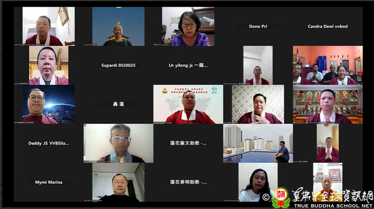 經過近5小時的交流,已近深夜。由印尼真佛宗僧伽團主席蓮飛上師致感謝詞說道:感謝會長各位處長講解釋疑,本次不僅是全印尼道場負責人、弘法人員線上線下參加交流會,現場還有準講師準助教,真的是名符其實的交流,心與心的交流。