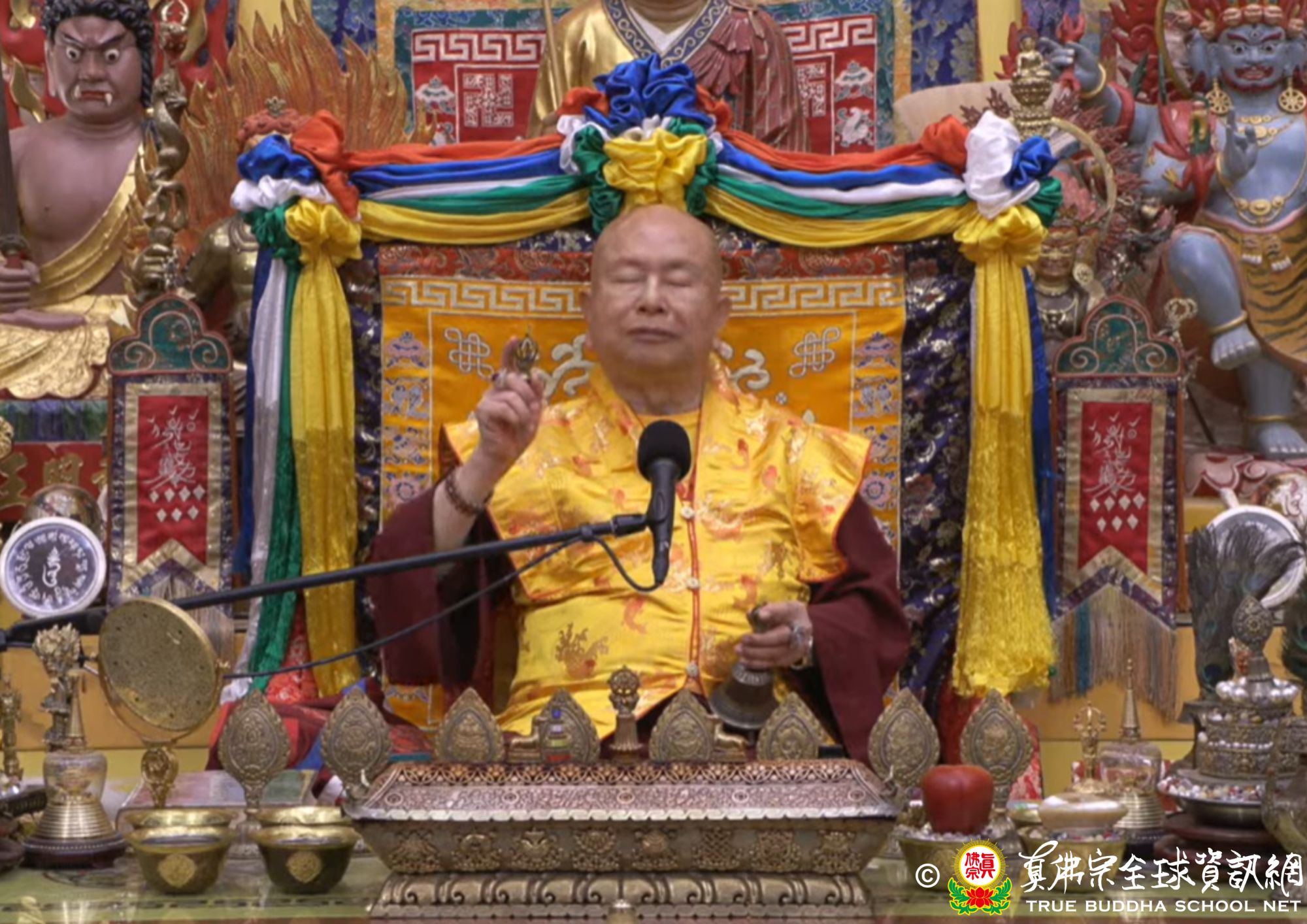 今天修黃財神本尊法。聖尊說自己之前在黃財神的法會中一樣腳的大拇指腫痛,便也同樣祈求五方佛的加持腳能康復,隔了一個晚上腳便康復了。