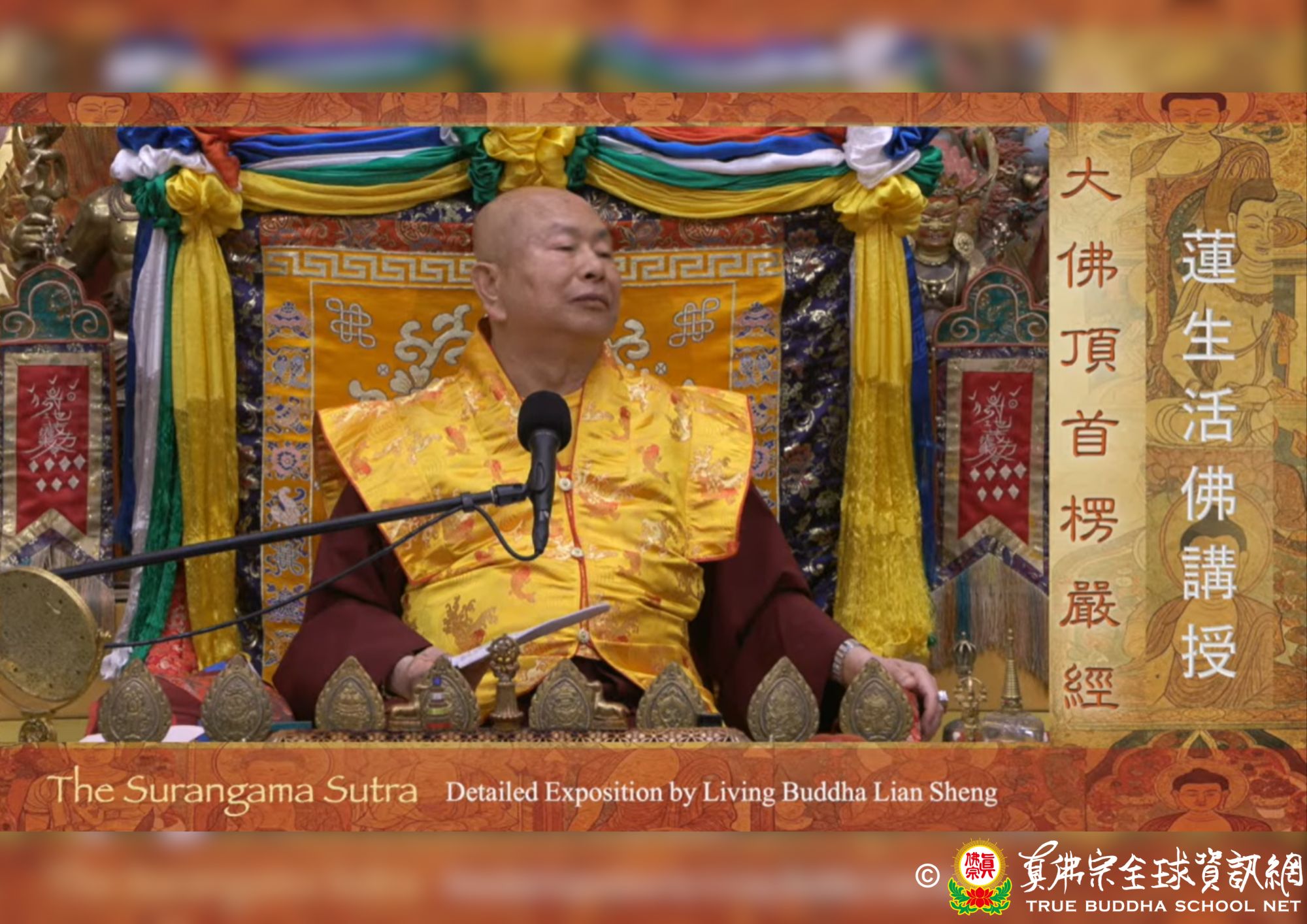 聖尊解釋經義:眼睛看到光明時就看不到黑暗。在黑暗中也是如此。前放有墻壁時自然就看不到外面的景色。但是「佛性」、「妙明真心」與眼睛毫無幹涉。所謂真正的「妙明真心」本身不是因緣也不是自然性。