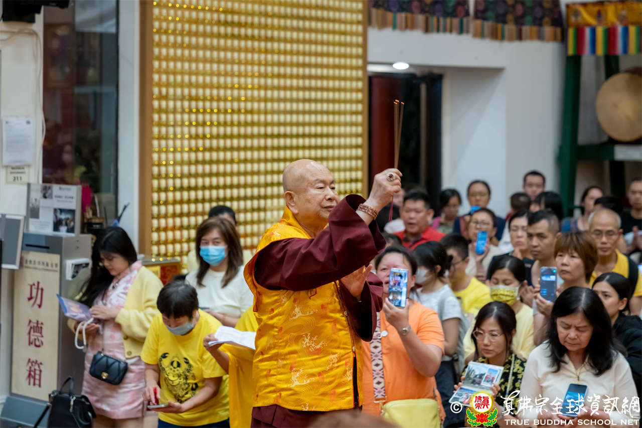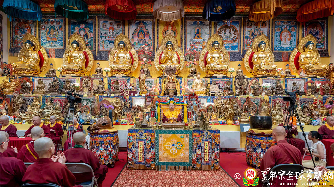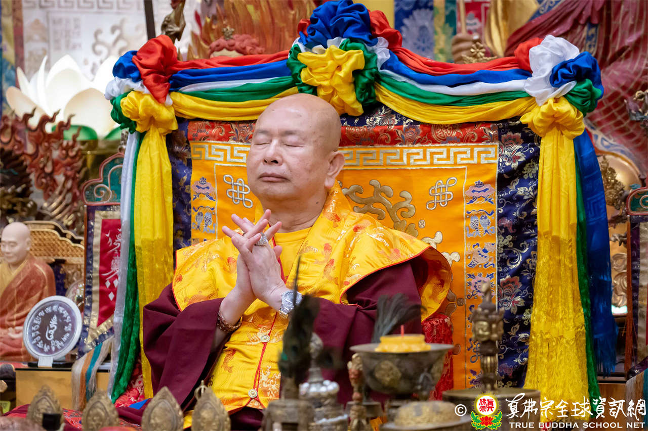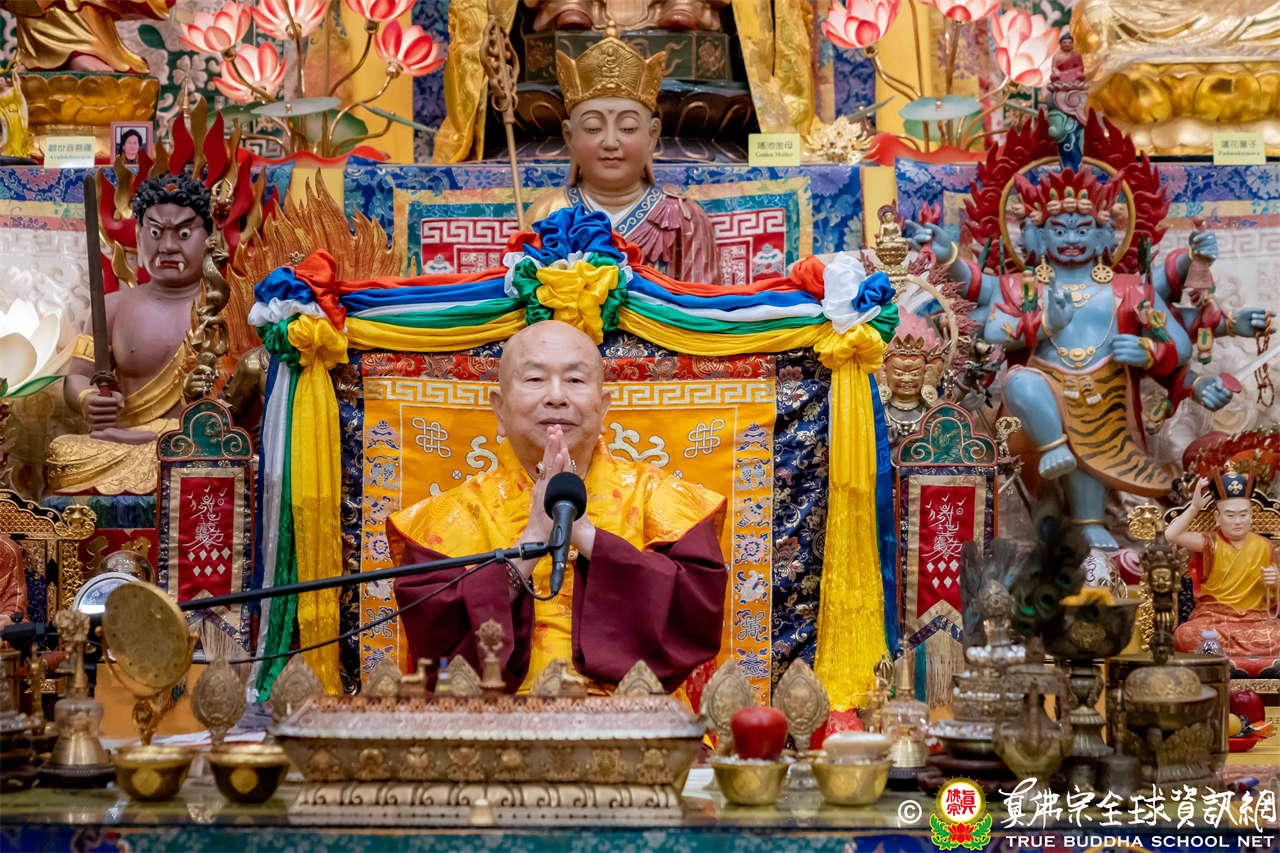 晴空萬里、豔陽高照的西城,雖然已過立秋,但天氣仍猶如弟子們朝聖的心情般熱情如火。全體弟子在大雄寶殿內恭迎聖尊蓮生活佛盧勝彥親臨主壇今晚的黃財神本尊法同修。