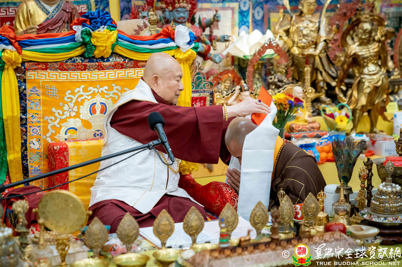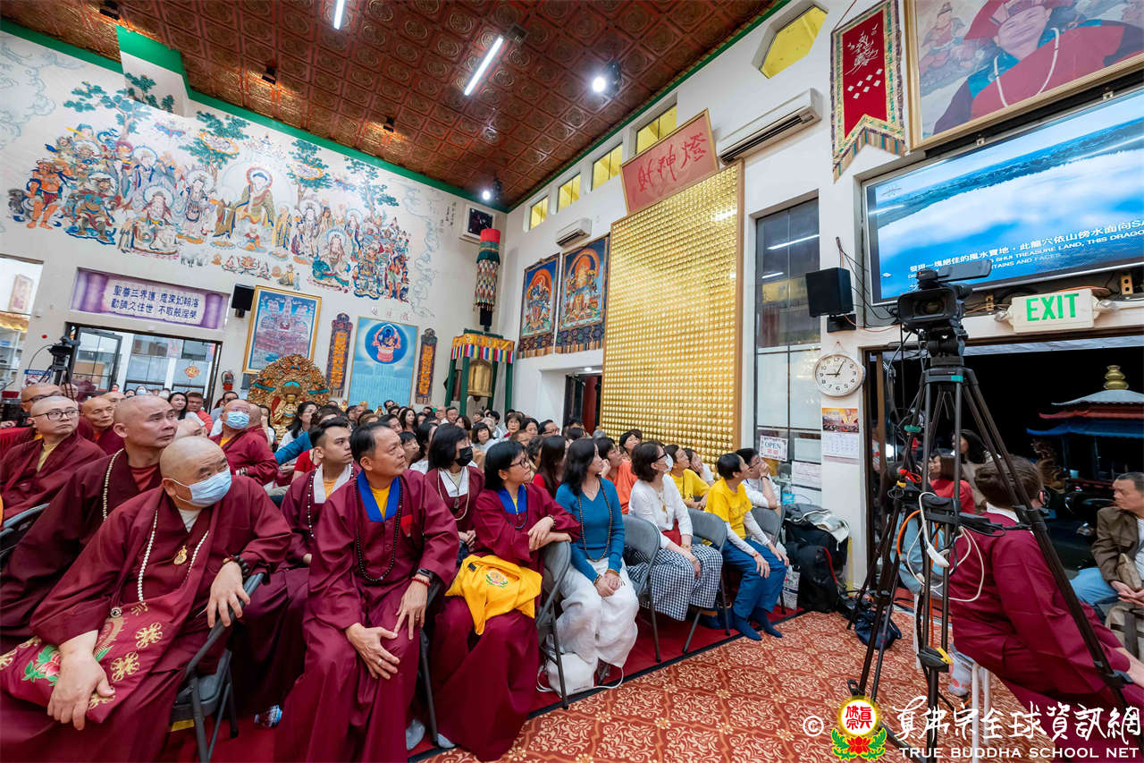 大家在莊嚴的蓮花童子心咒聲中,迎來了我們的根本傳承上師聖尊蓮生活佛盧勝彥。聖尊步履安詳,慈視大眾,進入壇場,昇於法座上,主持蓮花童子本尊法同修。