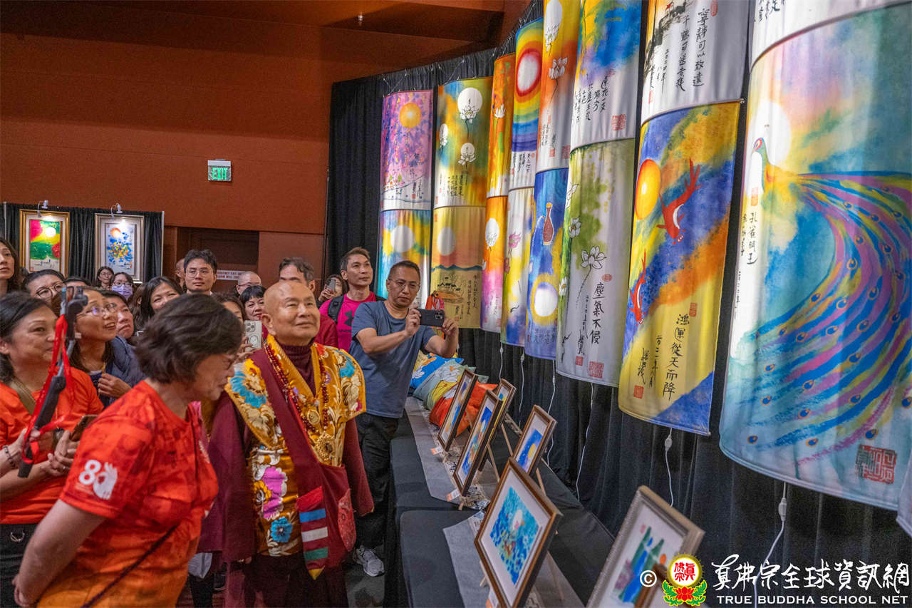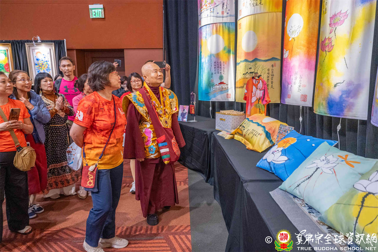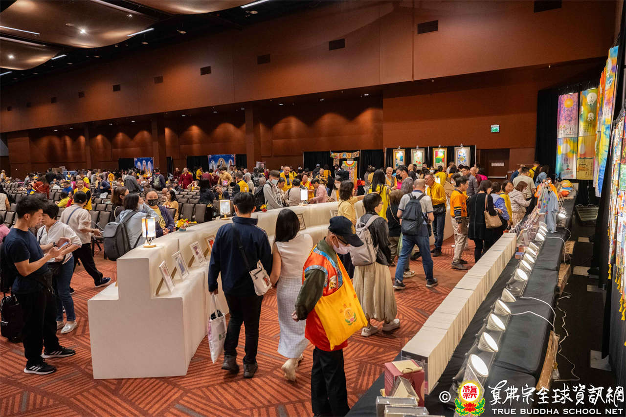 法會前夕,聖尊蓮生活佛親臨會場,加持往生位、延生位,並參觀由真佛般若藏設置之「造化之通」書畫展,其中陳列聖尊全部著作文集、多幅真跡畫作,及許多衍生的精美文創商品。文集共306冊,依序排放猶如蜿蜒河流,而畫作蘊含深邃的禪意,令人深受啟發。