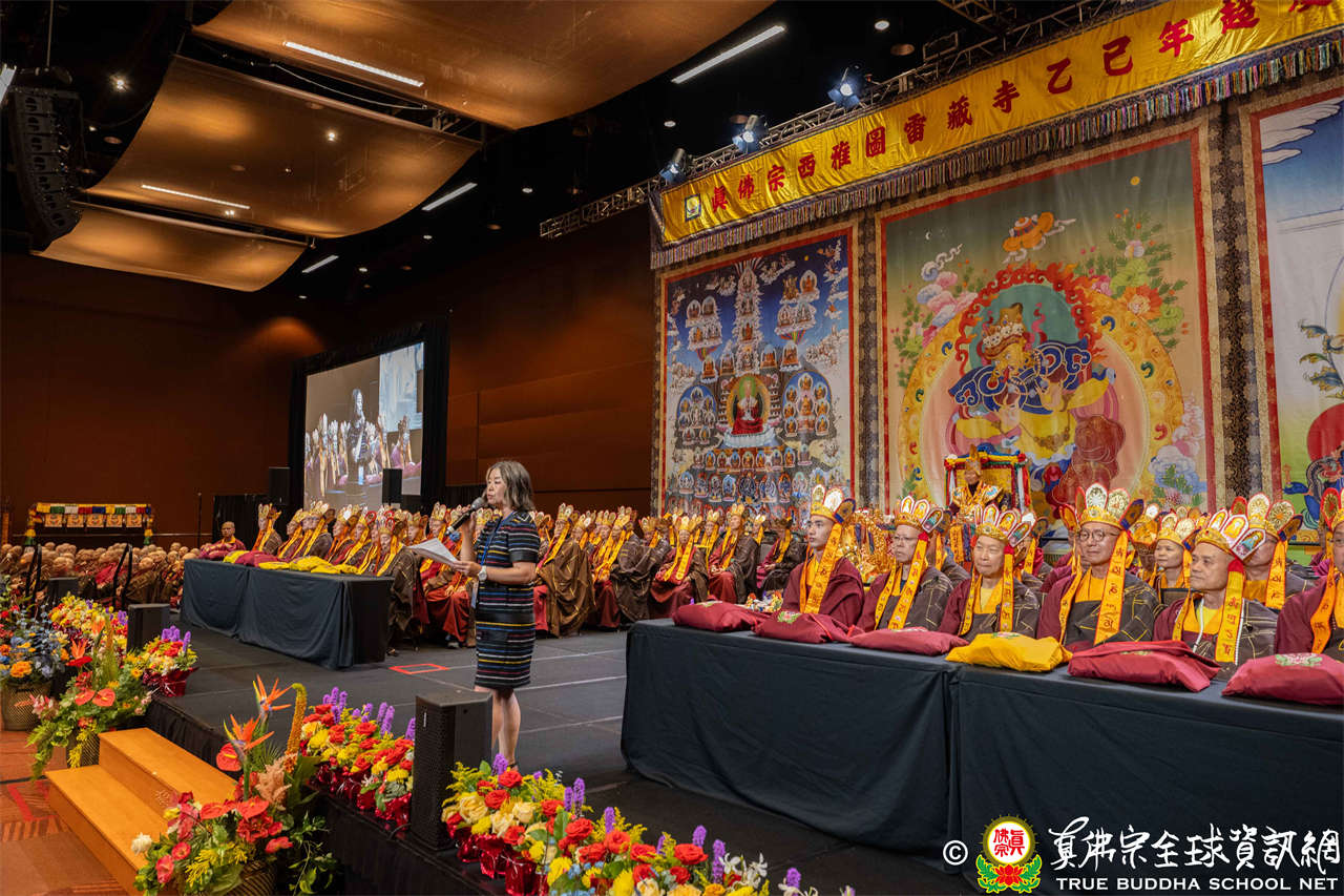 華盛頓州參議員Javier Valdez與眾議員Janice Zahn相繼致詞,熱情歡迎大眾前來。Bellevue市議員Conrad Lee 致詞時,首先恭喜西雅圖雷藏寺建寺40周年,弘揚法務,功德無量,並感謝盧師尊40年來不顧生命,以一切方便法門度眾生,令人佩服!盧師尊以大慈大悲主持這場消災祈福大法會,一定會給苦難的眾生普降甘霖,也會為全世界帶來幸福。