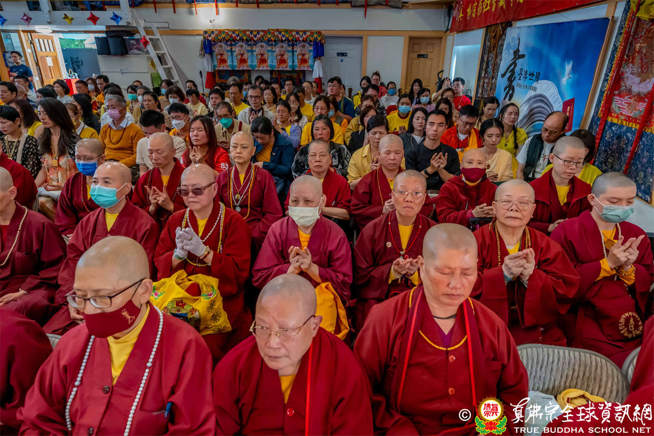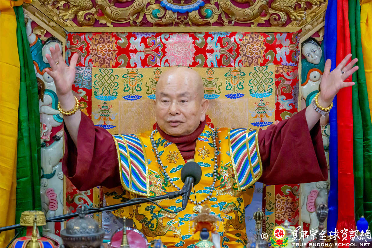 祂特別提及一則越南信眾的案例:當地某河因死者眾多、冤魂聚集,曾邀請各宗派法師超度卻屢屢無效。法王指出,真佛宗若前往必定能成,關鍵在於「南摩三十六萬億一十一萬九千五百同名同號阿彌陀佛」這句名號的加持力。「阿彌陀佛救度的力量遠超冤魂數量,一念即可全數超拔。」