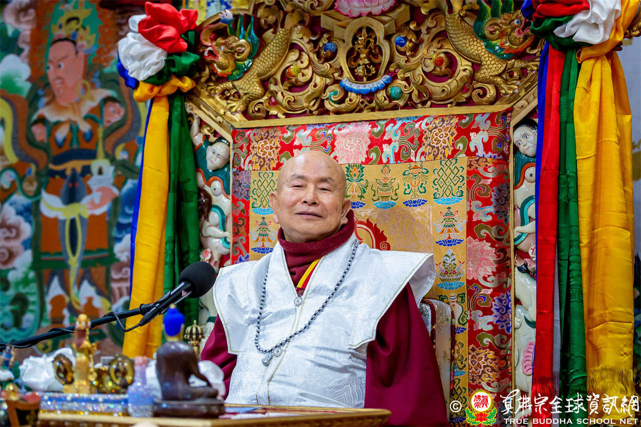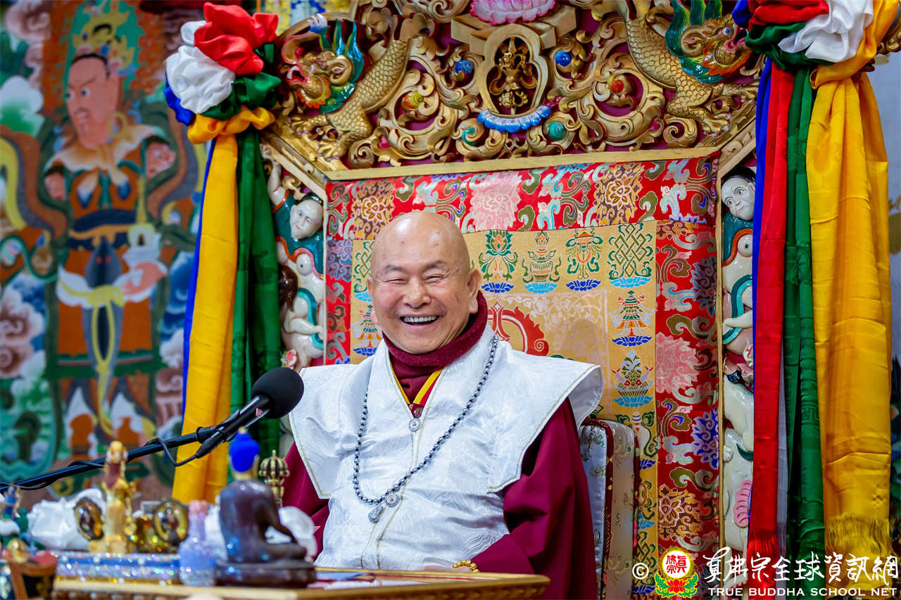 接著,法王繼續講解《大佛頂首楞嚴經》〈卷第三〉:「阿難。汝常意中。所緣善惡無記三性,生成法則。此法為復即心所生,為當離心,別有方所。阿難。若即心者,法則非塵。非心所緣,云何成處。若離於心,別有方所,則法自性,為知非知。知則名心,異汝非塵,同他心量。即汝即心,云何汝心,更二於汝。若非知者,此塵既非色聲香味,離合冷煖,及虛空相,當於何在。今於色空,都無表示,不應人間,更有空外。心非所緣,處從誰立。是故當知,法則與心,俱無處所。則意與法,二俱虛妄。本非因緣,非自然性。」