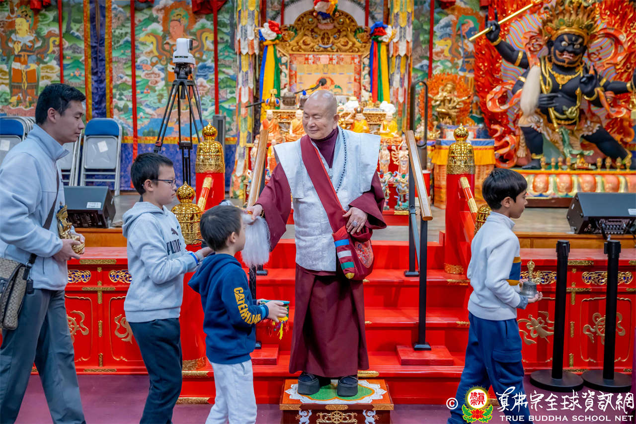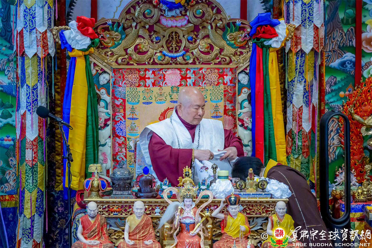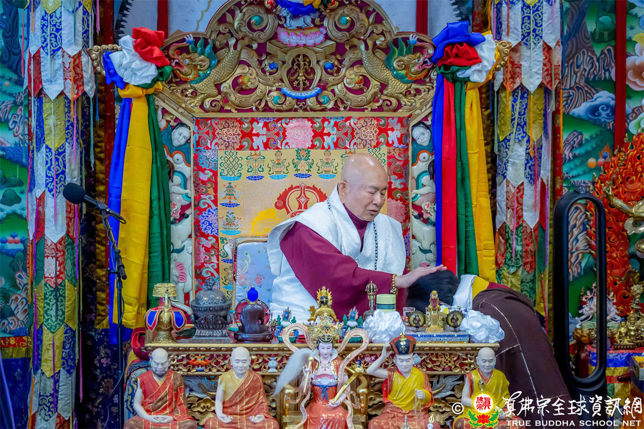 結束精彩的法語開示後,法王慈悲賜授現場與會大眾「大白蓮花童子法」灌頂,法會圓滿落幕。