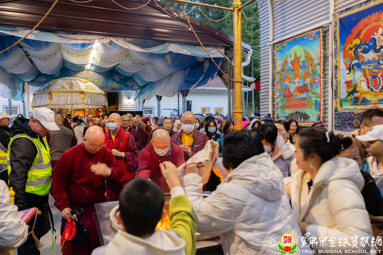 2025年10月12日,彩虹雷藏寺恭請蓮生法王主壇「蓮花童子」護摩法會。法會進行至供品下爐、演化「息增懷誅」手印之際,法王忽停咒音,慈示感應無數幽靈祈求超度,遂即開啟「千艘法船」,為主祈者祖先及一切有緣幽冥眾祈願俱登西方極樂。全場肅然感動,掌聲不息。
