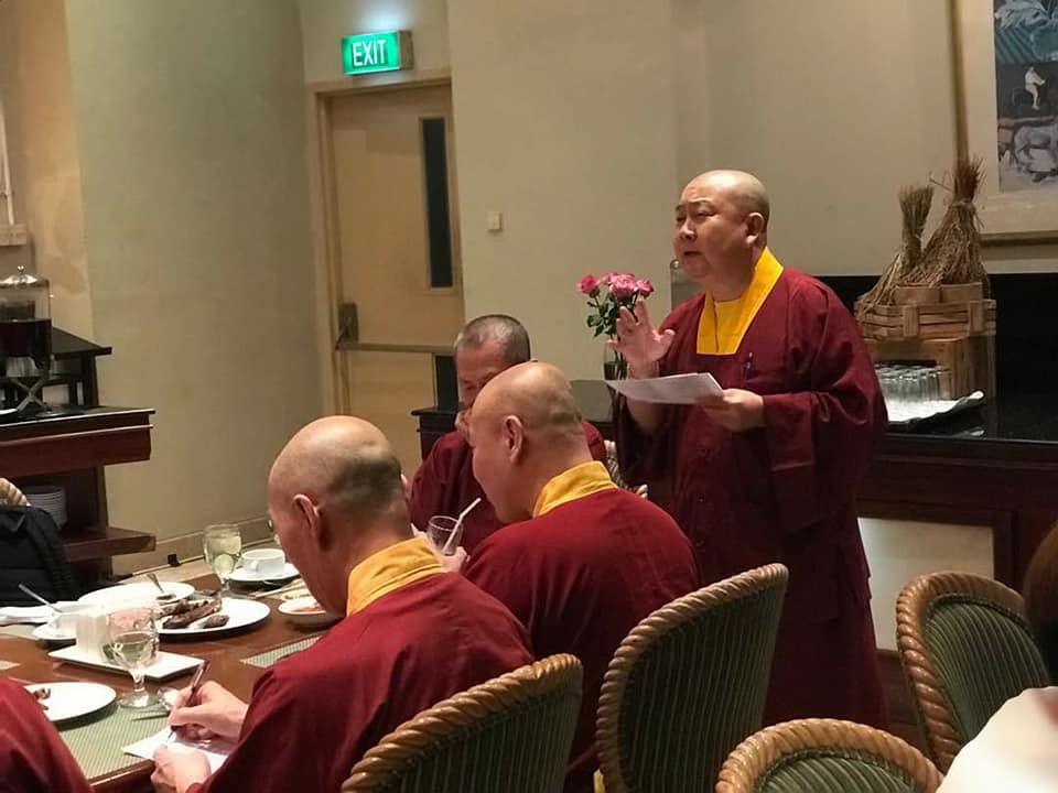 餐後蓮飛上師代表兩大協辦單位歡迎宗委會處長們之蒞臨,並簡報23日至25日之行程。