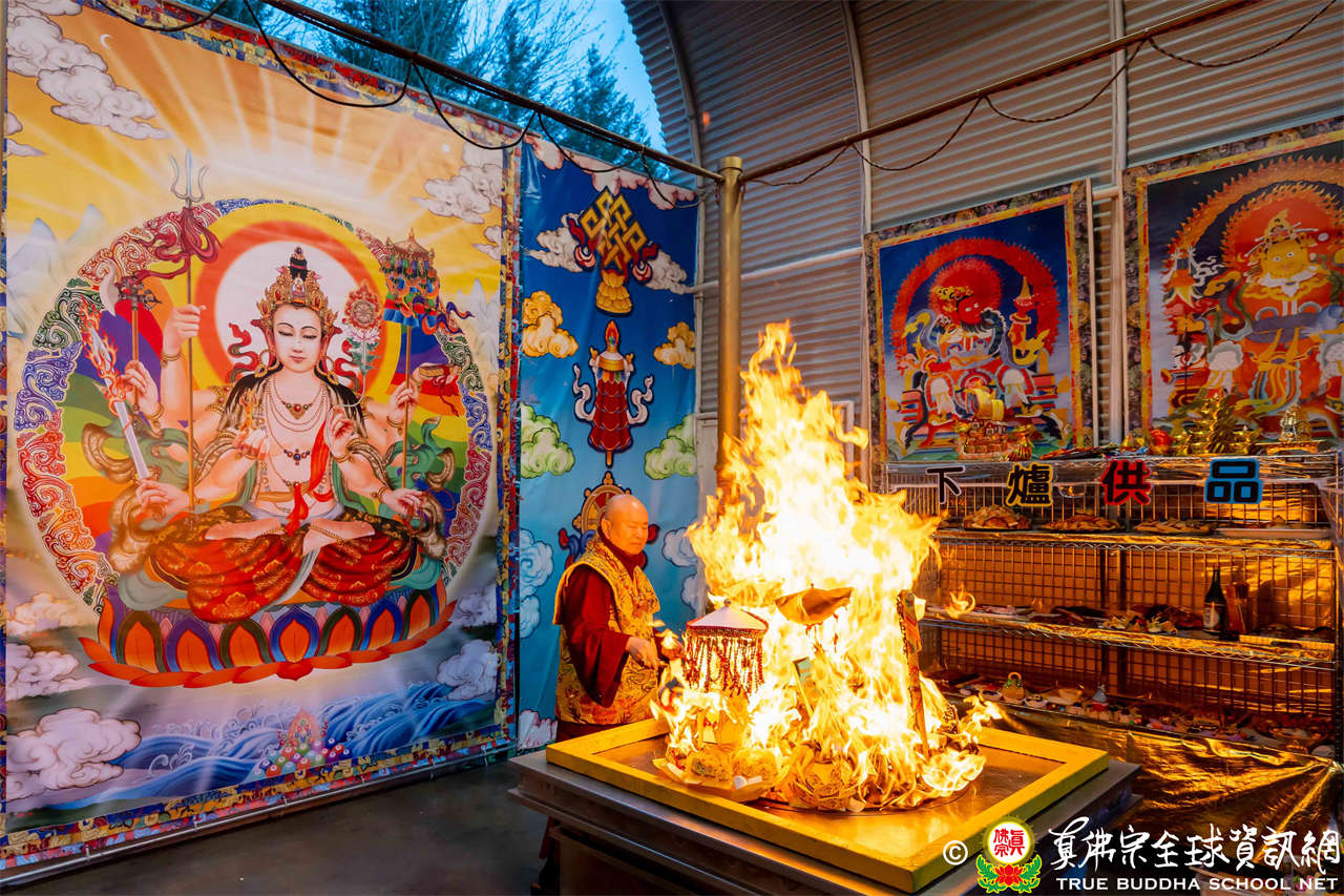 2025年12月7日,西雅圖彩虹雷藏寺恭請聖尊蓮生法王主壇大隨求菩薩。護摩圓滿後,法王向大眾預告,下個禮拜天,12月14日(週日)下午三點(3 PM),將舉行時輪金剛護摩法會。
