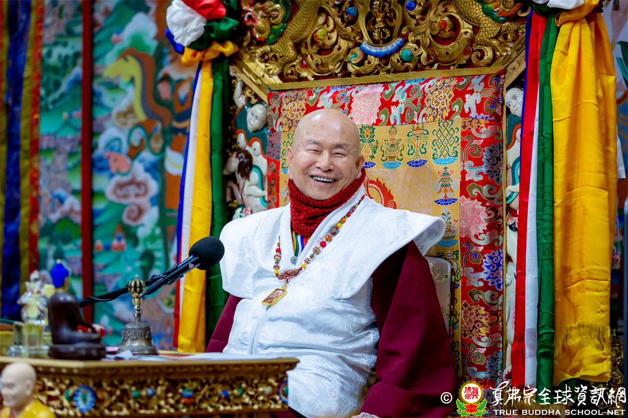 在講解深奧經典之餘,法王分享了一段動人的往事。法王憶及恩師吐登達爾吉上師臨終前三天的情景:當時師父臥病在床,需靠氧氣罩呼吸,聲音微弱。當法王與師母請求師父多留世間時,上師僅輕輕搖手示意「不再留了」,並在顫抖中伸手為兩人做最後的加持。