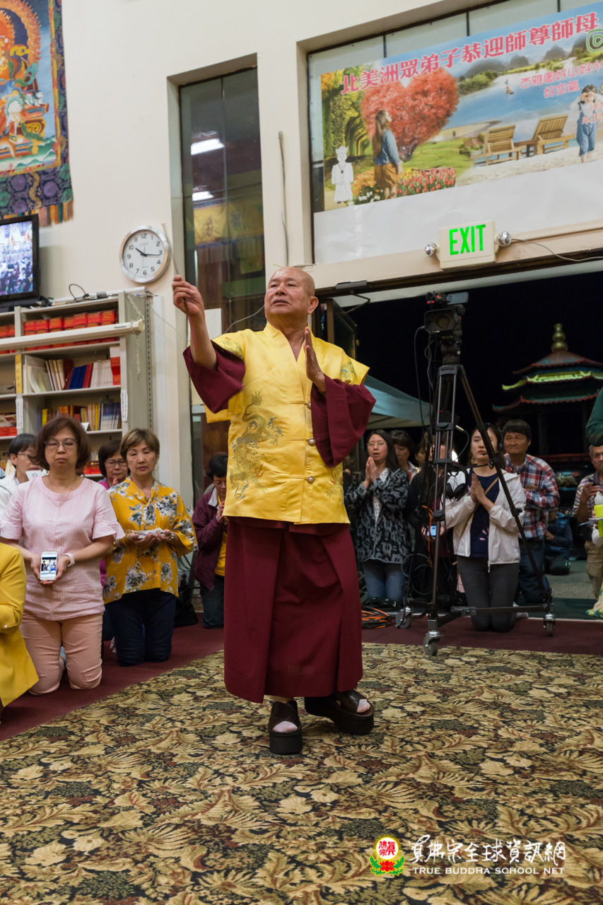 在精采的開示結束後,聖尊為多位信眾們賜授皈依灌頂,並加持大悲咒水、開光佛像。臨行前,聖尊依舊慈悲的為大眾摩頂加持。隨著莊嚴的送師隊伍,恭送聖尊回到了真佛密苑,弘法人員及弟子們,全體向根本上師跪拜頂禮佛足前,感謝聖尊的教導傳授。在溫柔的月光下,結束這法益充盈的夜晚。