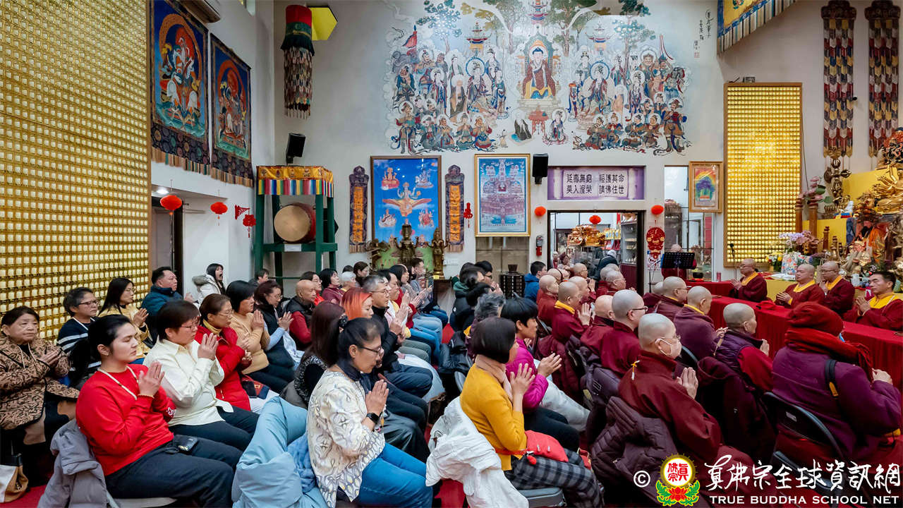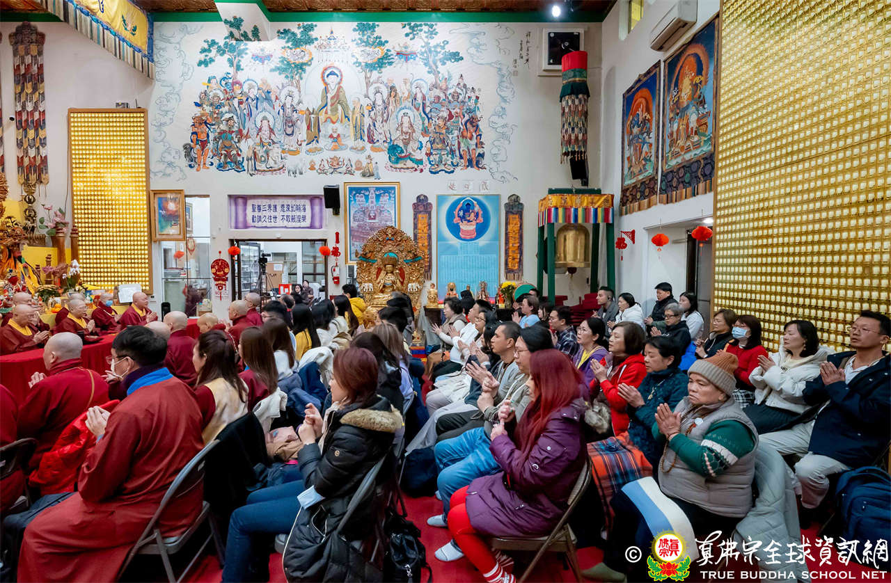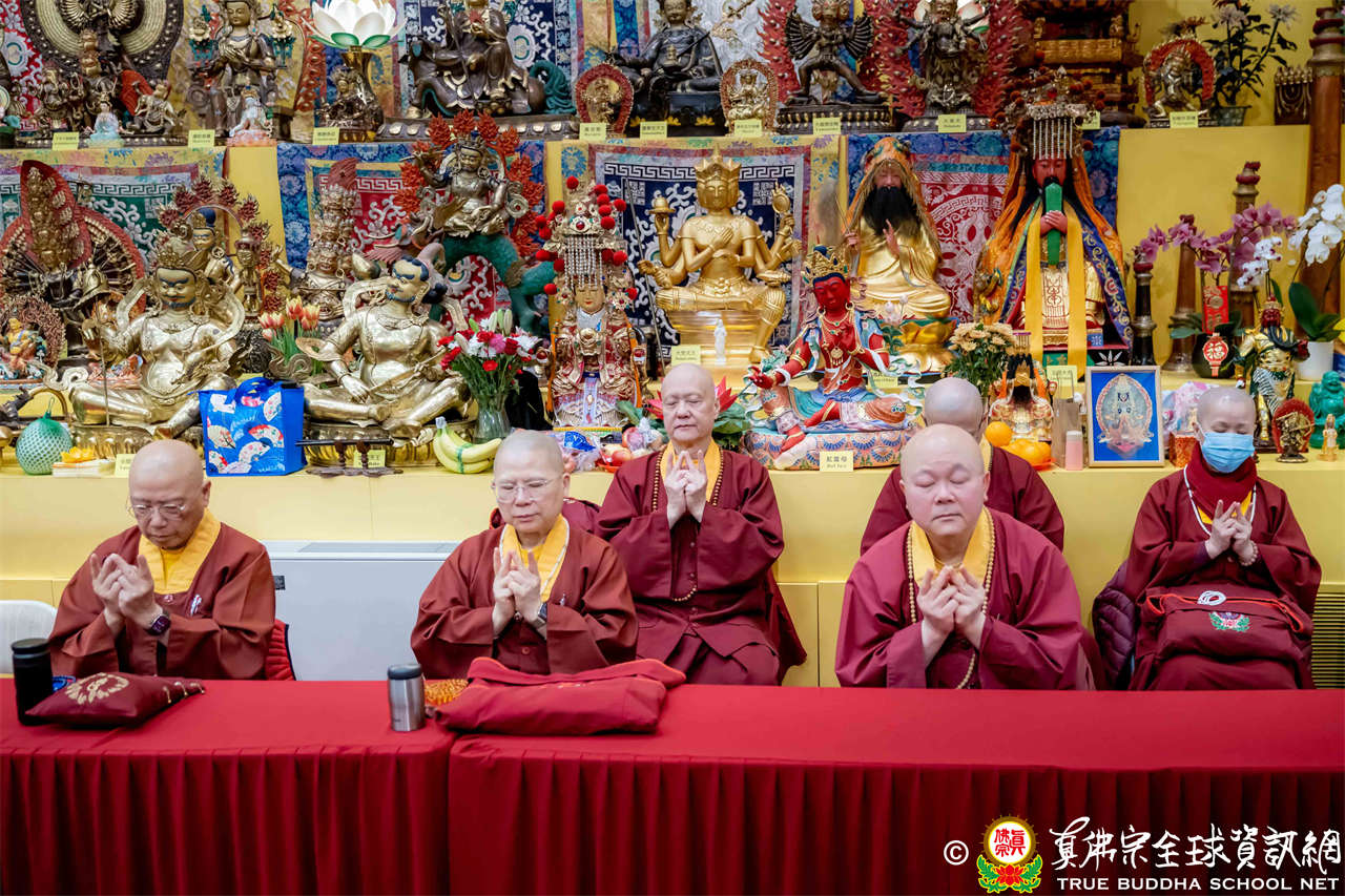 雖然天寒地凍,大眾仍虔敬的熱忱參與,跟隨著蓮吟上師做禮拜、獻供、誦經、持咒、入定、回向,人人全神貫注的修法,祈求瑤池金母大天尊、阿彌陀佛、諸佛菩薩護法金剛佛光注照,聖尊與師母都健健康康的早日和弟子們團聚在西雅圖雷藏寺。